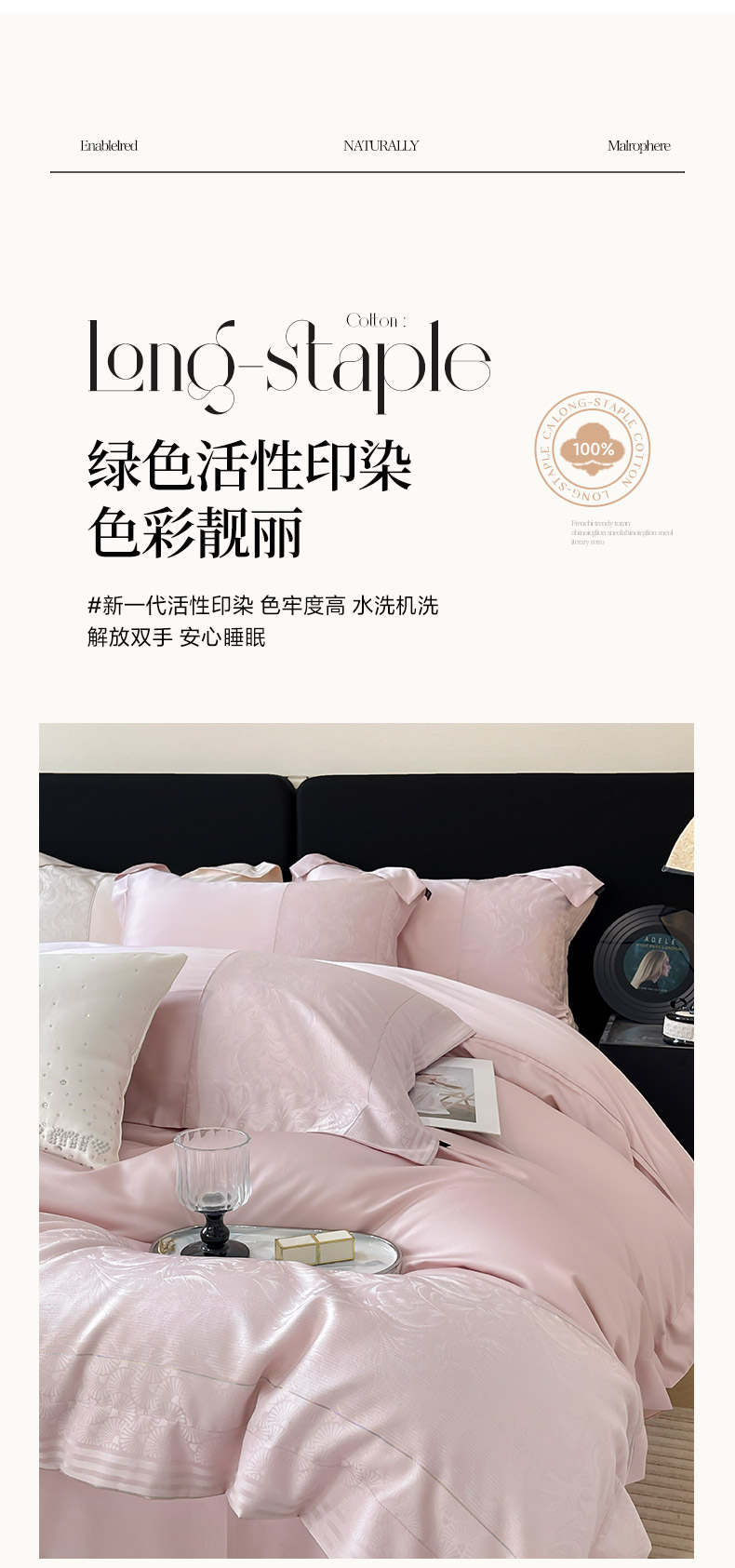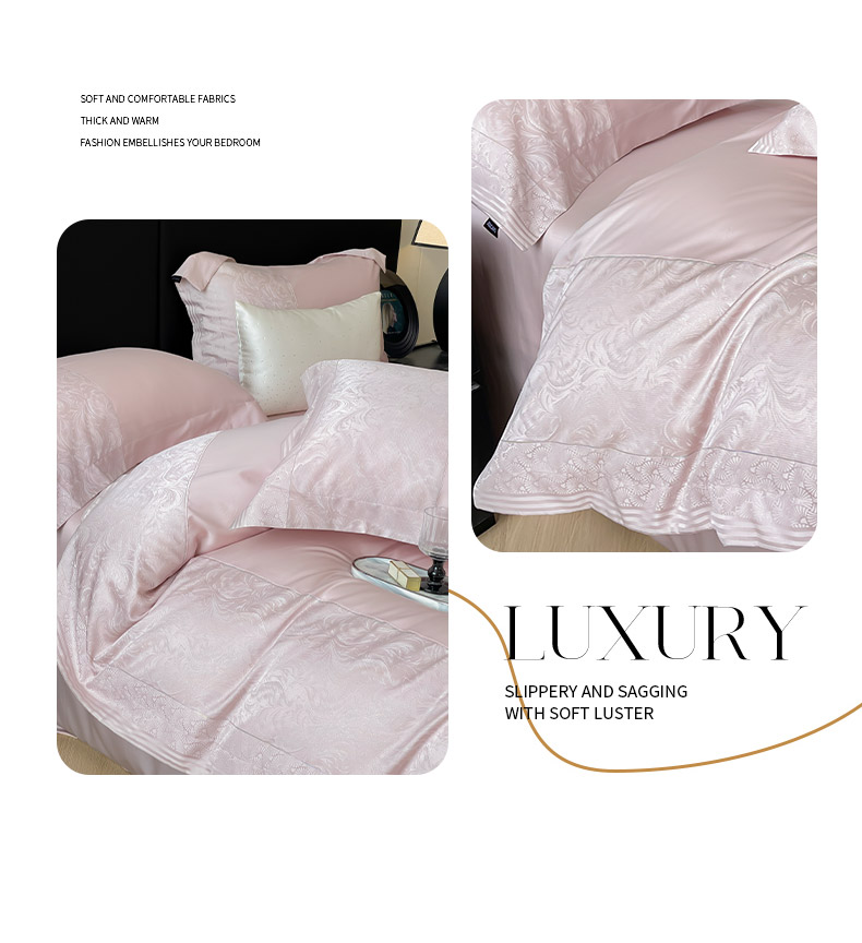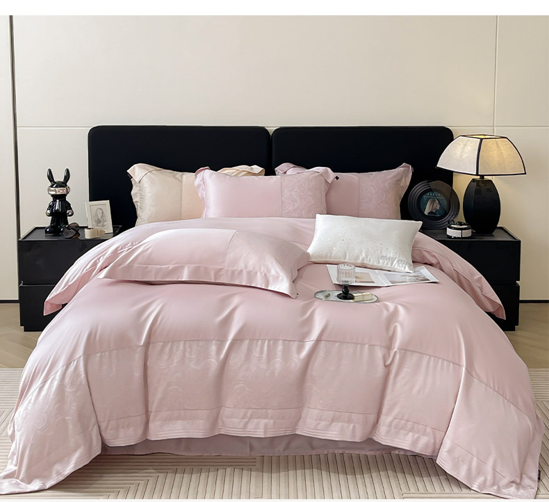 商品名称:2025新款高端A类贡缎提花长绒棉四件套纯棉全棉拼接被套纯色被套热款床上用品-南翎 南翎-芸粉