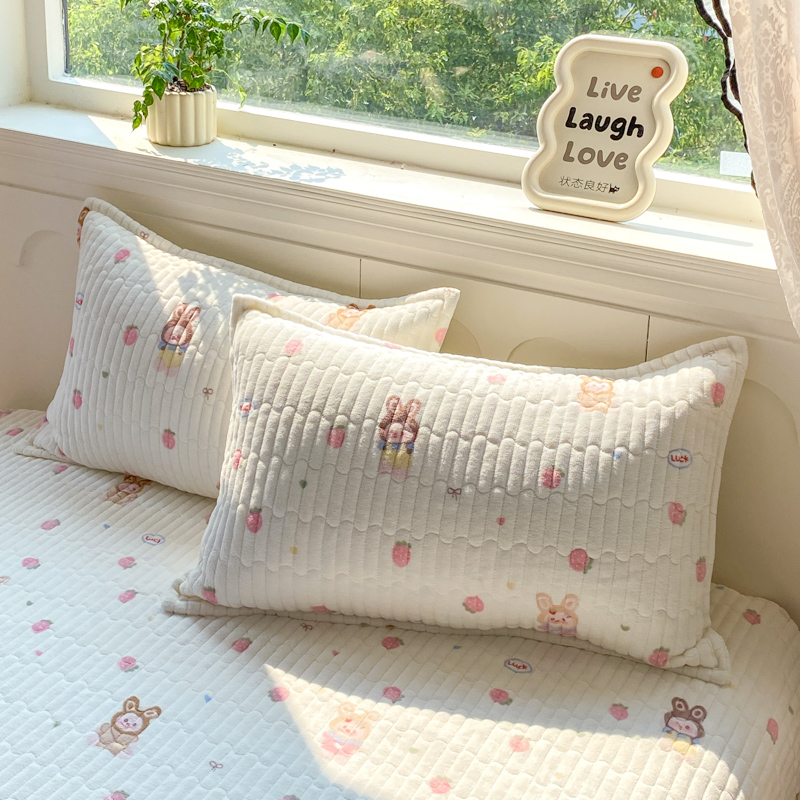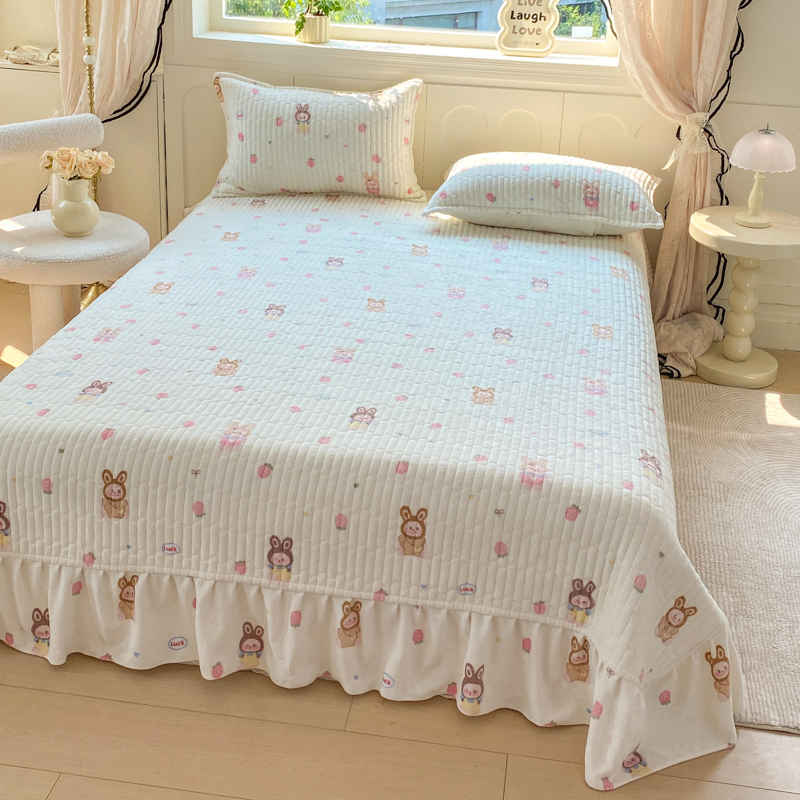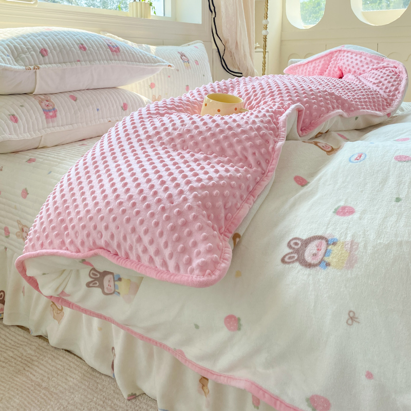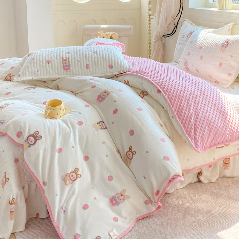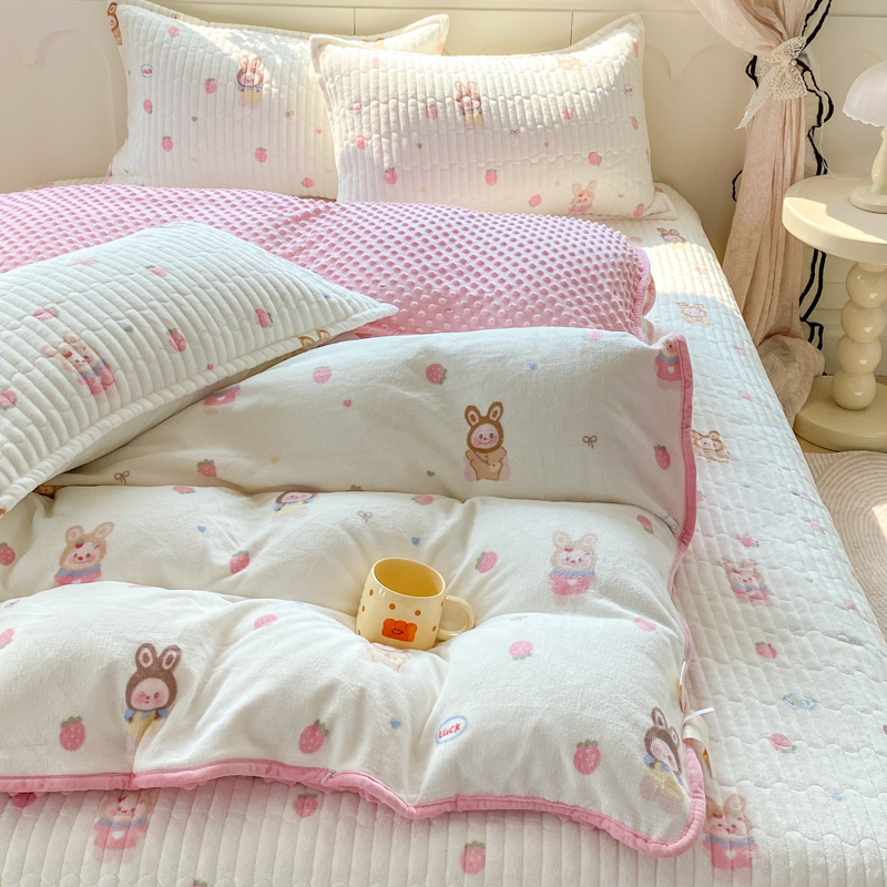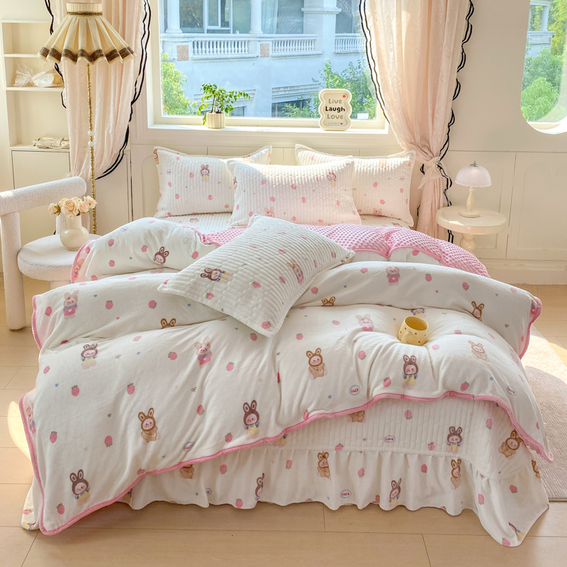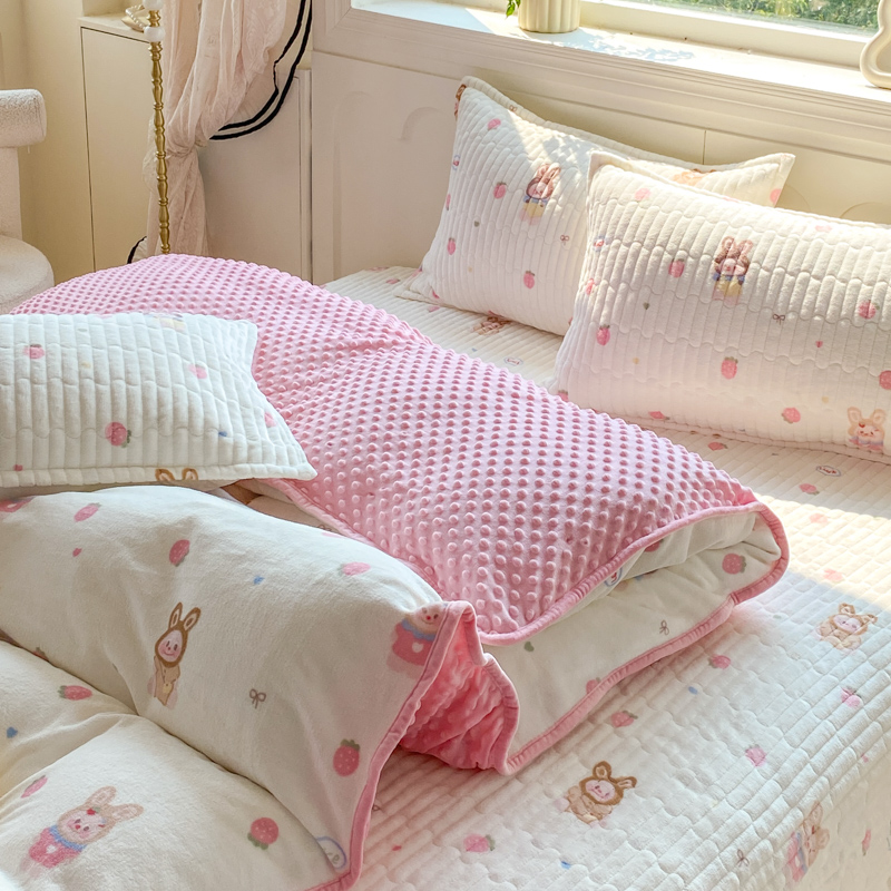 (总)尚美 2025新款毛巾绣牛奶绒床盖加棉加厚四件套,爆莓兔,背带熊猫,蛋糕猫,黑皮猫,恐龙,女孩,小粉象