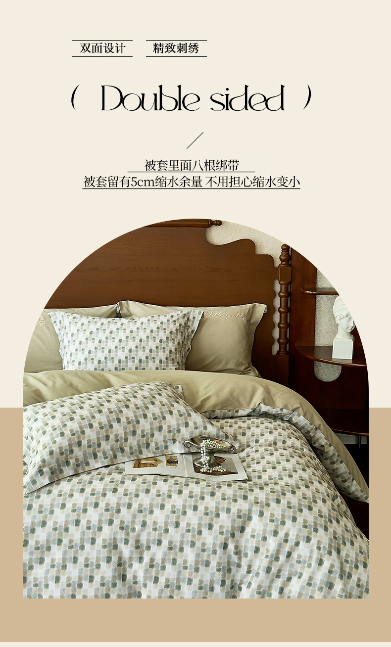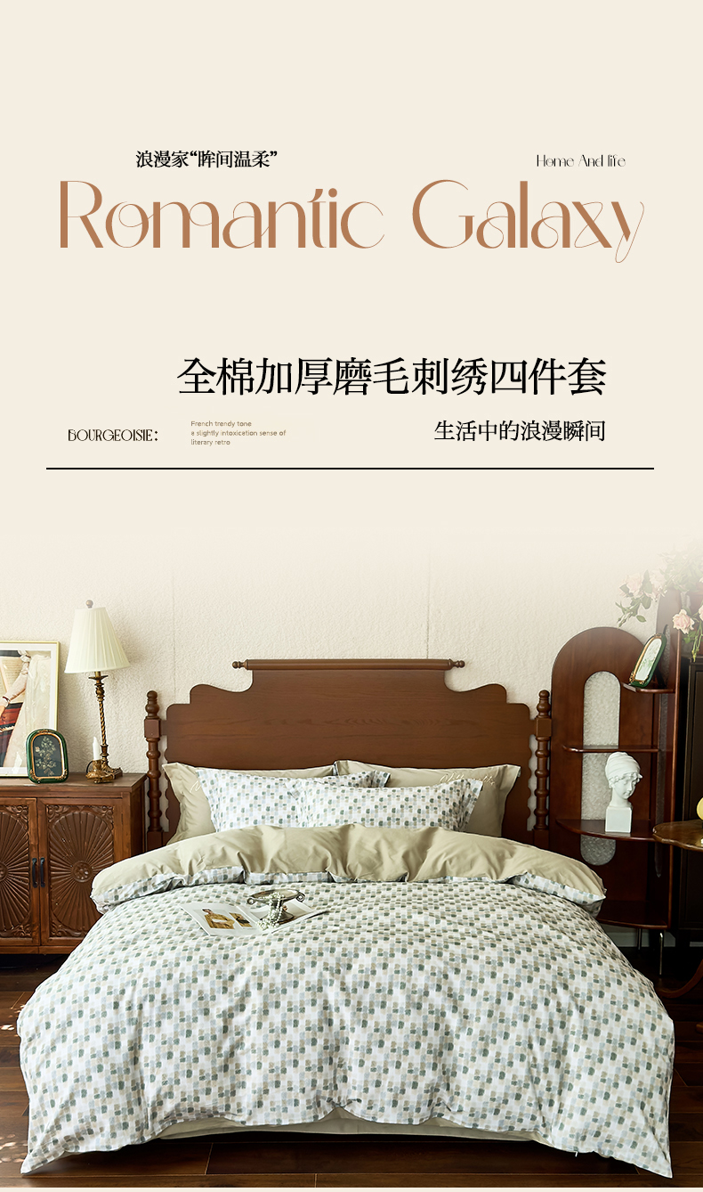 商品名称:由丽家纺 2025新款亲肤全棉纯棉磨毛印加绣四件套 随感-绿
