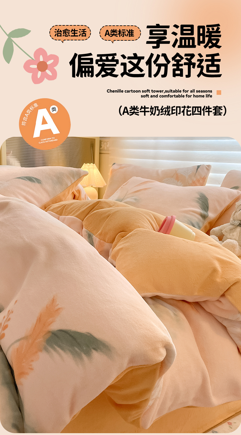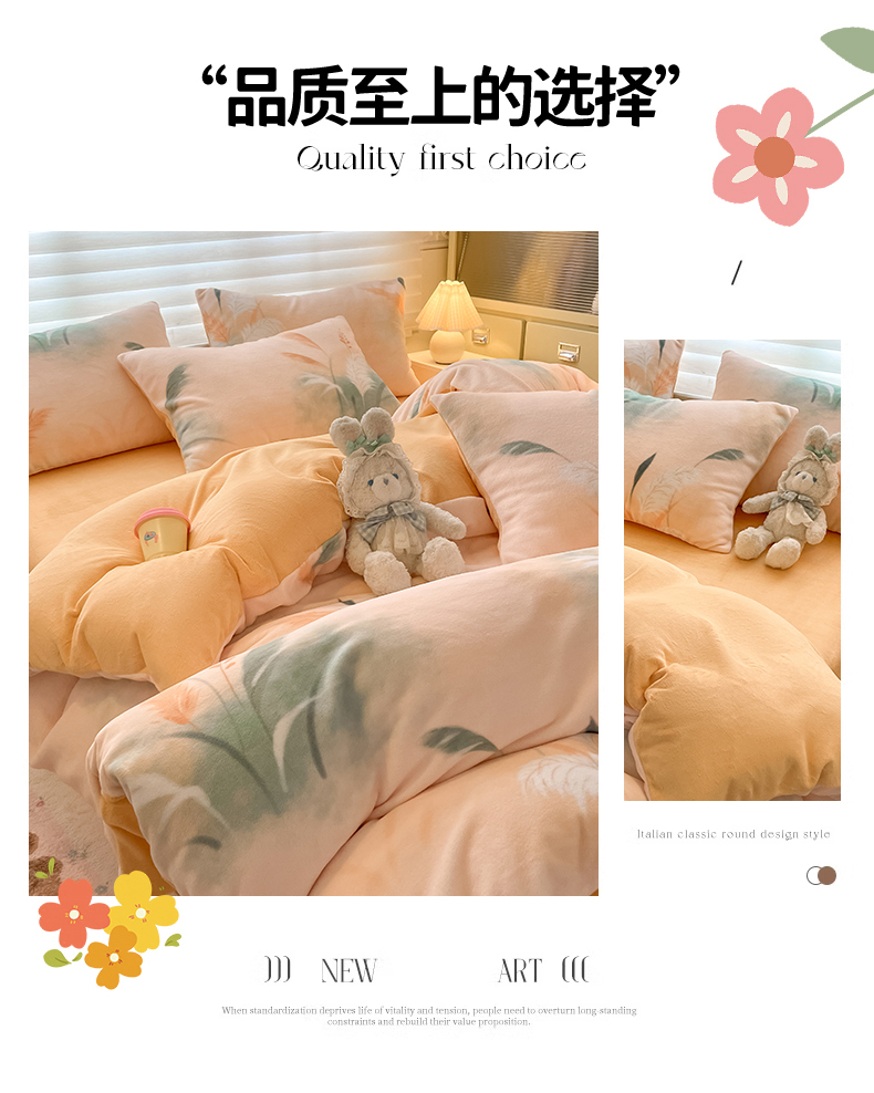 当前位置: 91家纺网 > 商品网购 > 床品套件 > 四件套 > 牛奶绒四件套 > 美澳家纺 2025新款190克加厚牛奶绒印花四件套 繁华