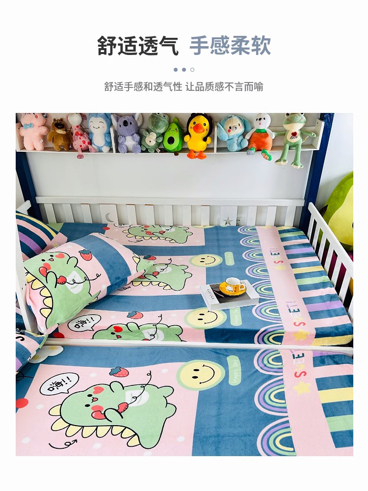 小虾米 2025新款加厚牛奶绒床笠单床笠床笠单件 恐龙宝宝
