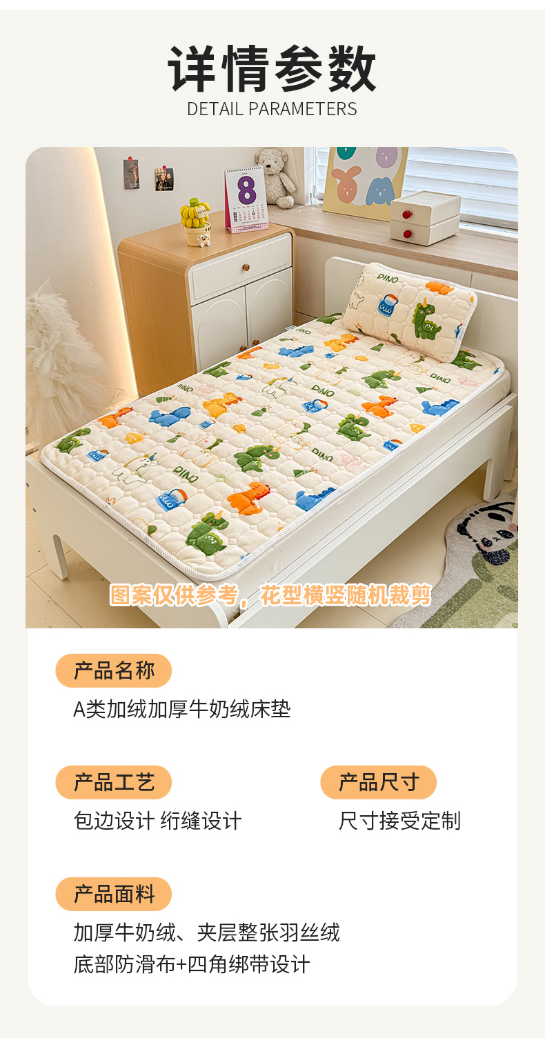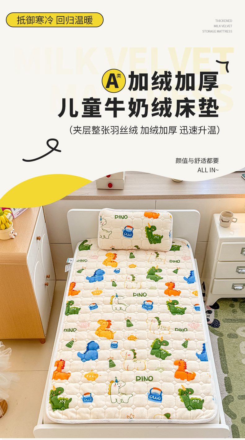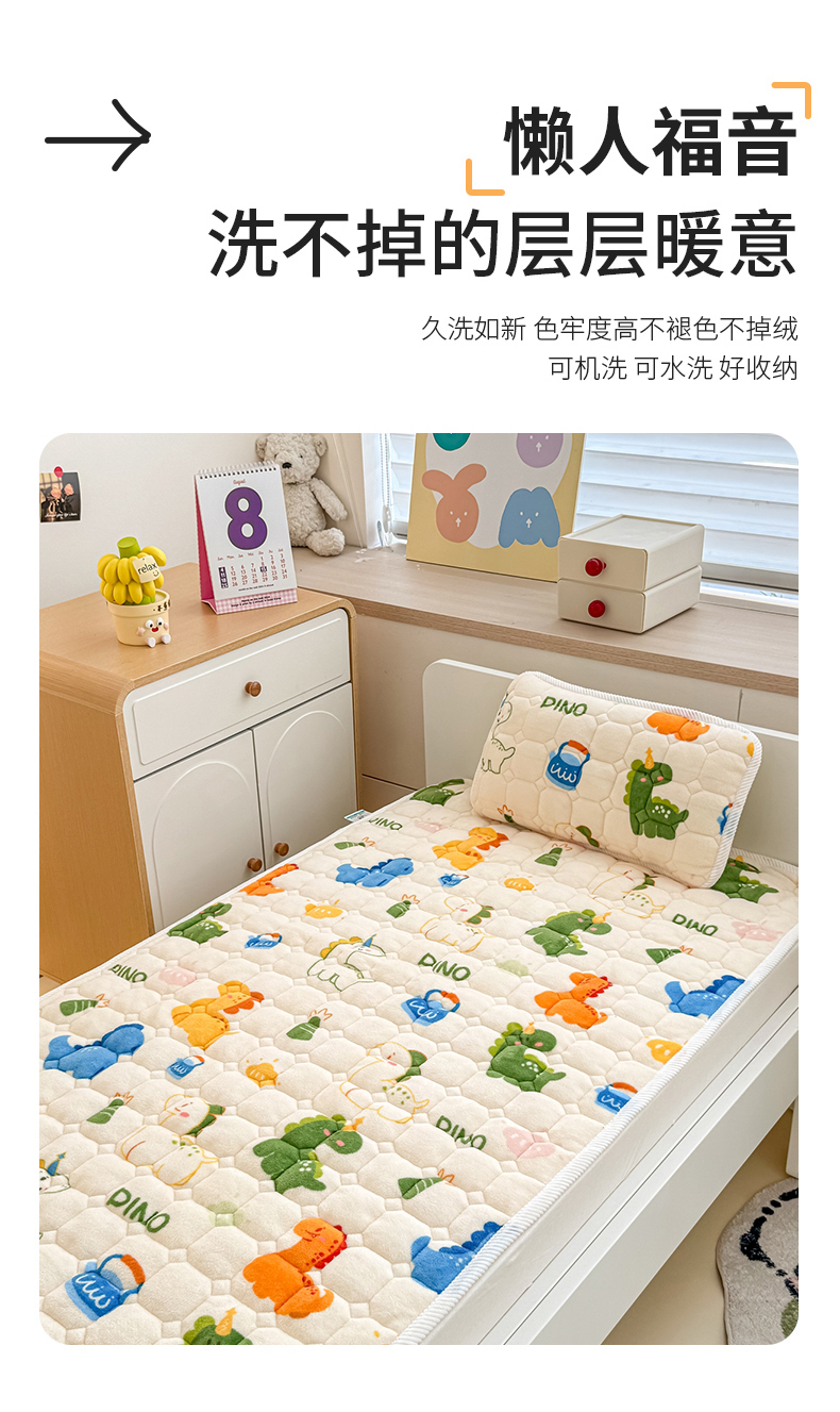 当前位置: 91家纺网 > 商品网购 > 床垫/床褥 > 普通床垫 > 禧缘家纺(原梦想家) 2025新款儿童牛奶绒夹棉床垫(可定制) 多彩恐龙