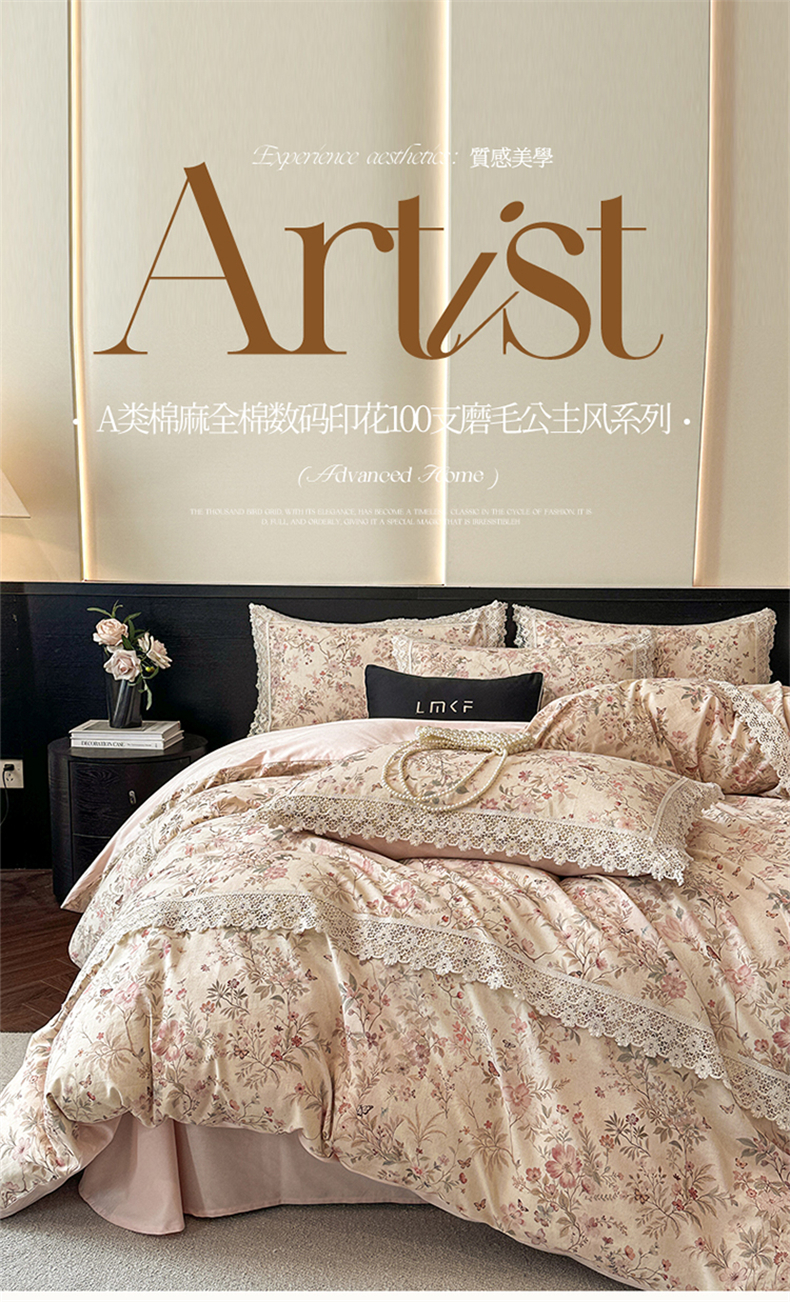 蓝米卡夫 2025秋冬-A类棉麻全棉数码印花50S*50S双股磨毛公主风系列(礼盒包装)【如需买家秀联系15996631948】 静雅花韵