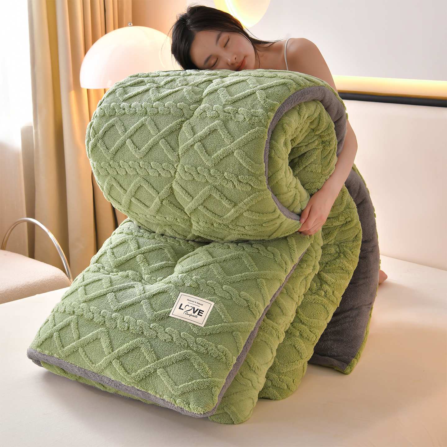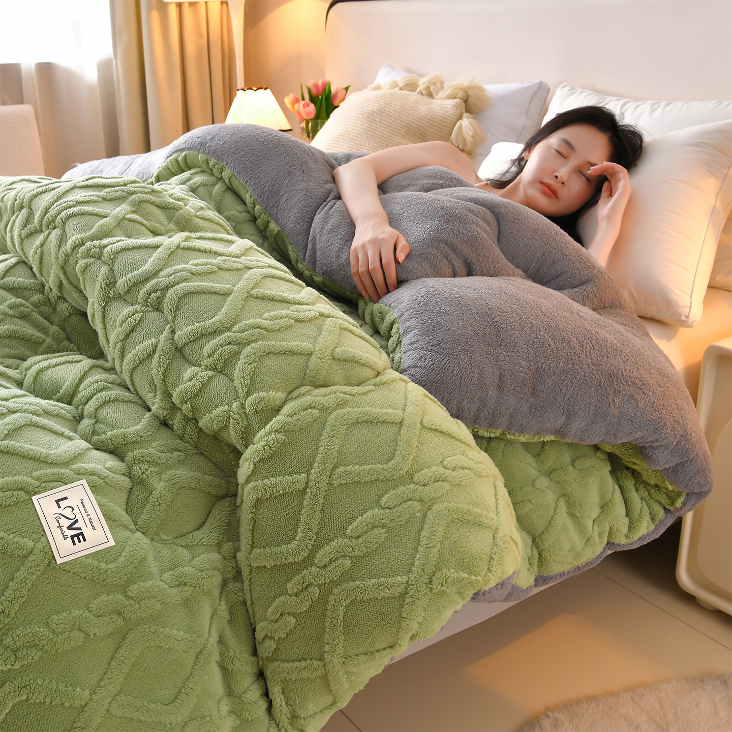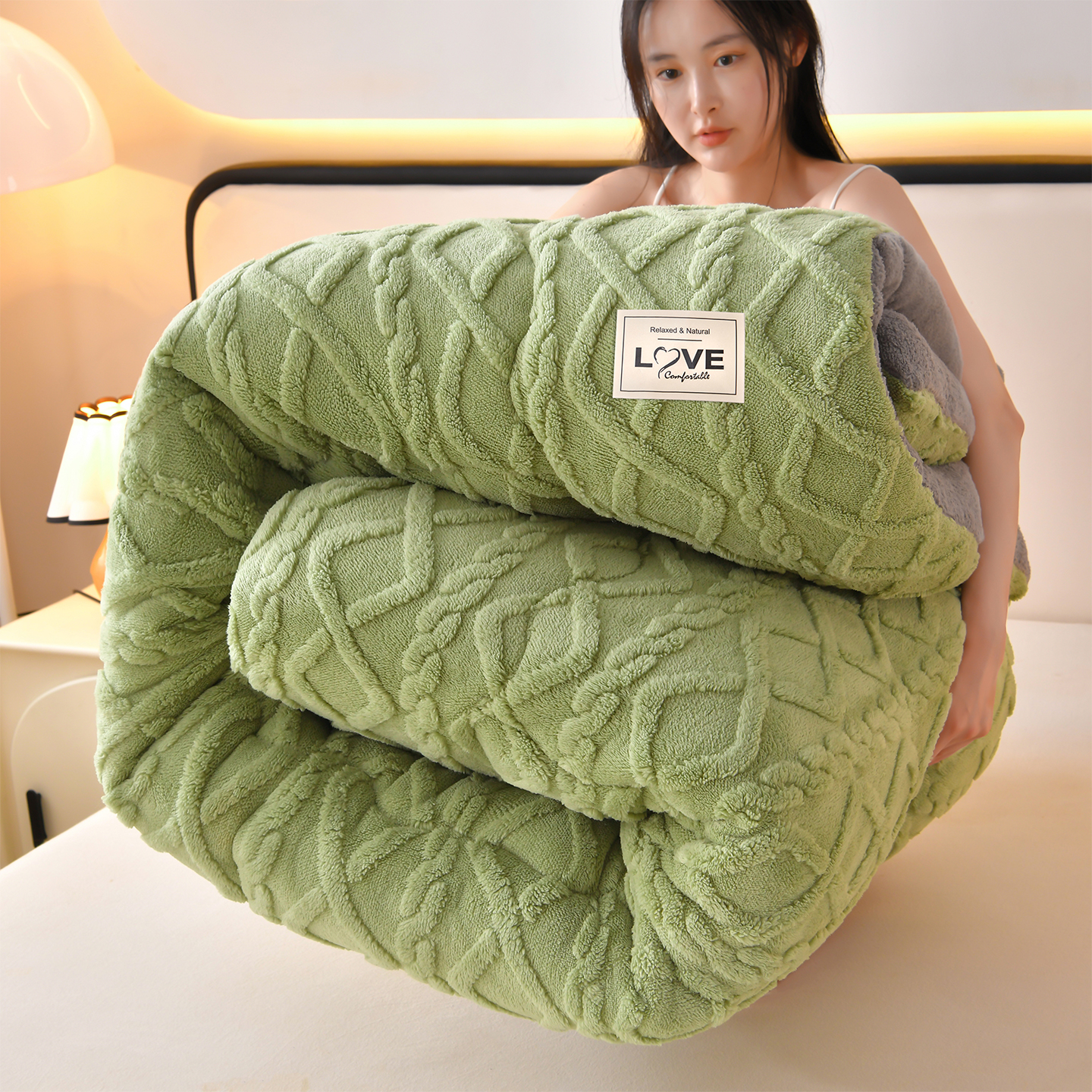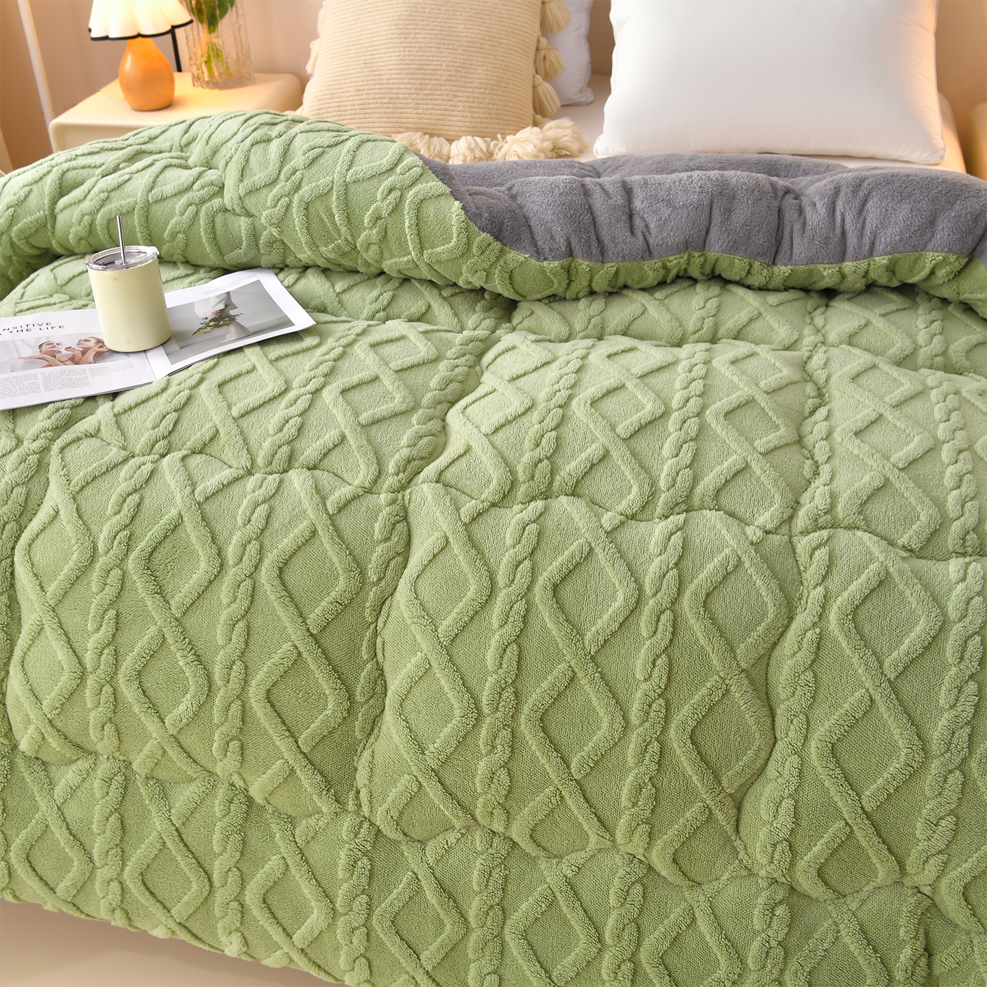 宇豪家纺 2025新款塔芙绒被子羊羔绒冬被 绿色