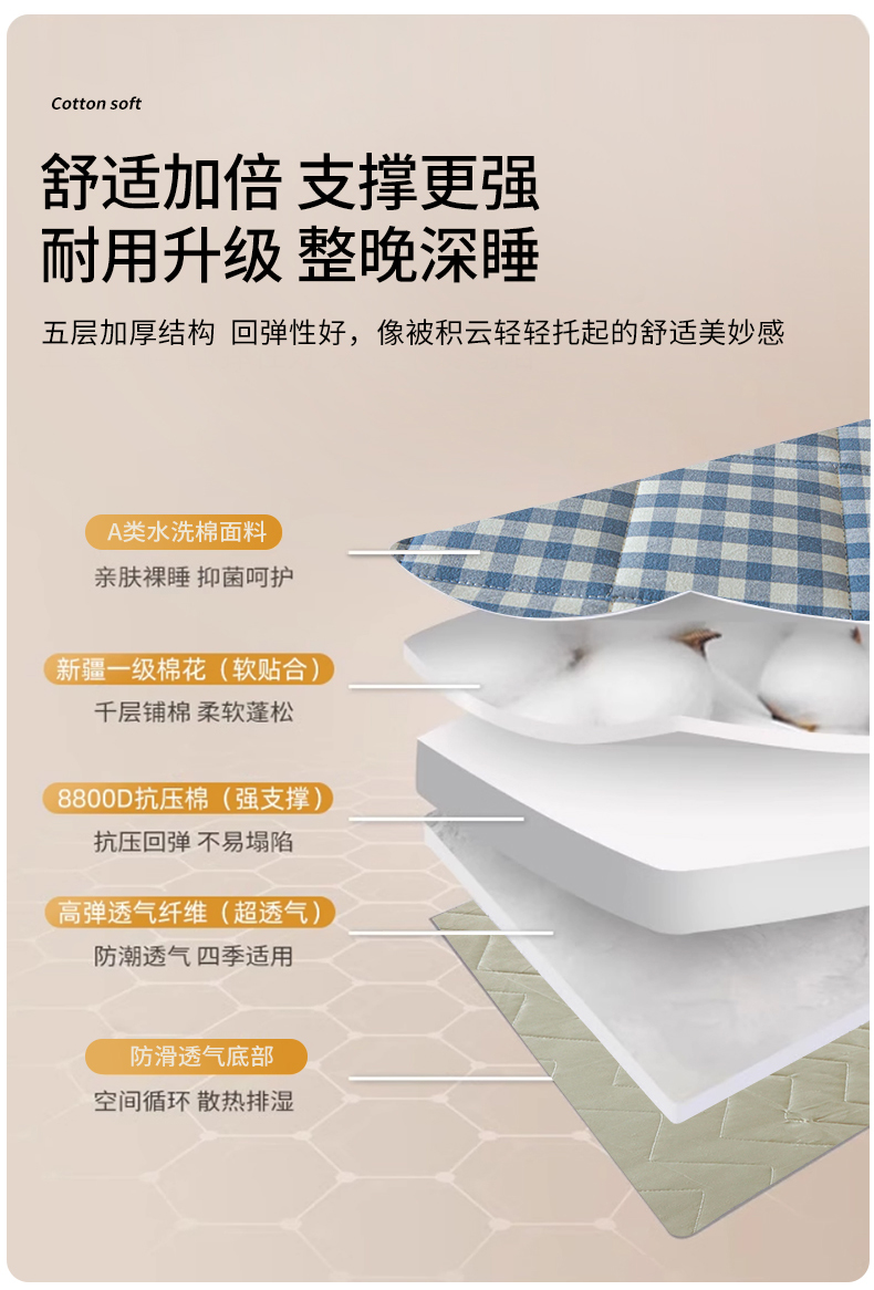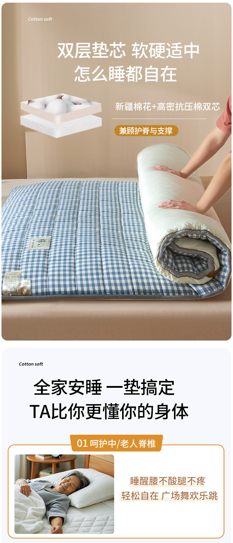 (总)鑫钰 2025新款学生开学季宿舍专用新疆棉花床垫薄款,棉格-蓝小格,棉格-宾利蓝,棉格-简希蓝,棉格-经典白,棉格-蓝大格,棉格-绅士灰,棉格-驼小格