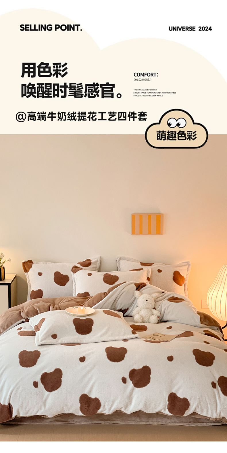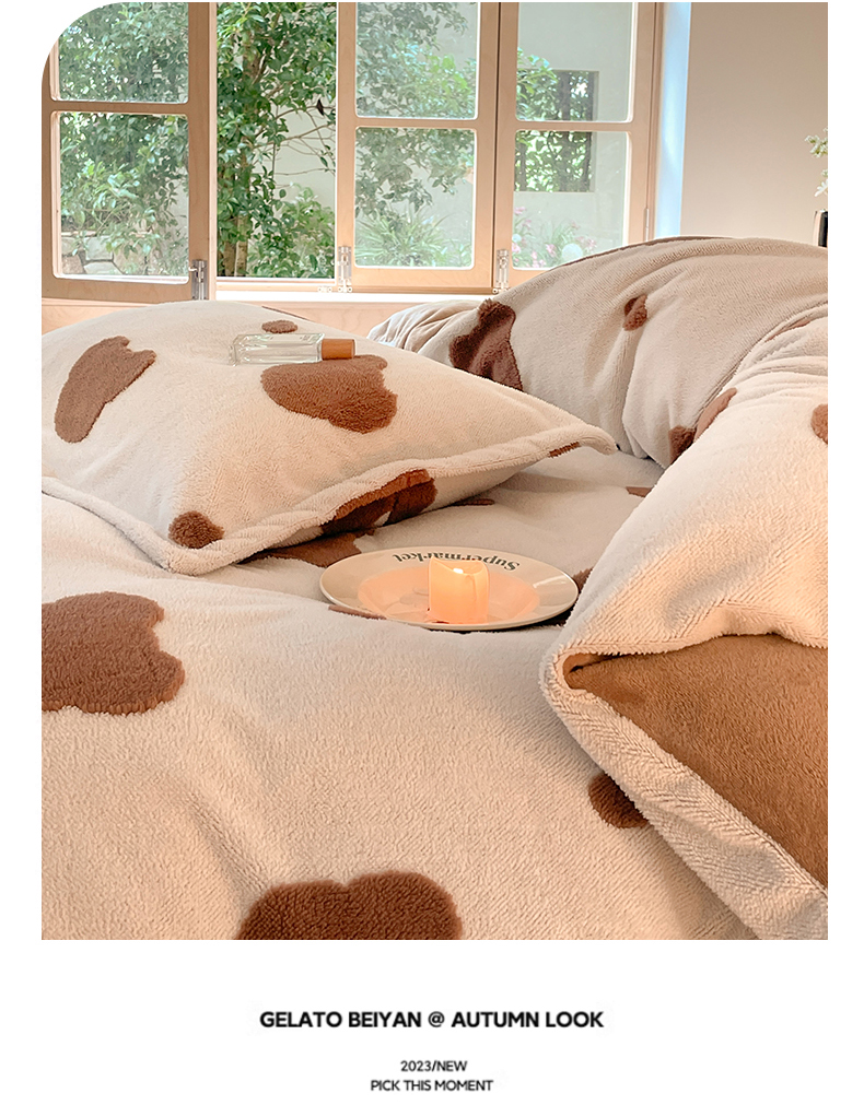当前位置: 91家纺网 > 商品网购 > 床品套件 > 四件套 > 牛奶绒四件套 > 川悦生活 2025新款A类300克高克重提花牛奶绒四件套 奶咖熊仔