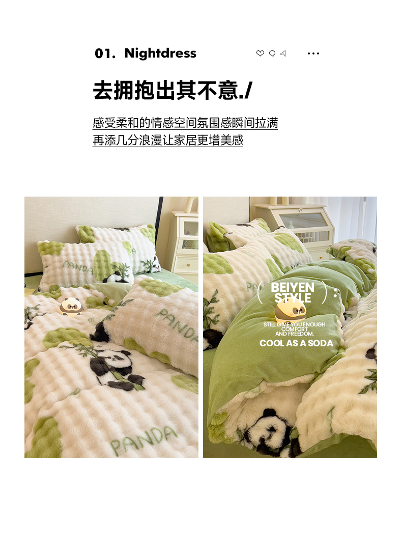 (总)摩妮卡 2025新款加厚大泡泡兔毛牛奶绒四件套,暖白+暗苔绿,暗苔绿,伽罗咖,槿紫,暖白+伽罗咖,韶粉