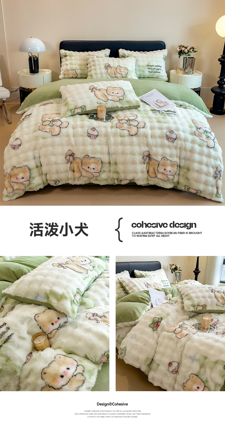 (总)摩妮卡 2025新款提花豆豆绒卡通印花牛奶绒四件套,花域悠然,缤纷兔,草莓兔,多米熊,芬然,乖乖虎,黑糖奶牛,花间兔,恋心,铃兰花语,马利蓝,蔓茵绿,萌趣狗,萌兔花园,梦幻小兔,梦里繁花,奶白咖,奶白绿,柔伊,甜莓季节,兔兔物语,兔小宝,喜多熊,香榭粉,芽蜜,颜淡,耀目灰,组合图