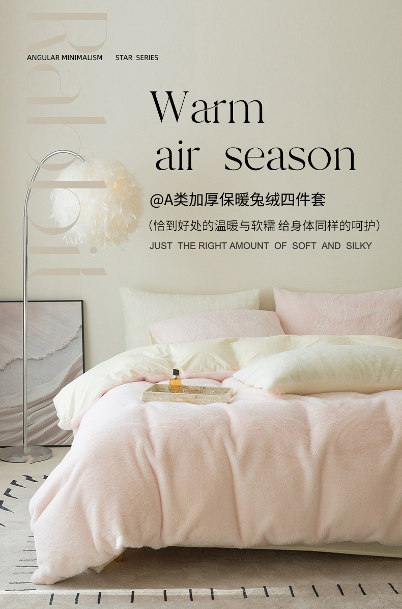 当前位置: 91家纺网 > 商品网购 > 床品套件 > 四件套 > 其它四件套 > ONE TWO ONE 121 2025新款A类加厚兔毛绒纯色四件套-安娜 安娜-粉昔