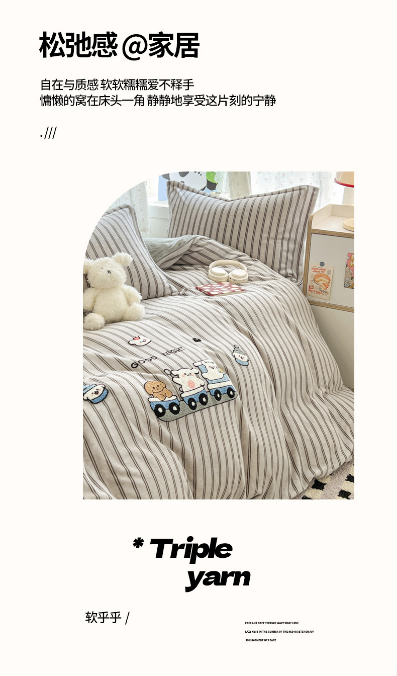 (总)倾慕家纺 2026新款全棉卡通毛巾绣系列单被套,彩虹马,格子小狗,欢乐企鹅,森林小熊,兔兔熊,小树恐龙,小兔女孩