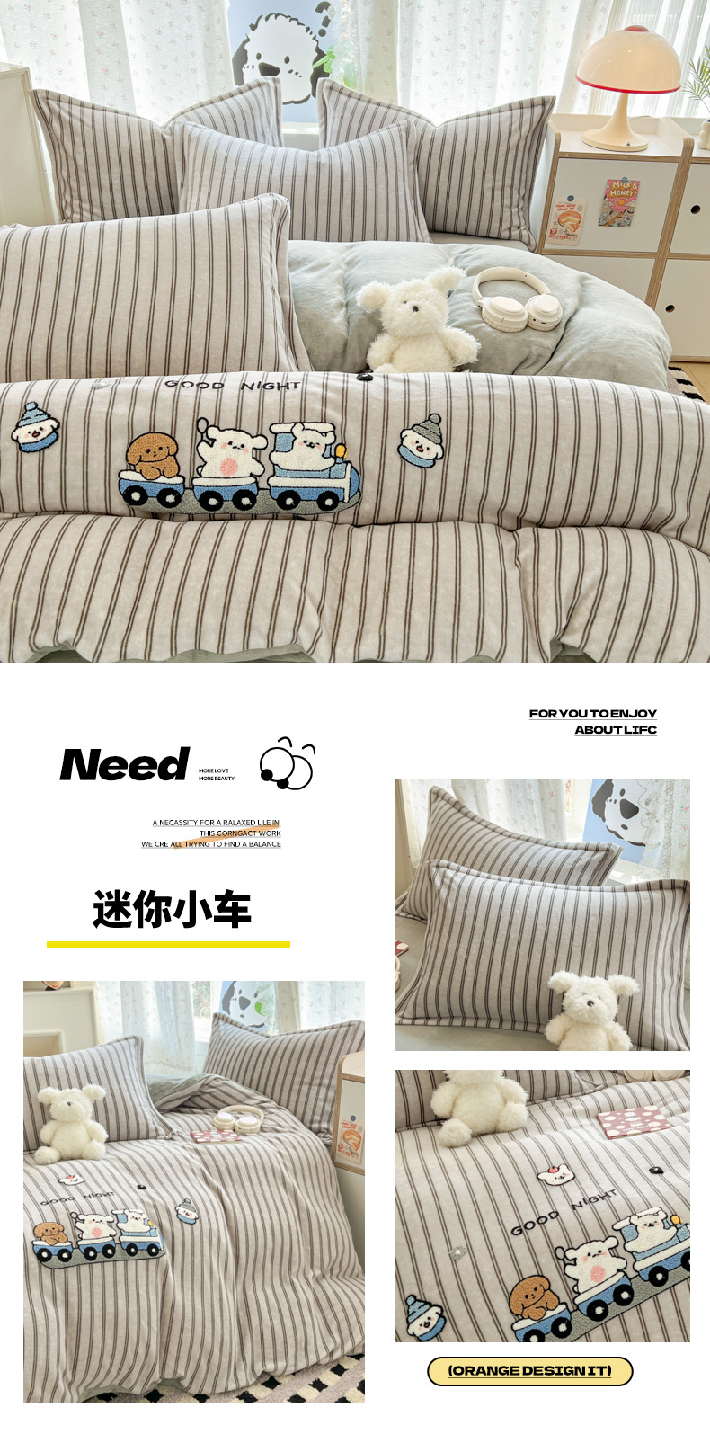 商品名称:倾慕家纺 2026新款卡通毛巾绣加厚保暖牛奶绒单被套 迷你小车