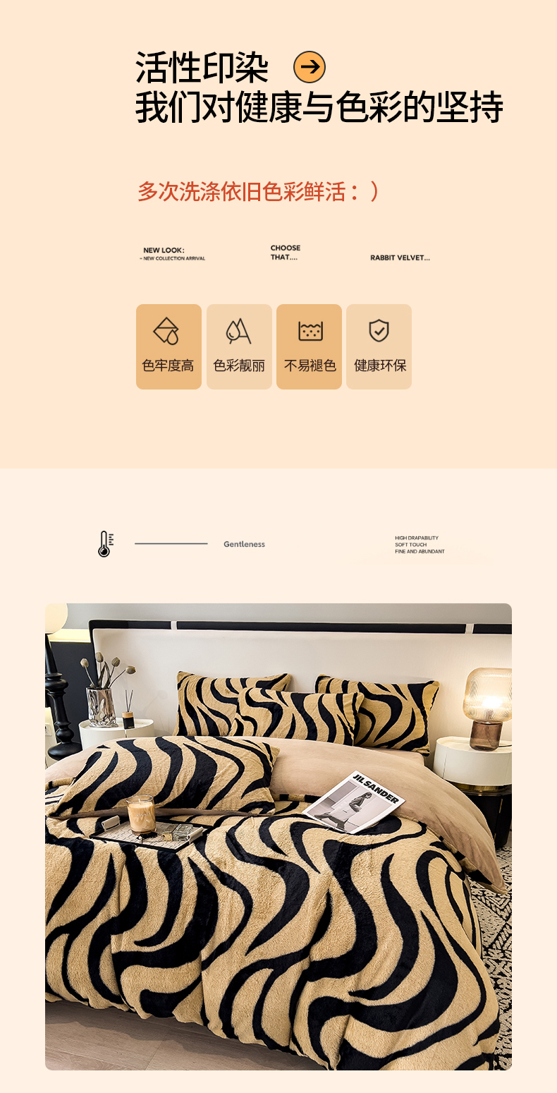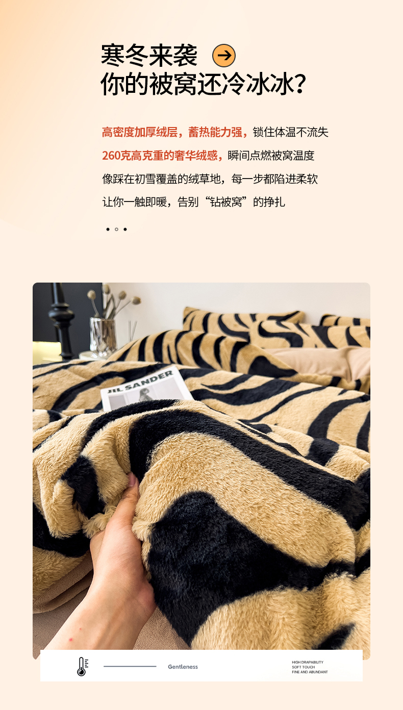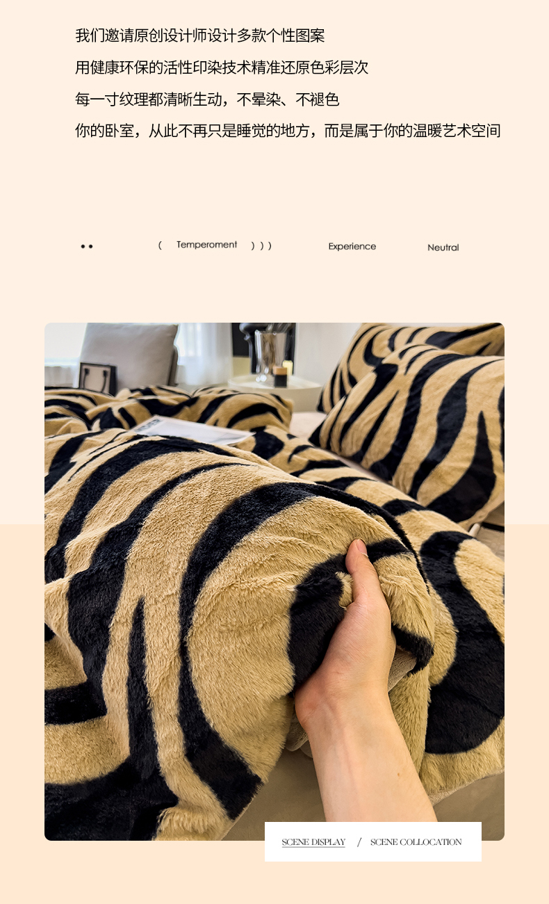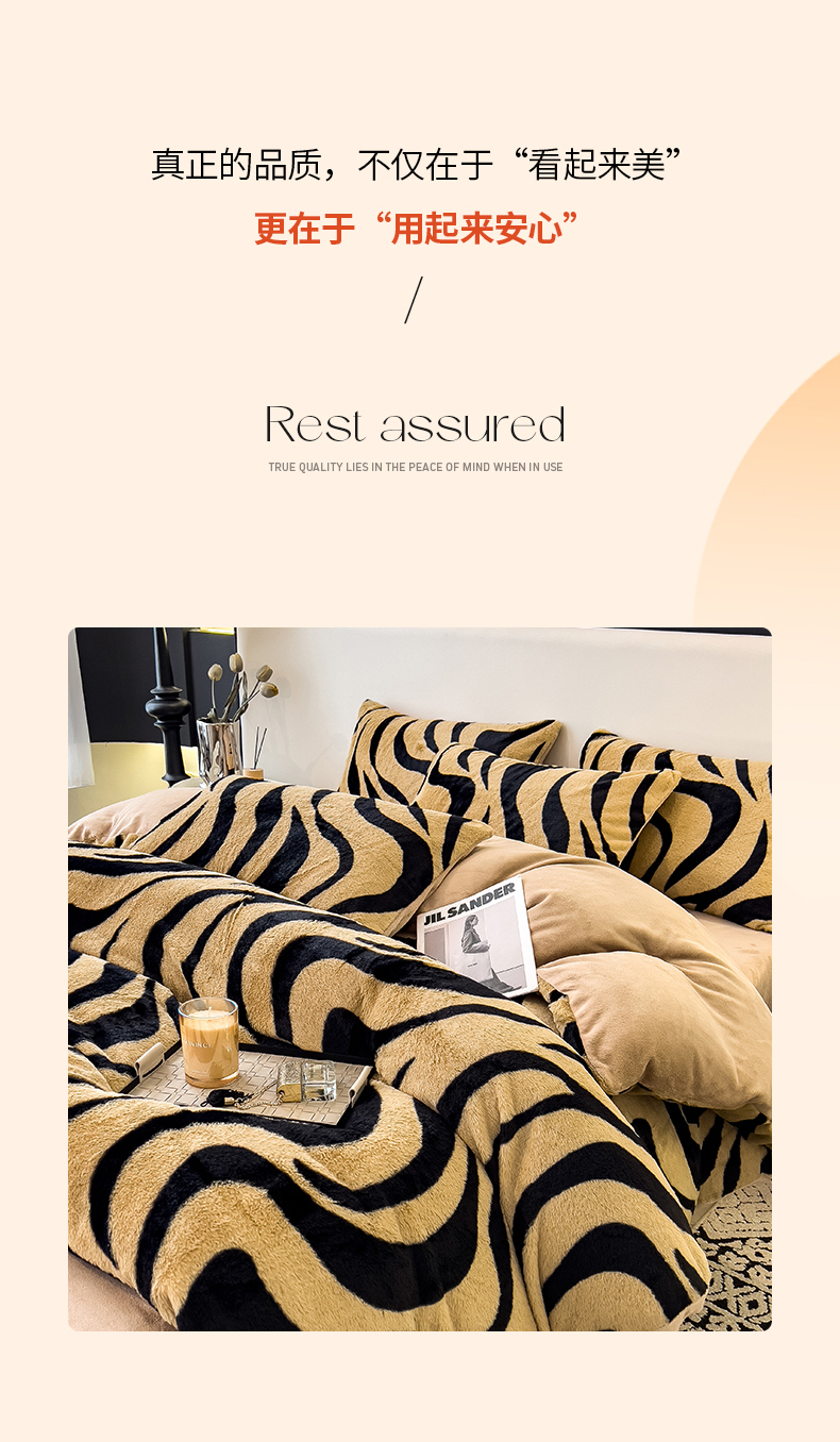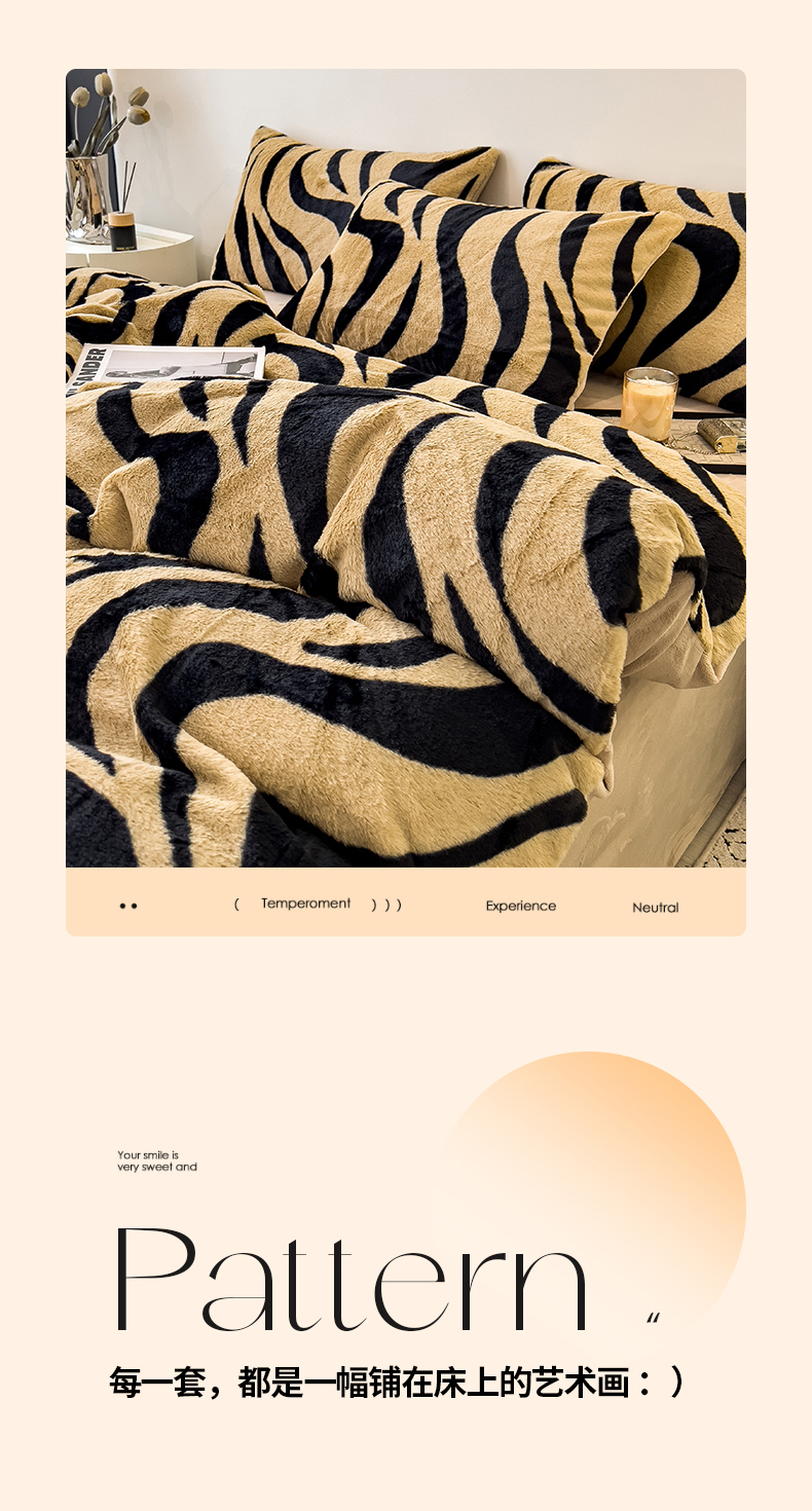 • 91家纺网 家纺一手货源 找家纺 倾慕家纺 2026新款高克重兔毛绒保暖单被套 斑马纹卡其