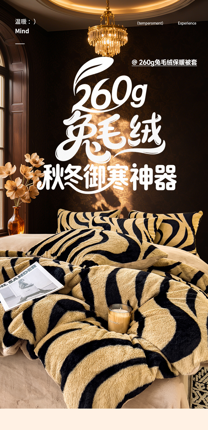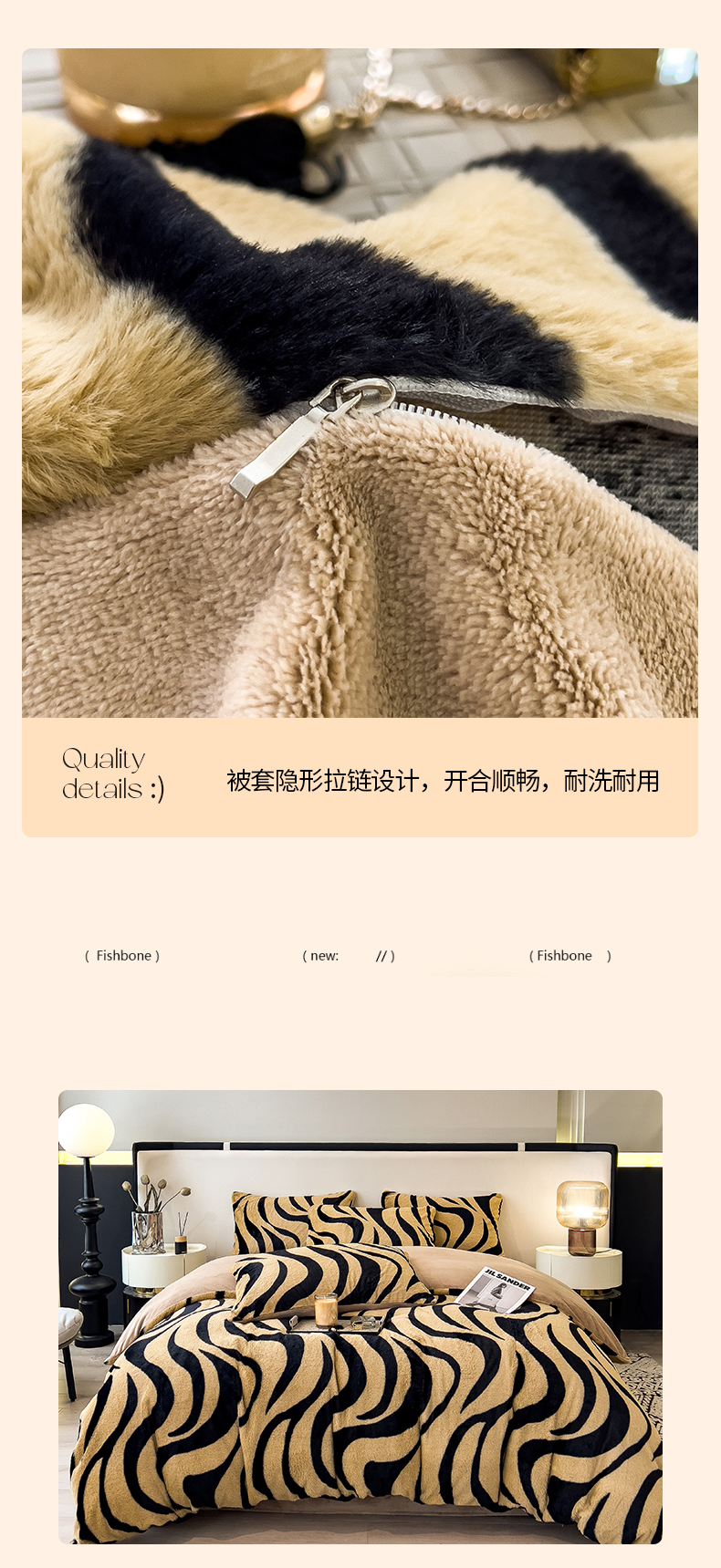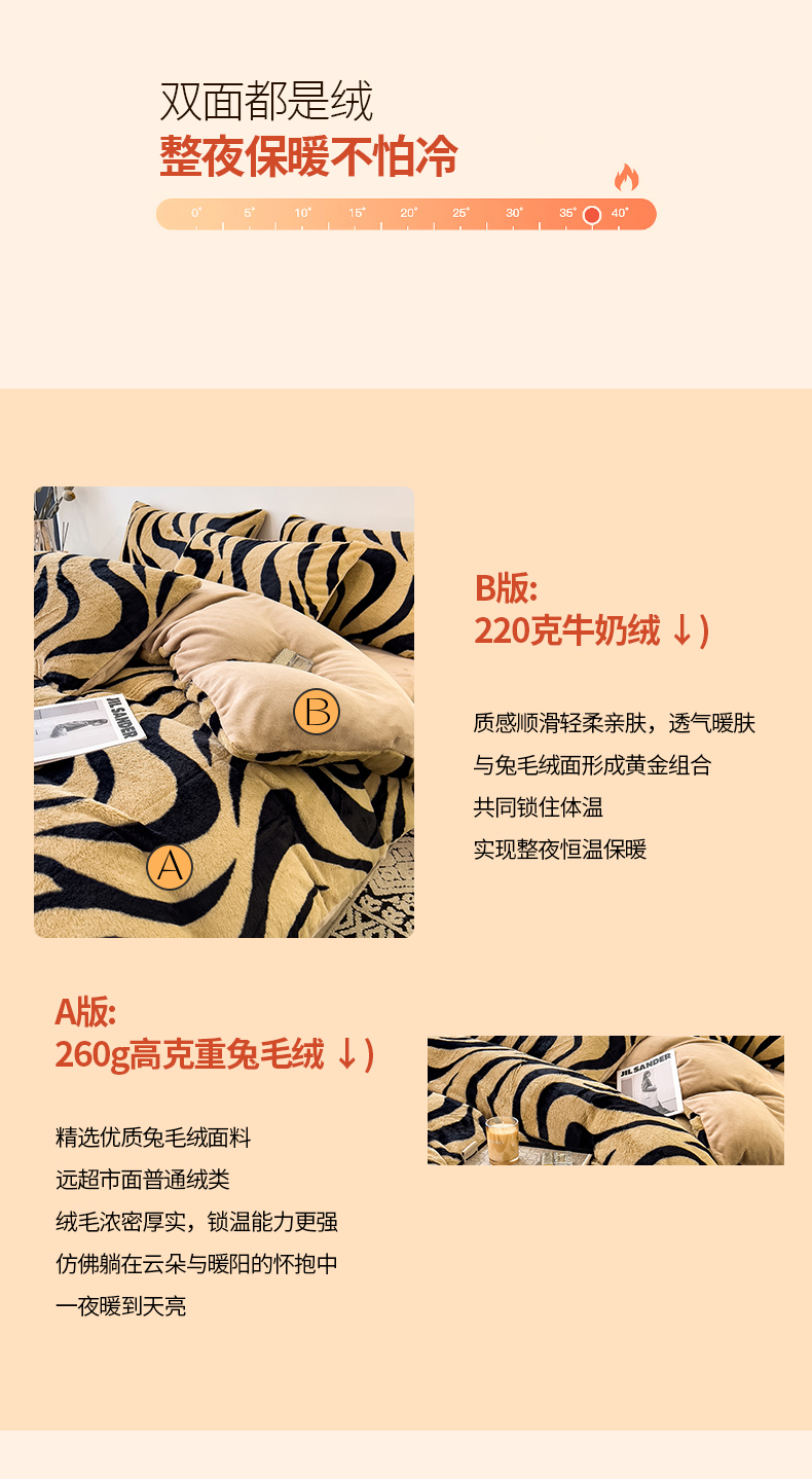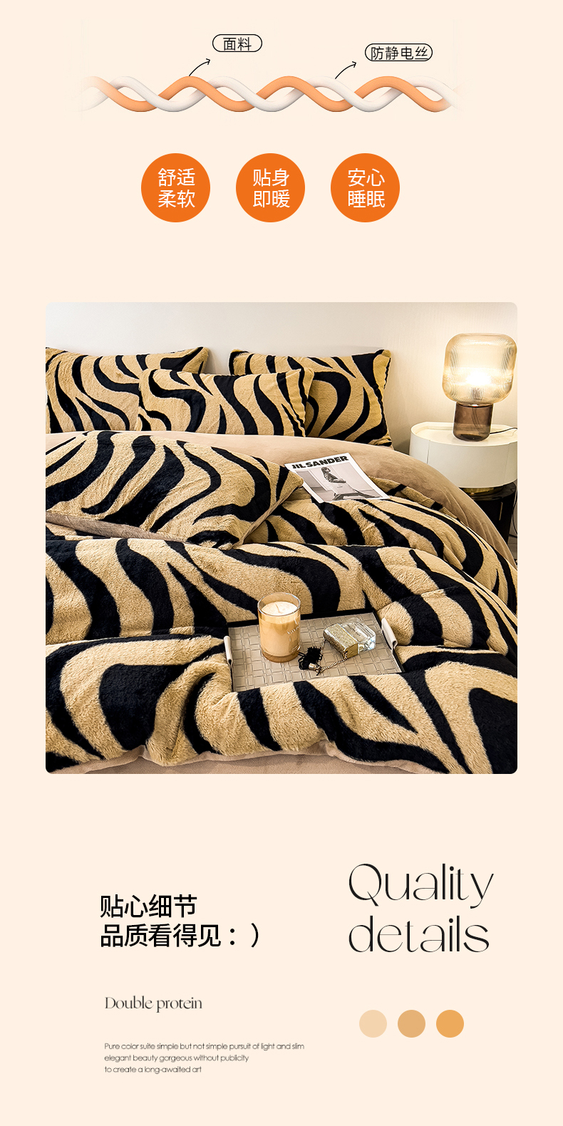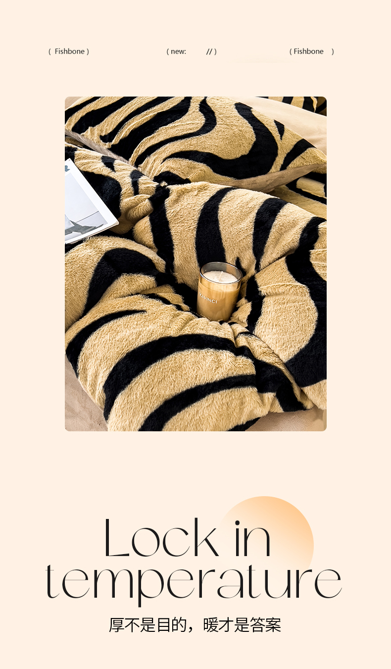 • 91家纺网 家纺一手货源 找家纺 倾慕家纺 2026新款高克重兔毛绒保暖单被套 斑马纹卡其