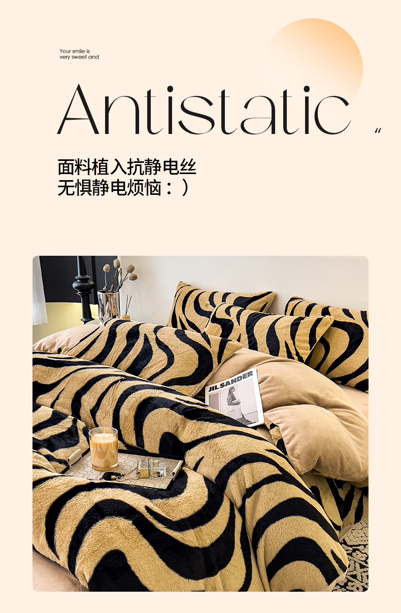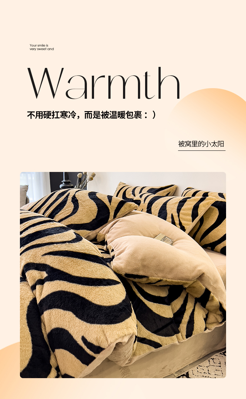 当前位置: 91家纺网 > 商品网购 > 床上用品 > 被套 > 倾慕家纺 2026新款高克重兔毛绒保暖单被套 斑马纹卡其