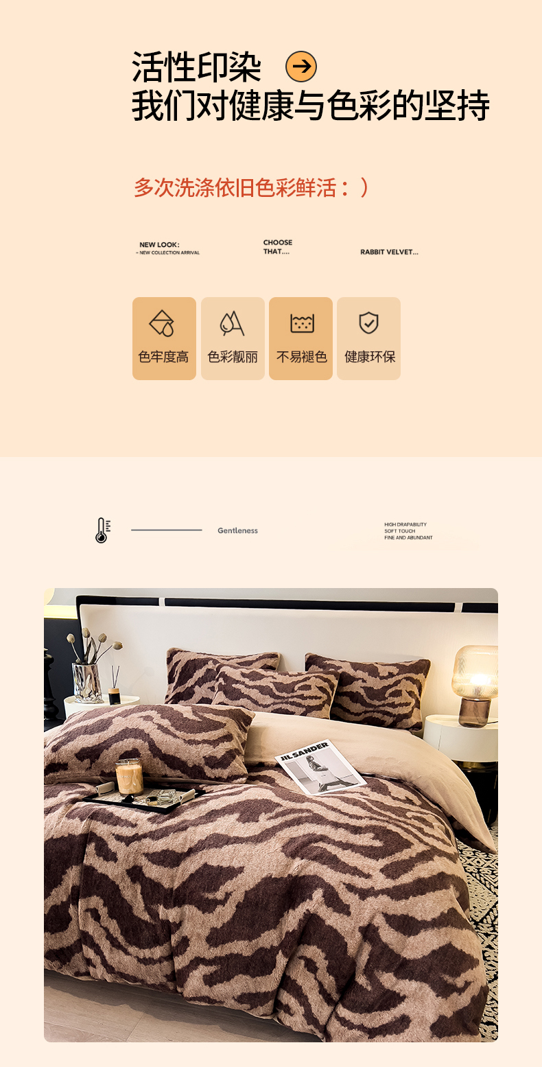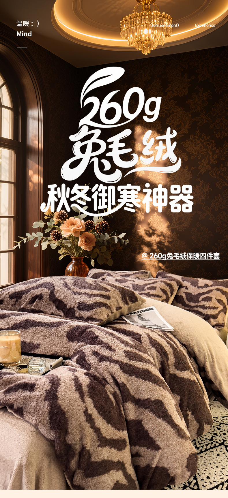 当前位置: 91家纺网 > 商品网购 > 床品套件 > 四件套 > 其它四件套 > 倾慕家纺 2026新款高克重兔毛绒保暖四件套 岩纹