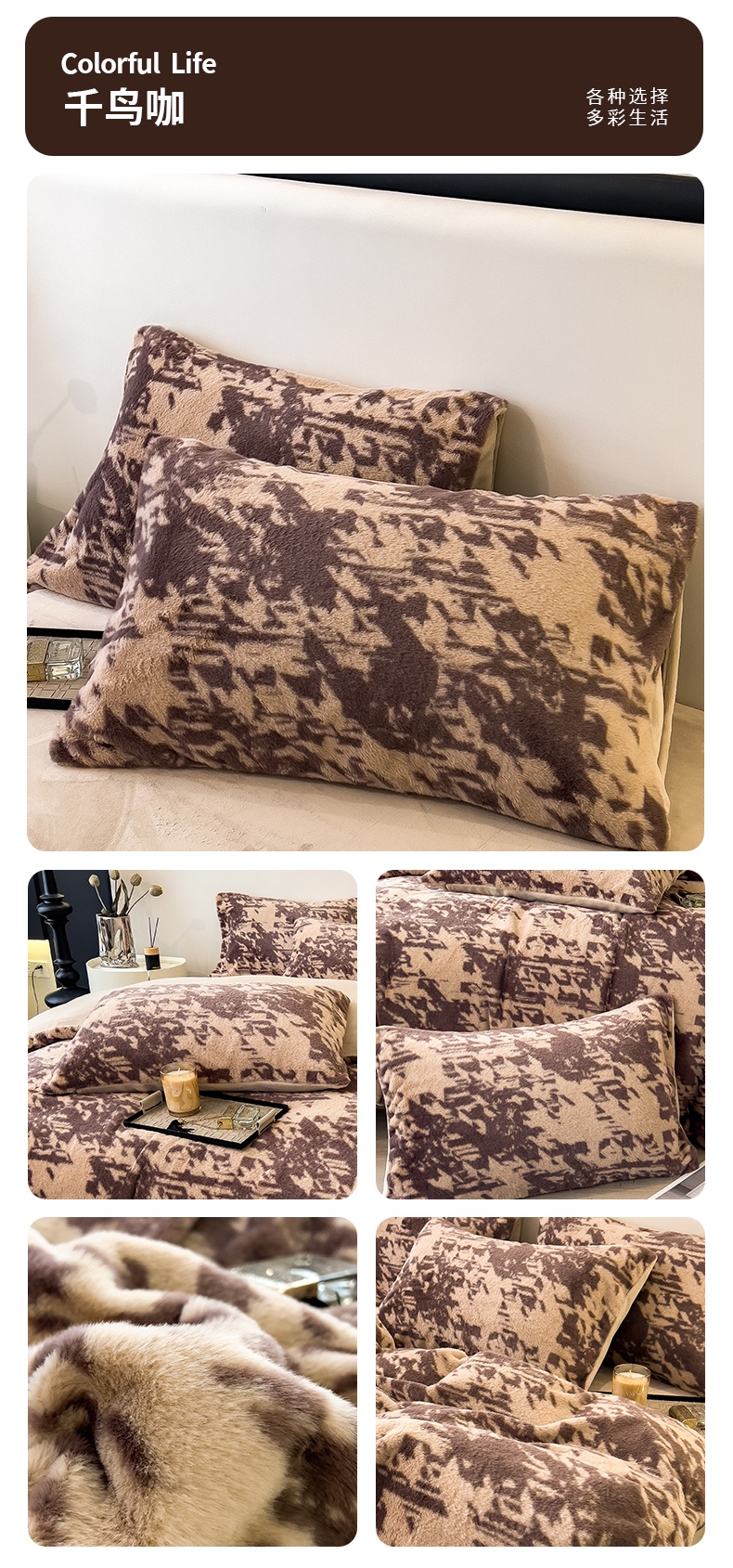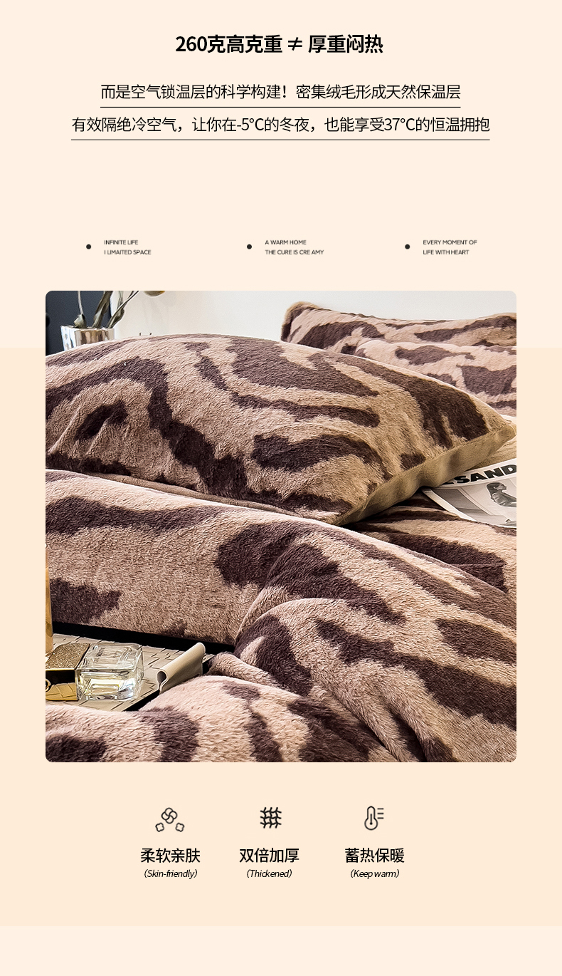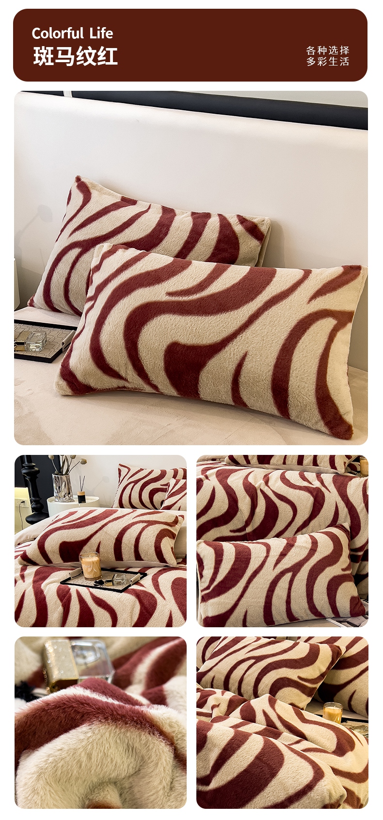 倾慕家纺 2026新款高克重兔毛绒保暖单枕套 斑马纹红