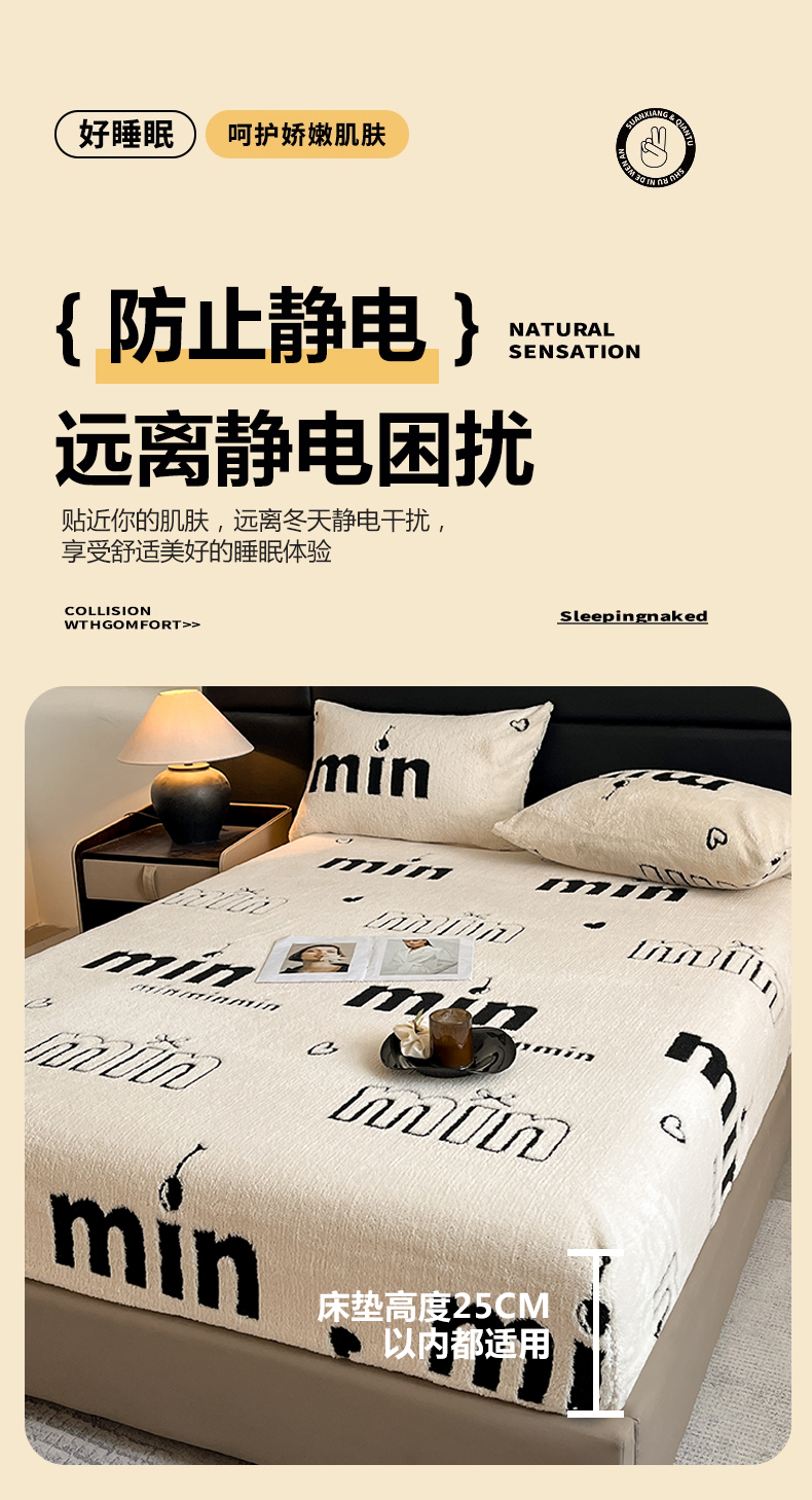 • 91家纺网 家纺一手货源 找家纺 慕木家纺 2025新款A类高克重云慕绒床笠系列(场景二拍摄)提供买家秀 云暮绒床笠-奶昔白