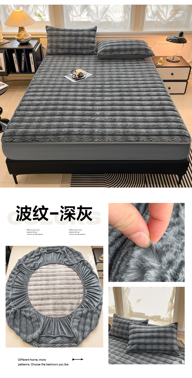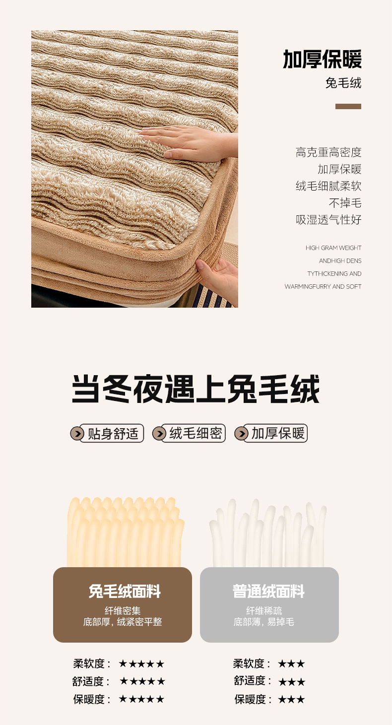 • 91家纺网 家纺一手货源 找家纺 欧邦 2025新款轻奢波纹皮草兔毛绒床笠单床笠床笠单件 波纹-卡其