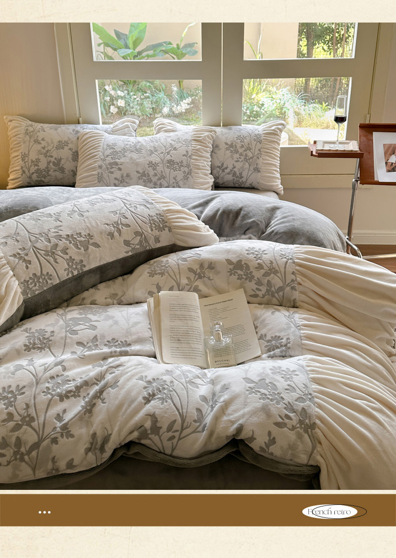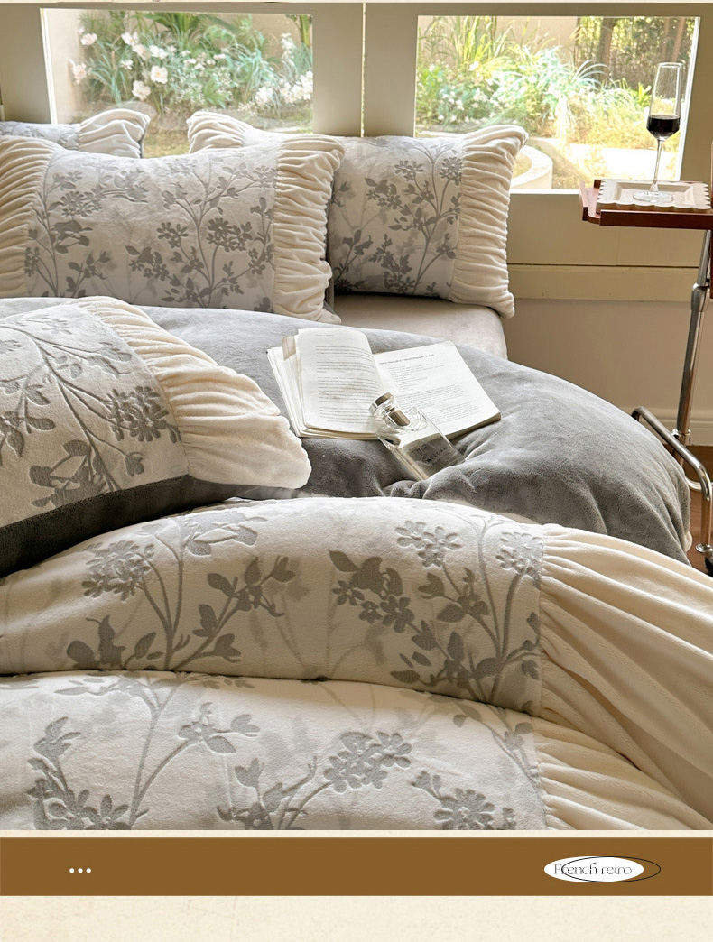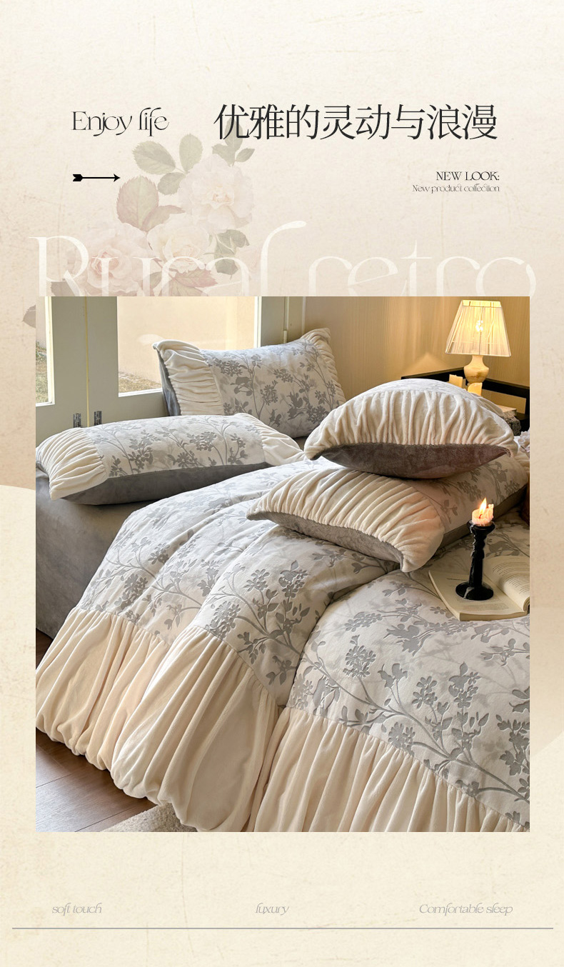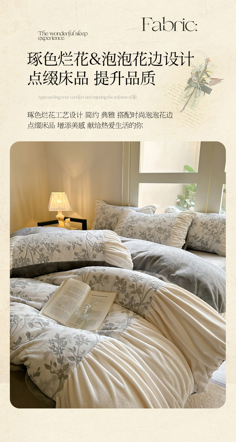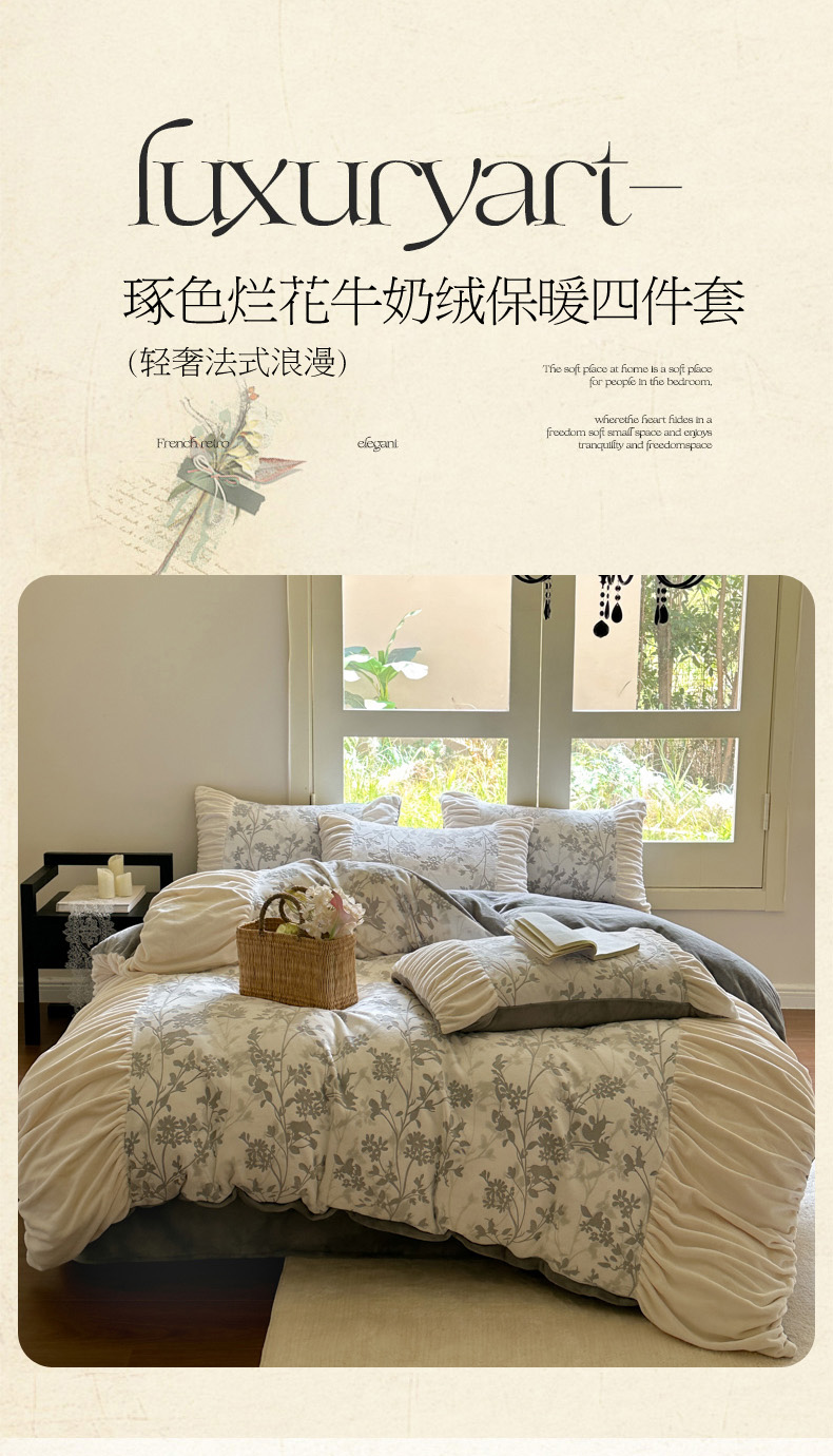 当前位置: 91家纺网 > 商品网购 > 床品套件 > 四件套 > 牛奶绒四件套 > 慕澄家纺 2025新款高克重泡泡袖琢色雕花牛奶绒四件套 水墨