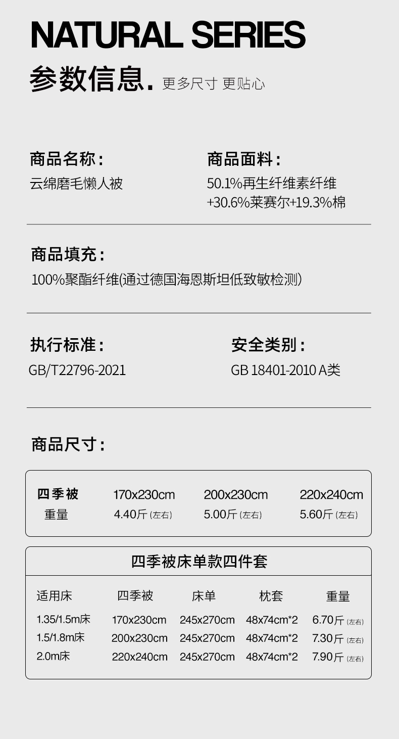 [{"sp_id":11,"sp_name":"\u989c\u8272\u5206\u7c7b","sp_format":2,"sp_list":[{"sp_value_id":1664,"sp_value_name":"\u590d\u53e4\u5496","sp_value_image":{"id":999,"path":"https:\/\/img3.91jf.com\/ghelp\/2025\/20250918\/20250918093958_357970.jpeg"},"sp_value_video":{"id":0,"img":"","path":"","time":0,"download_num":0,"play_num":0},"price":"185.00","storage":2000,"weight":"2.200","is_check_weight":0,"plus_price":"","sp_sort":0}]},{"sp_id":27,"sp_name":"\u5c3a\u5bf8","sp_format":1,"sp_list":[{"sp_value_id":310,"sp_value_name":"170x230cm \u61d2\u4eba\u88ab4.4\u65a4","sp_value_image":{"id":0,"path":""},"sp_value_video":{"id":0,"img":"","path":"","time":0,"download_num":0,"play_num":0},"price":"185.00","storage":0,"weight":"2.200","is_check_weight":0,"plus_price":"","sp_sort":13},{"sp_value_id":311,"sp_value_name":"170x230cm \u61d2\u4eba\u88ab\u5e8a\u5355\u6b3e\u56db\u4ef6\u59576.7\u65a4","sp_value_image":{"id":0,"path":""},"sp_value_video":{"id":0,"img":"","path":"","time":0,"download_num":0,"play_num":0},"price":"333.00","storage":0,"weight":"3.350","is_check_weight":0,"plus_price":"","sp_sort":14},{"sp_value_id":312,"sp_value_name":"200x230cm \u61d2\u4eba\u88ab5\u65a4","sp_value_image":{"id":0,"path":""},"sp_value_video":{"id":0,"img":"","path":"","time":0,"download_num":0,"play_num":0},"price":"200.00","storage":500,"weight":"2.500","is_check_weight":0,"plus_price":"","sp_sort":15},{"sp_value_id":313,"sp_value_name":"200x230cm \u61d2\u4eba\u88ab\u5e8a\u5355\u6b3e\u56db\u4ef6\u59577.3\u65a4","sp_value_image":{"id":0,"path":""},"sp_value_video":{"id":0,"img":"","path":"","time":0,"download_num":0,"play_num":0},"price":"348.00","storage":500,"weight":"3.650","is_check_weight":0,"plus_price":"","sp_sort":16},{"sp_value_id":314,"sp_value_name":"220x240cm \u61d2\u4eba\u88ab5.6\u65a4","sp_value_image":{"id":0,"path":""},"sp_value_video":{"id":0,"img":"","path":"","time":0,"download_num":0,"play_num":0},"price":"220.00","storage":500,"weight":"2.800","is_check_weight":0,"plus_price":"","sp_sort":17},{"sp_value_id":315,"sp_value_name":"220x240cm \u61d2\u4eba\u88ab\u5e8a\u5355\u6b3e\u56db\u4ef6\u59577.9\u65a4","sp_value_image":{"id":0,"path":""},"sp_value_video":{"id":0,"img":"","path":"","time":0,"download_num":0,"play_num":0},"price":"368.00","storage":500,"weight":"3.950","is_check_weight":0,"plus_price":"","sp_sort":18}]}]