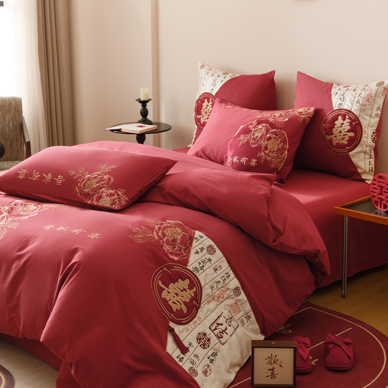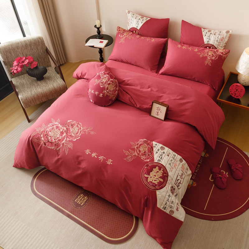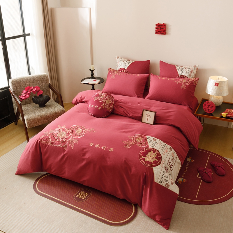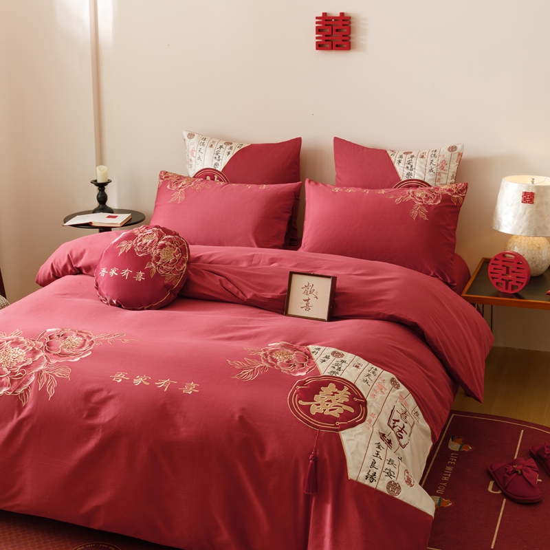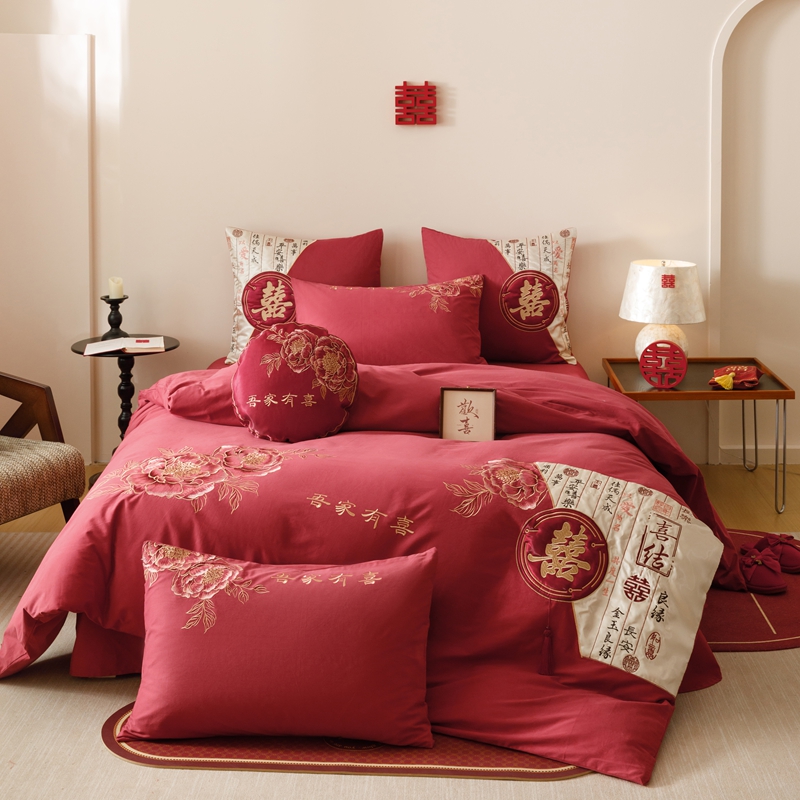 商品名称:(总)星野 2025新款全棉纯棉磨毛刺绣四件套-喜礼(控价券后不低于:标准388/加大408)