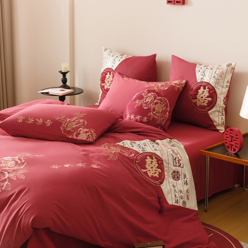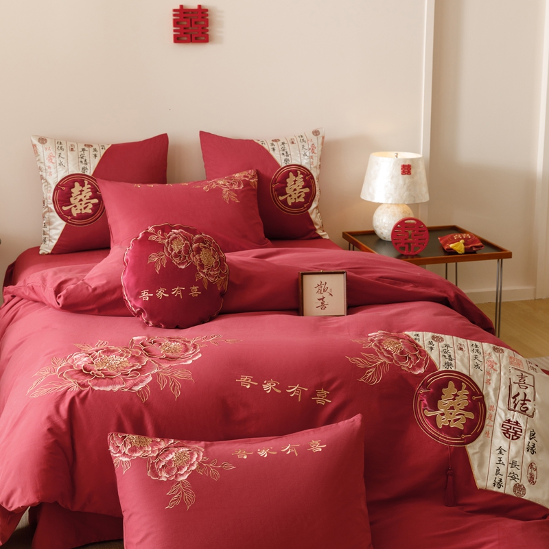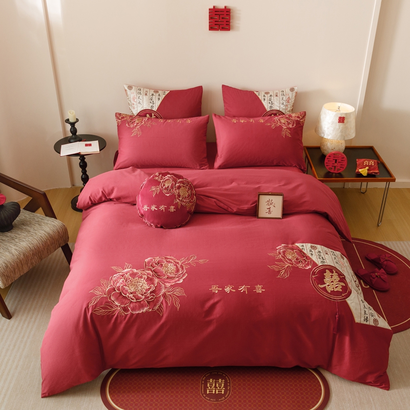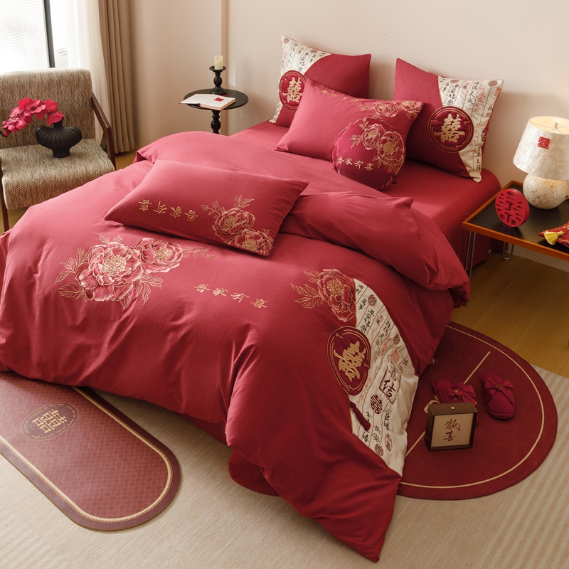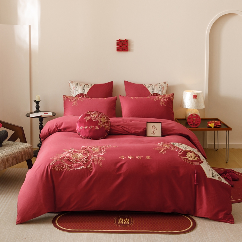 商品名称:(总)星野 2025新款全棉纯棉磨毛刺绣四件套-喜礼(控价券后不低于:标准388/加大408)