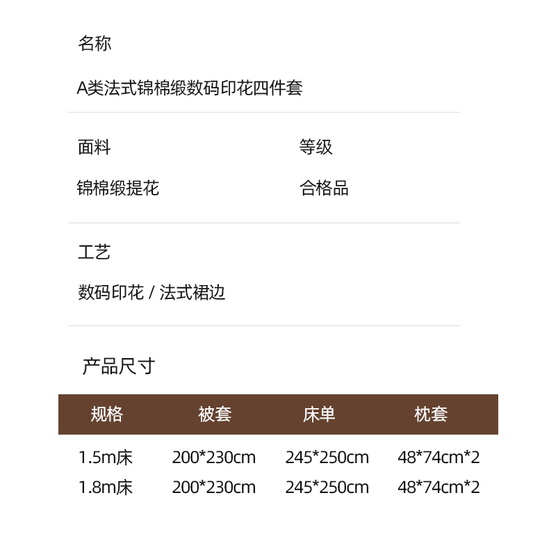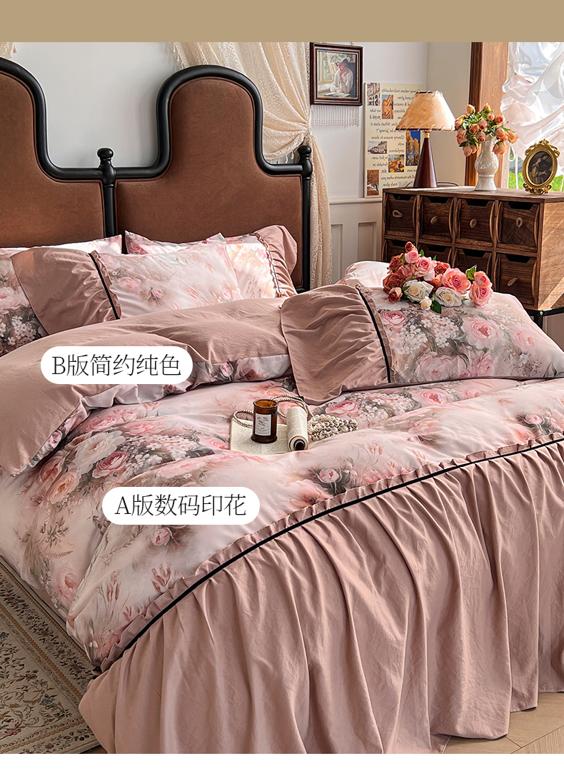 商品名称:棠颂家纺 2025新款法式锦棉缎数码印花四件套 风月