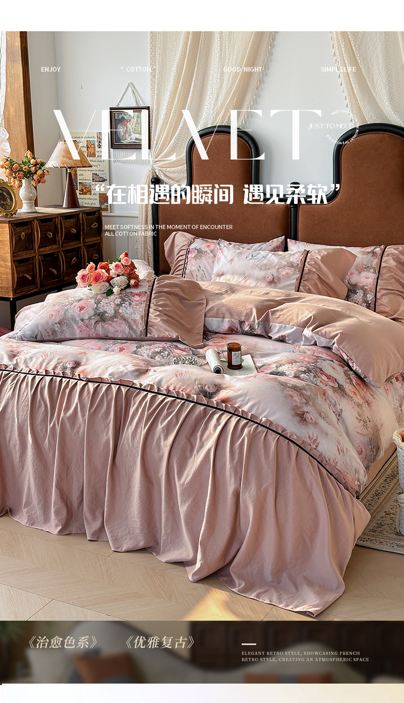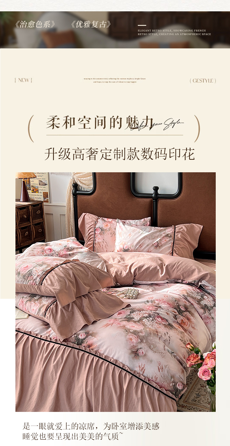 (总)棠颂家纺 2025新款法式锦棉缎数码印花四件套,风月,霓裳