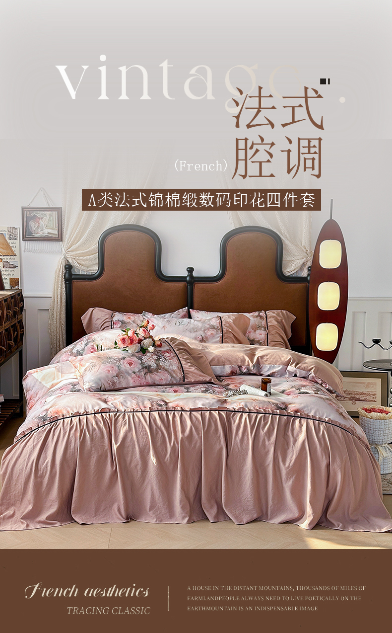 棠颂家纺 2025新款法式锦棉缎数码印花四件套 风月