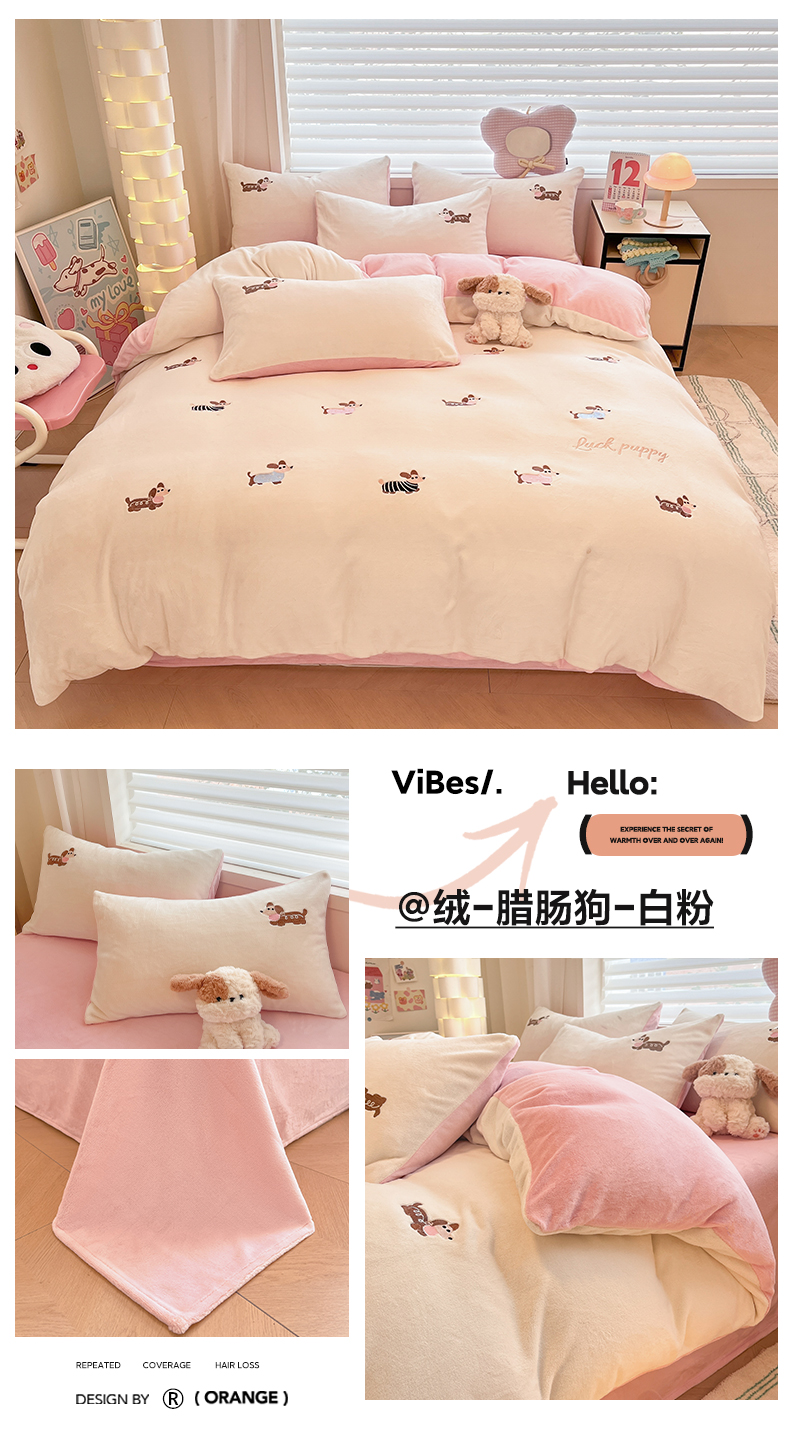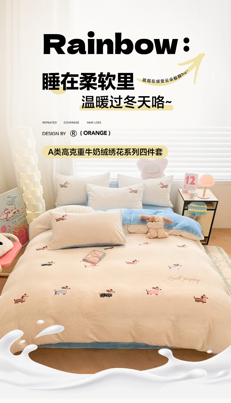 (总)如一 2025新款高克重大版数码印花牛奶绒四件套,毛毛狗,猫咪酱,俏皮狗,色彩猫,小熊仔,熊猫咖,游乐园,粉伙伴,拉兔咖,萌宠黄,萌宠绿,萌派对,围巾狗,线条狗,小粉喵,小花喵,小伙伴