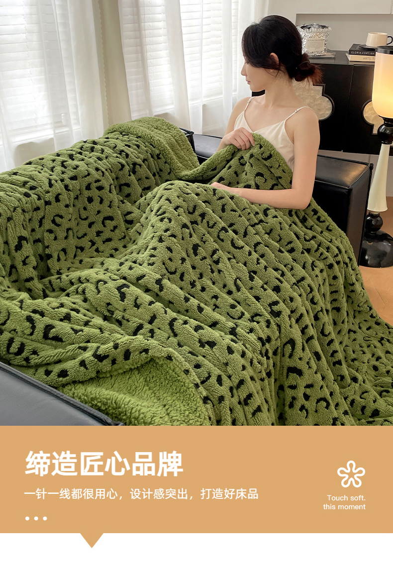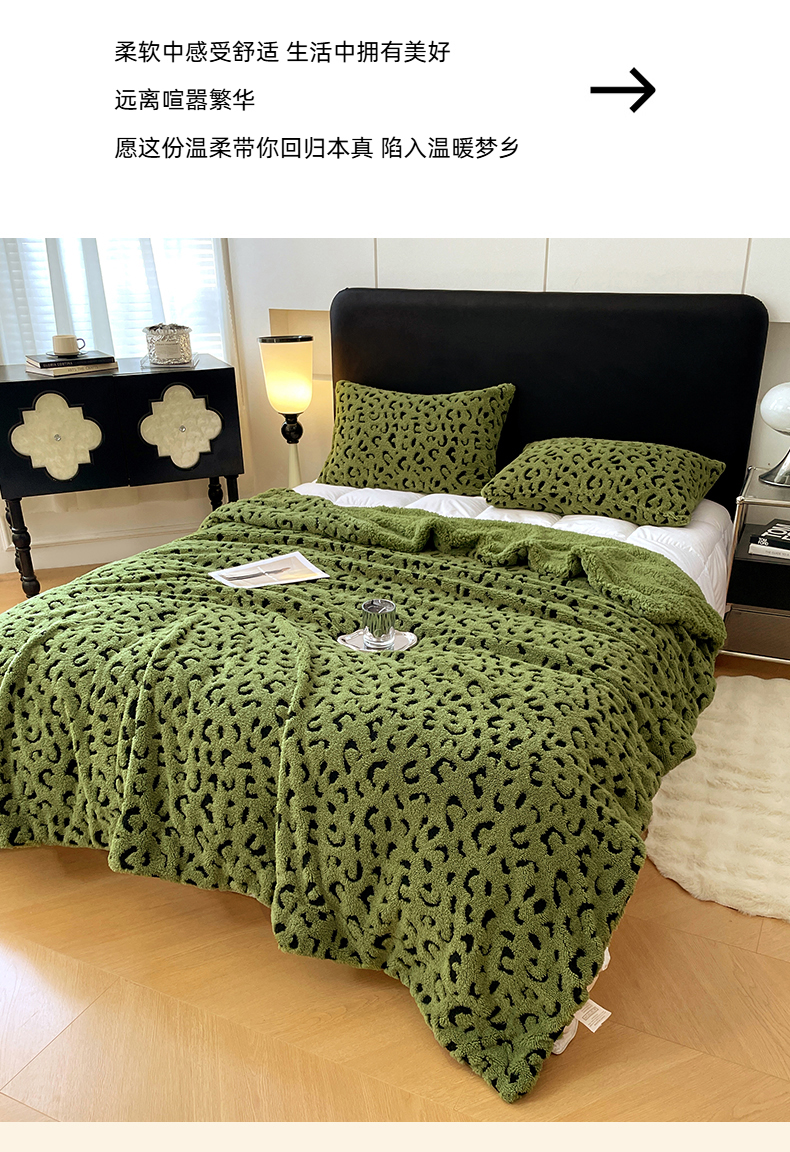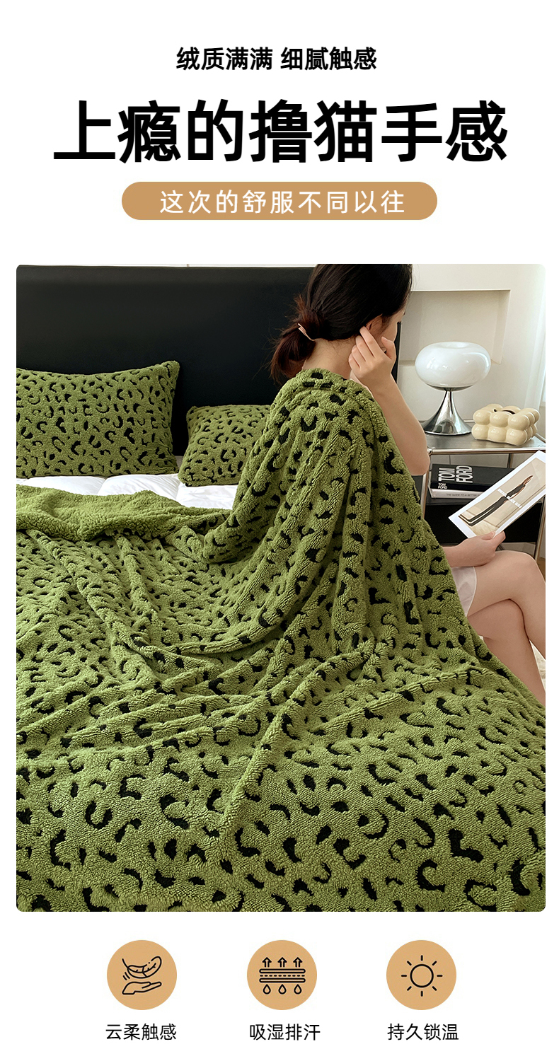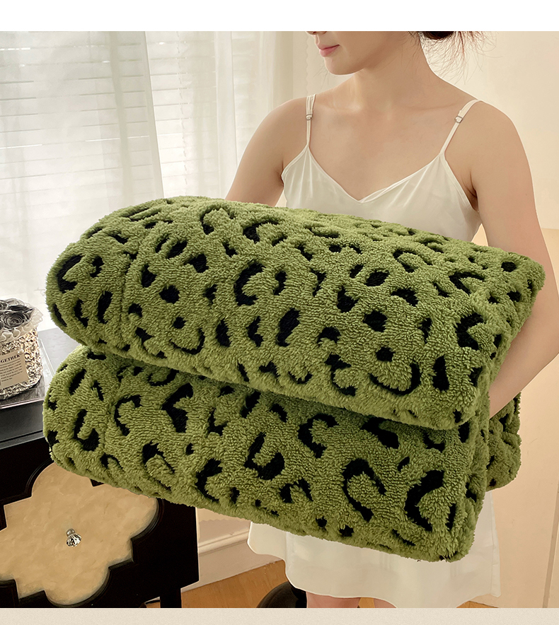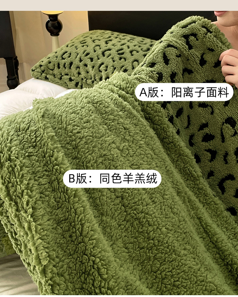 楼兰公主毛毯专供 2025爆款阳离子豹纹双层单层羊羔绒跨境绒毯 豹纹-深绿