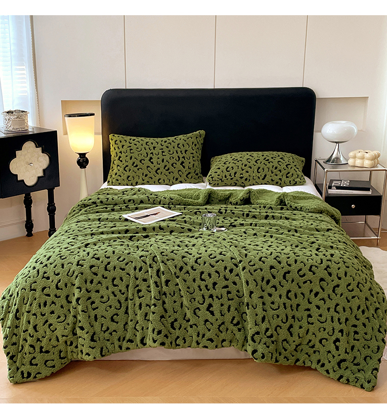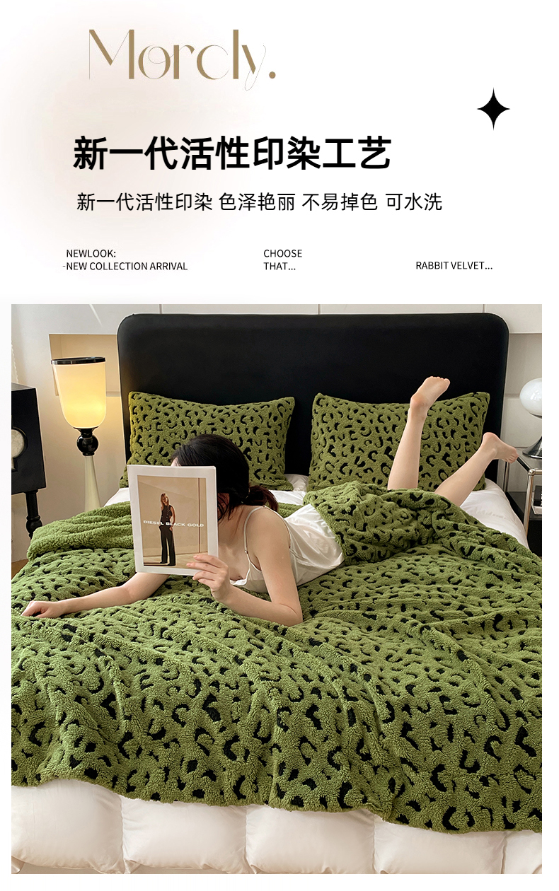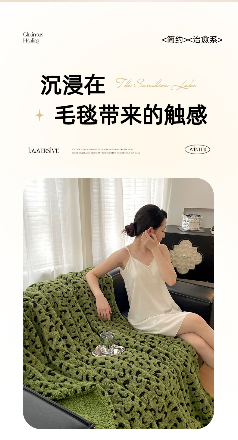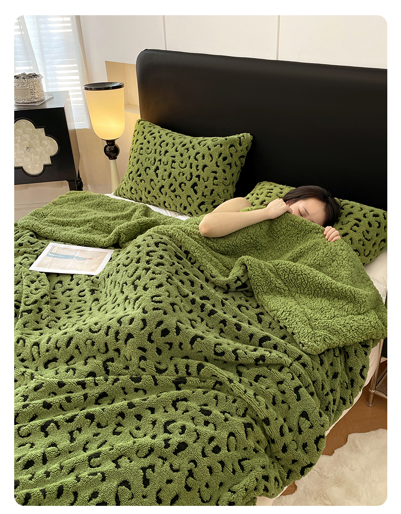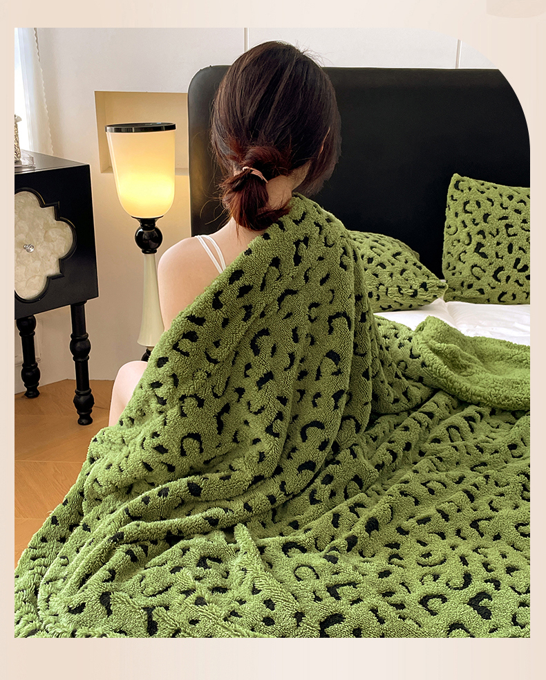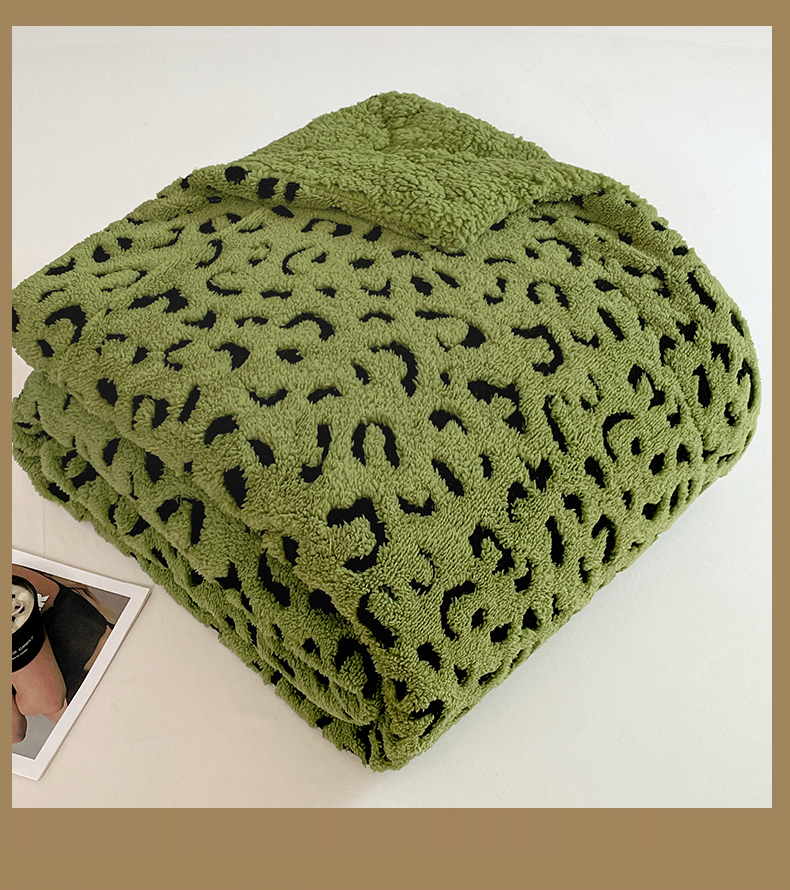 楼兰公主毛毯专供 2025爆款阳离子豹纹双层单层羊羔绒跨境绒毯 豹纹-深绿