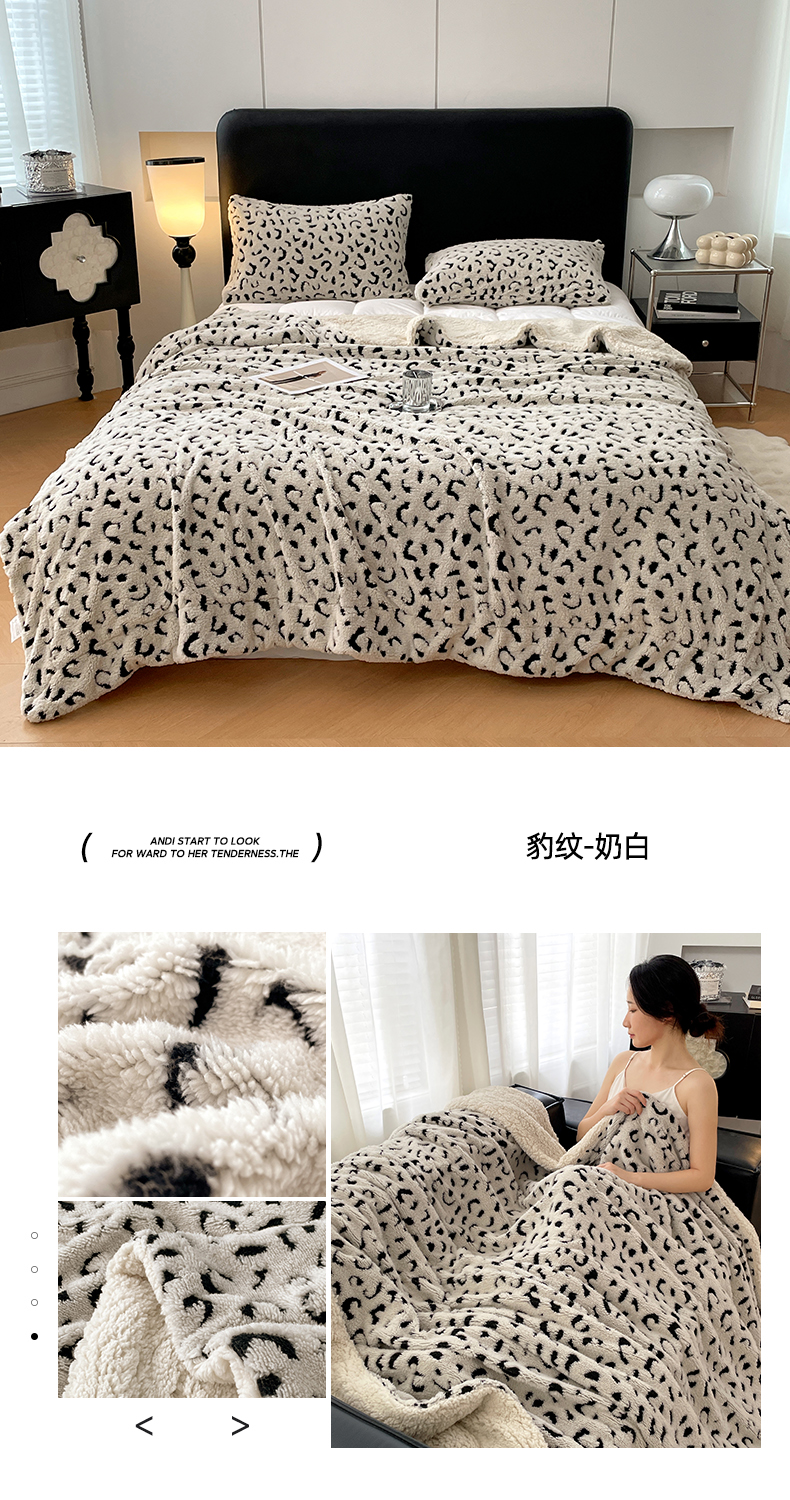 商品名称:楼兰公主毛毯专供 2025爆款阳离子豹纹双层单层羊羔绒跨境绒毯 豹纹-深绿