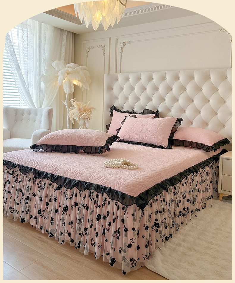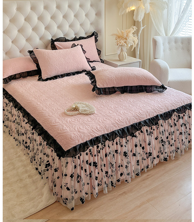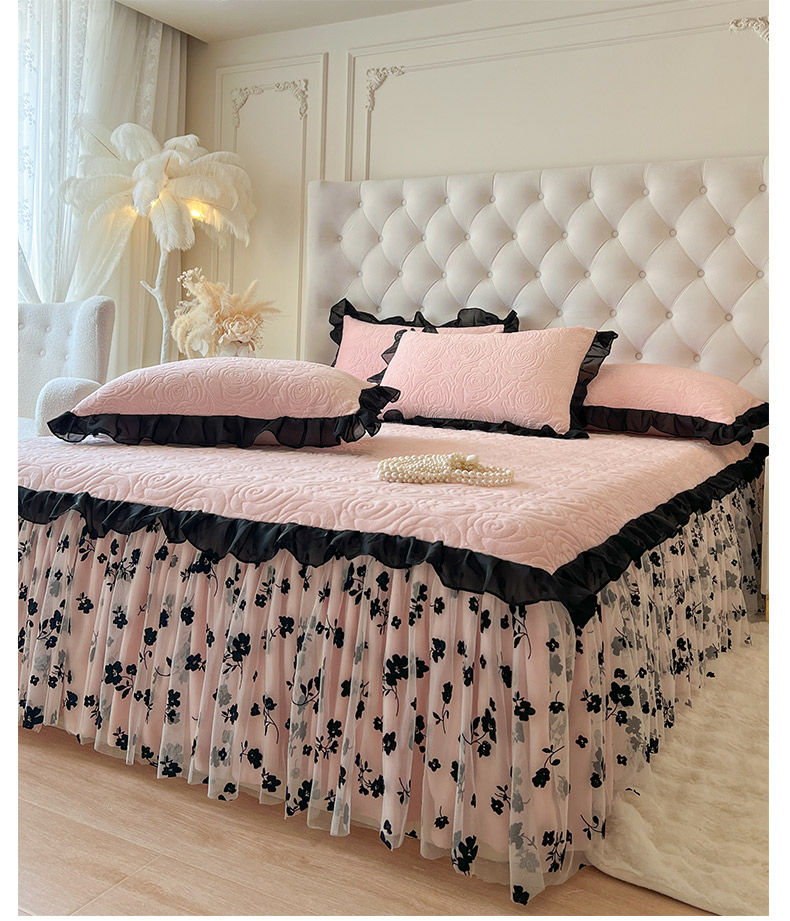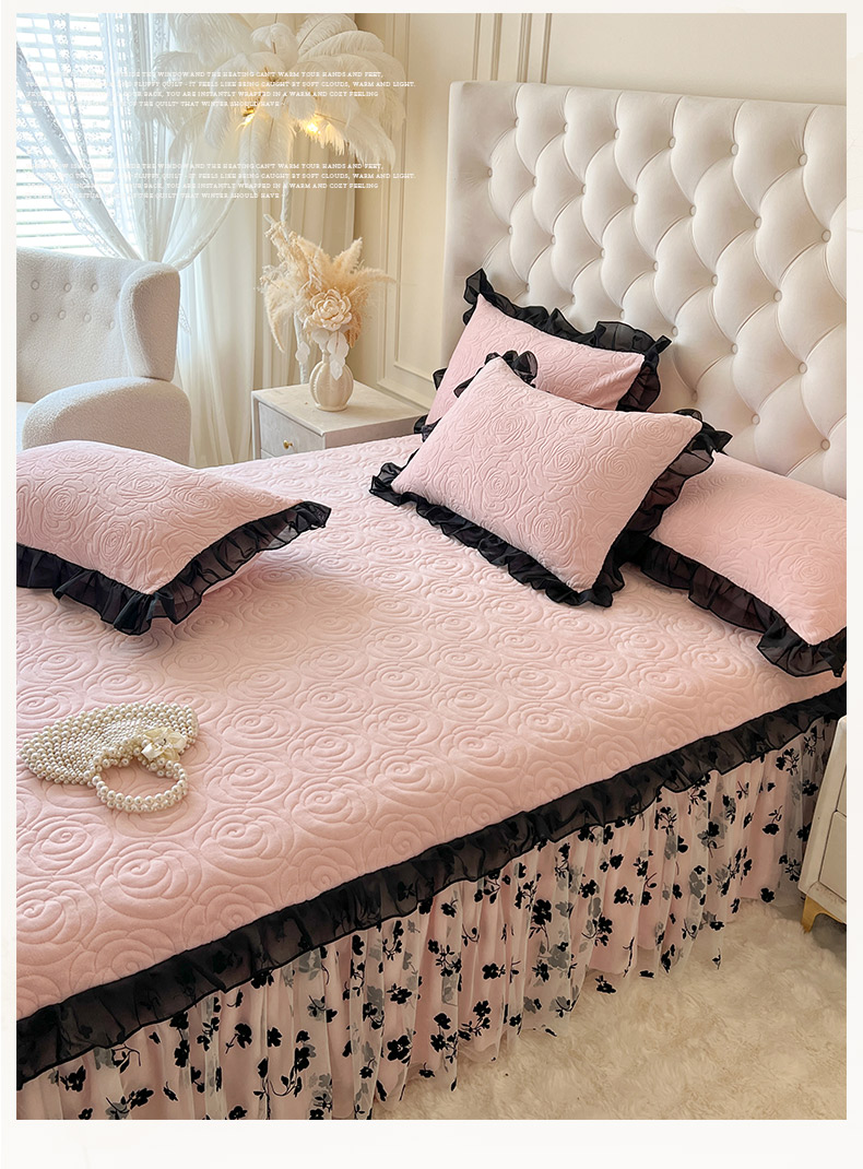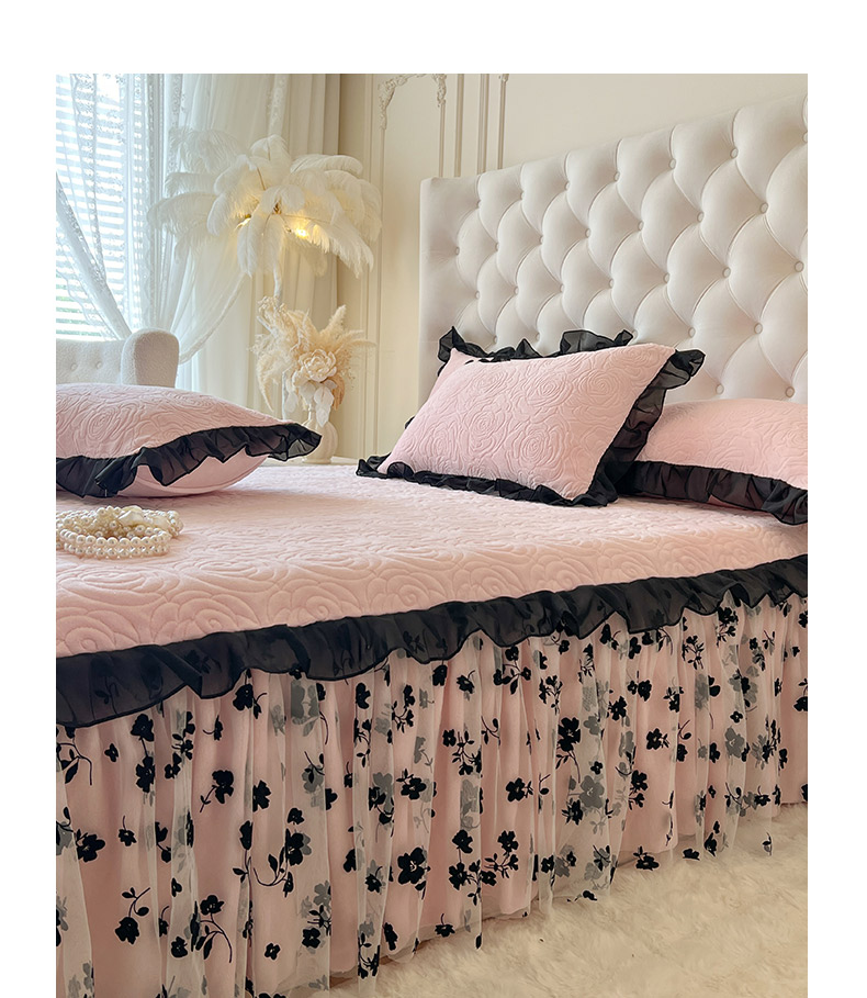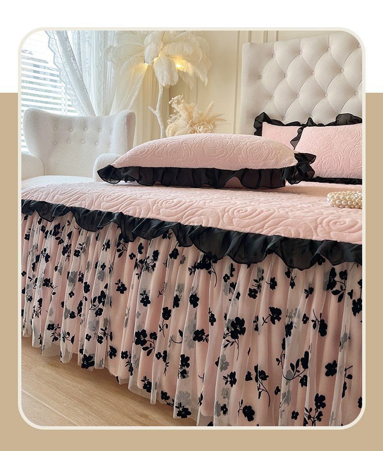 • 91家纺网 家纺一手货源 找家纺 恋尚 2025新款牛奶绒可妮露系列单品床裙三件套(控价150起) 可妮露-清新粉