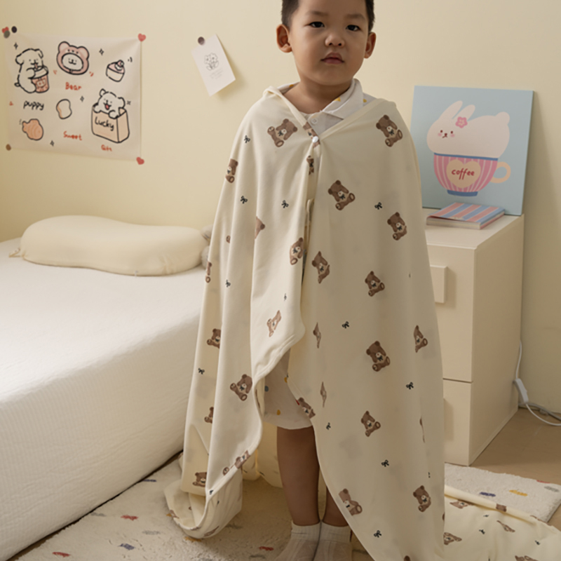 寐居家纺 2025新款企鹅绒多功能儿童毛巾毯(可当披肩用) 企鹅绒毯-条纹画