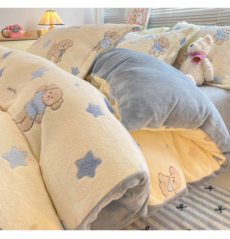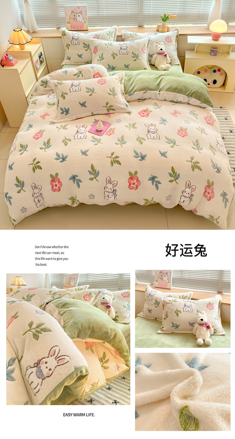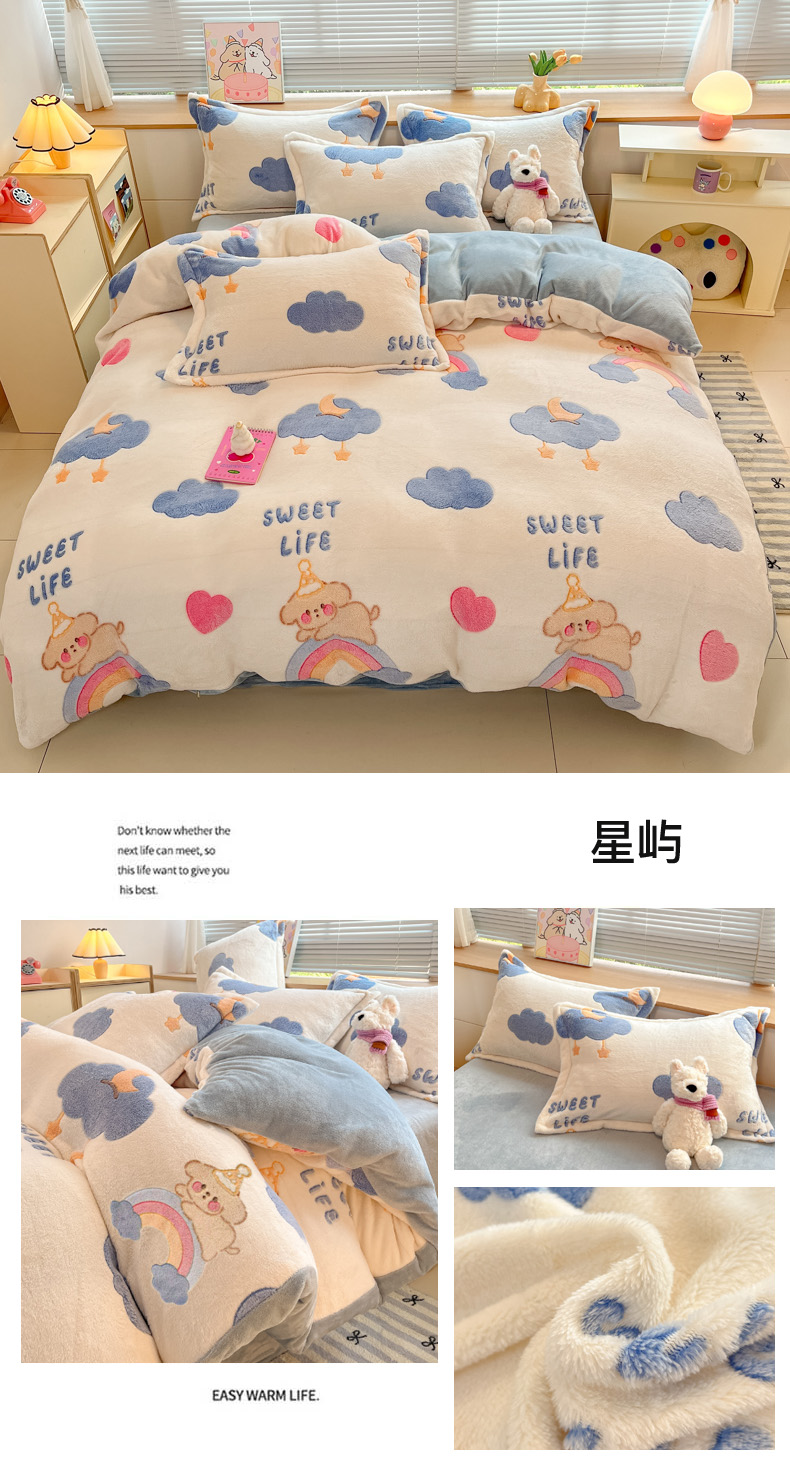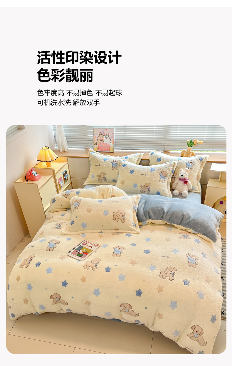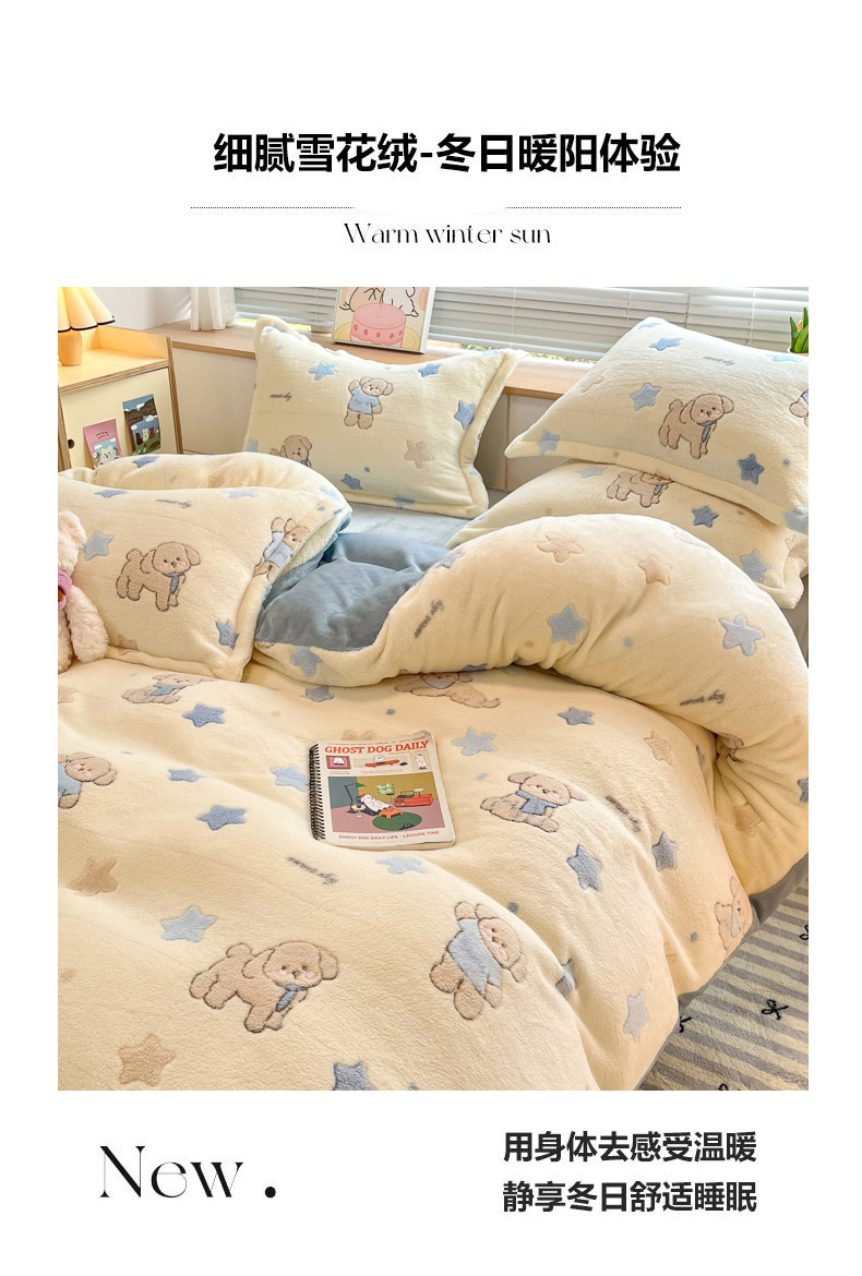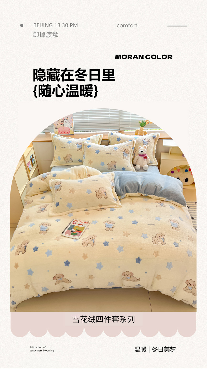 (总)慕尚家纺 2025新款豆豆绒刺绣四件套,大耳狗 白蓝,玫瑰 白粉