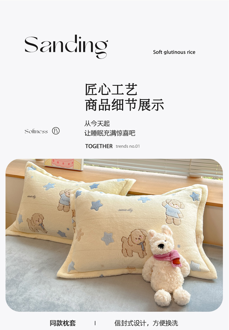 (总)慕尚家纺 2025牛奶绒床盖床褥被套三件套四件套--单枕套,图图狗,安逸,宝贝熊仔,布兰卡,冬暖,菲娜,古雅,蝴蝶花,蝴蝶小兔,花美,花园兔,开心狗,快乐熊猫,丽娜,梦蝶,摩登花园,苹果小熊,奇妙猫,生态叶,苏格兰,甜美冬日,鲜花小兔,醒醒兔,幸运花