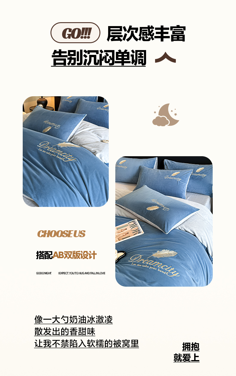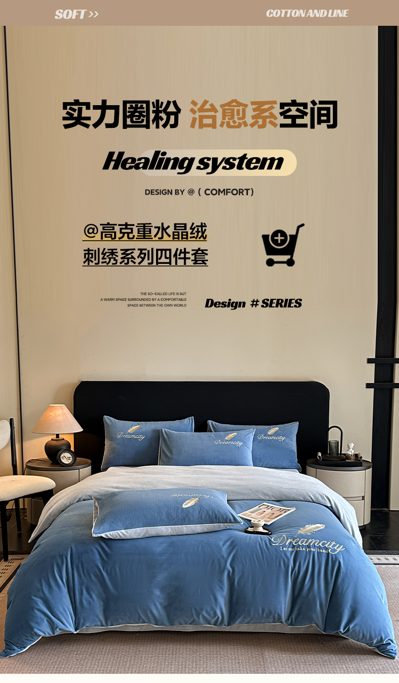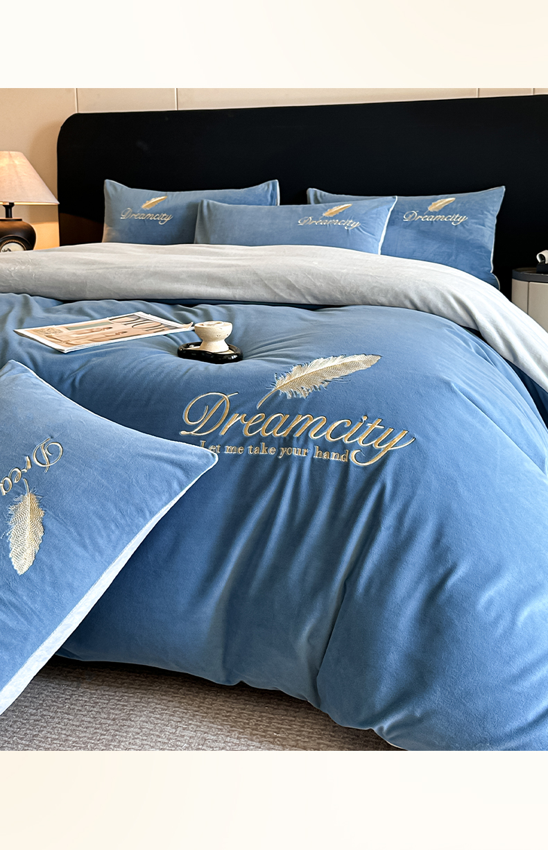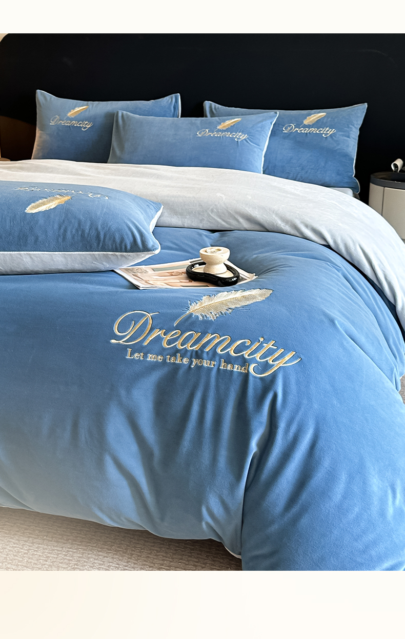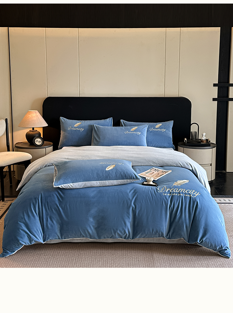 当前位置: 91家纺网 > 商品网购 > 床品套件 > 四件套 > 水晶绒四件套 > 如一 2025新款水晶绒双拼刺绣四件套轻羽系列-系列二 轻羽-雾蓝灰