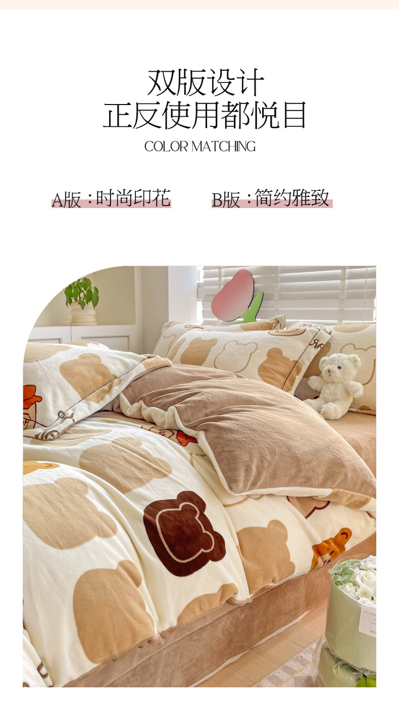 商品名称:丽涵家纺 2025秋冬新品230克全工艺消光牛奶绒印花四件套 淘气熊