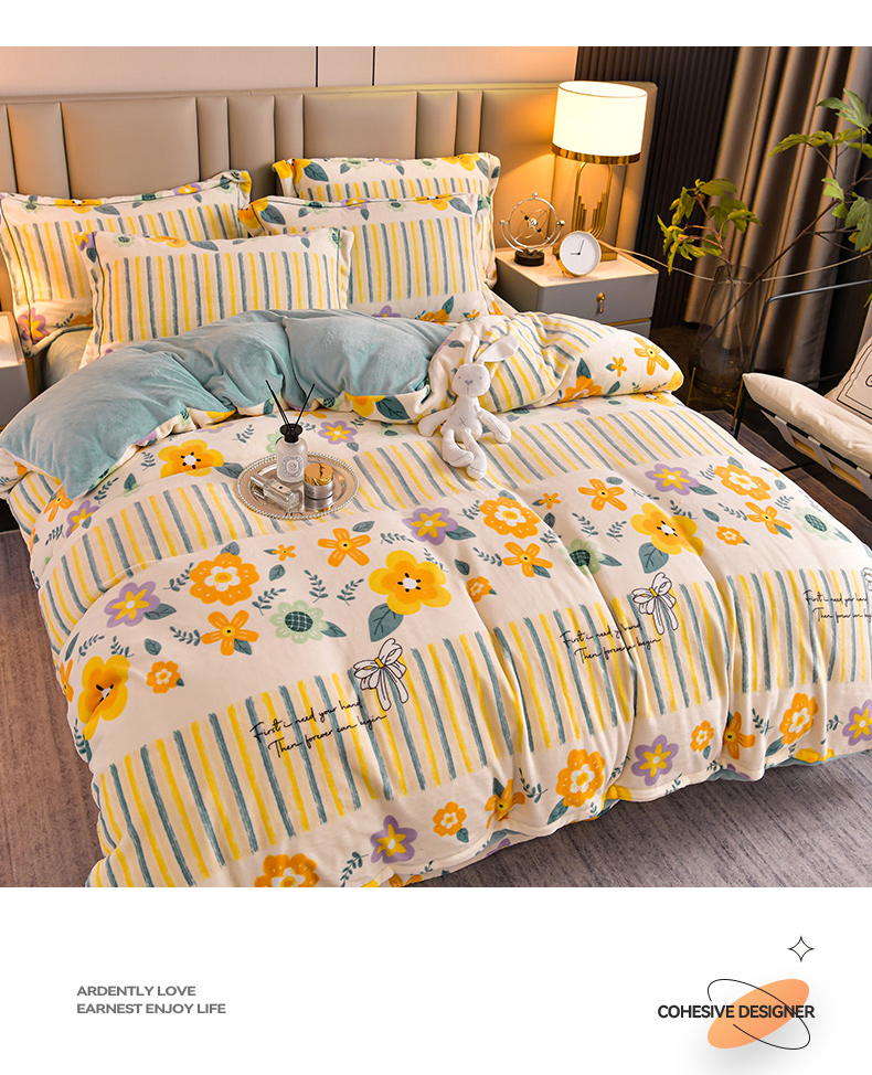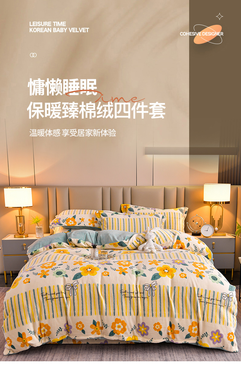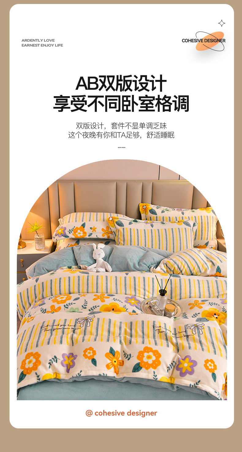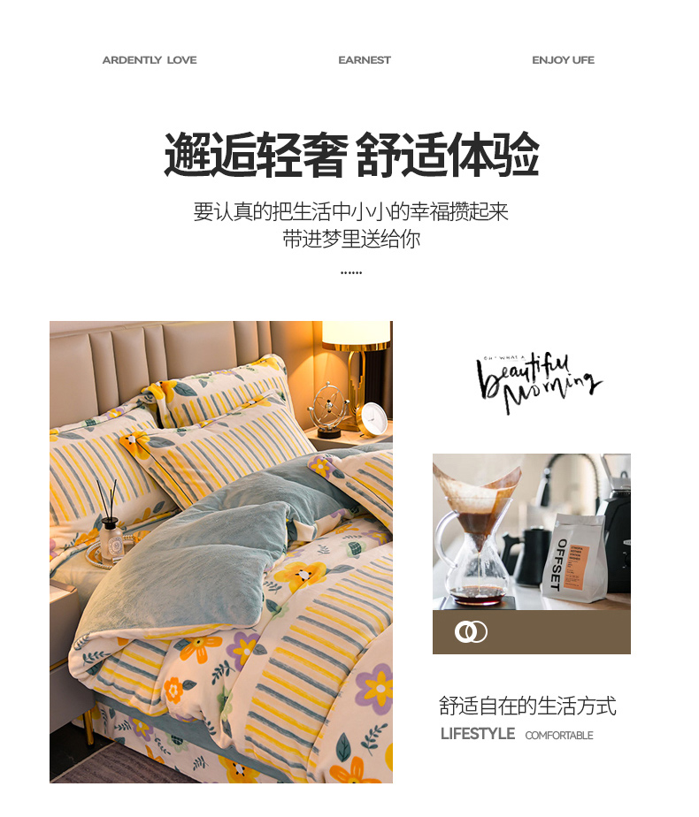 商品名称:丽涵家纺 2025秋冬新品230克全工艺消光牛奶绒印花四件套 莫奈花园