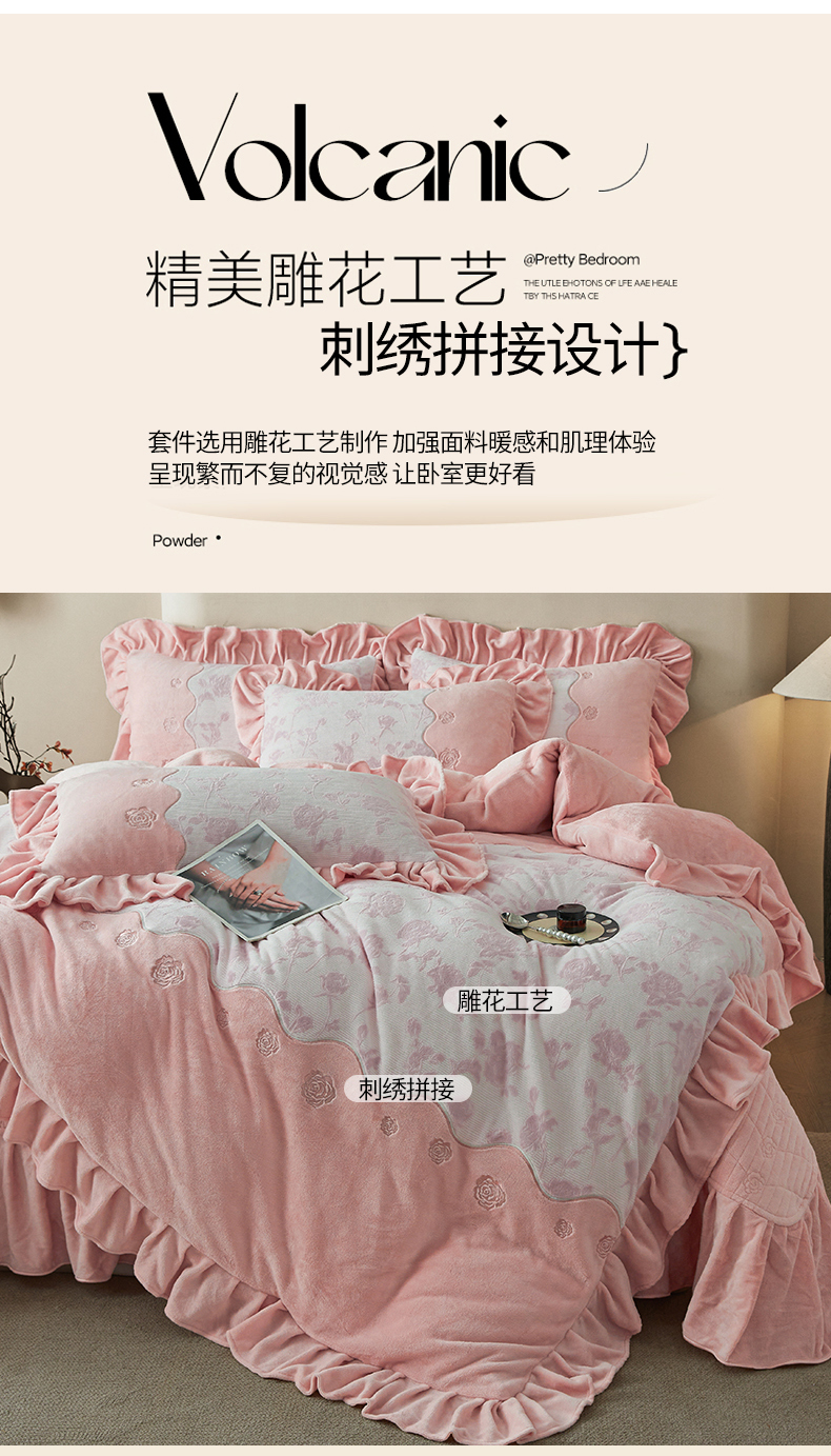 (总)宜凡家纺 2025新款兔绒提花牛奶绒夹棉床裙四件套,爱心 少女粉,爱心 粉紫,爱心 驼色,蝶舞 大红,蝶舞 米色,蝶舞 浅紫,蝶舞 玉色,简爱 苍青,简爱 豆沙紫,简爱 玉色,樱桃 苍青,樱桃 豆沙紫,樱桃 奶油白