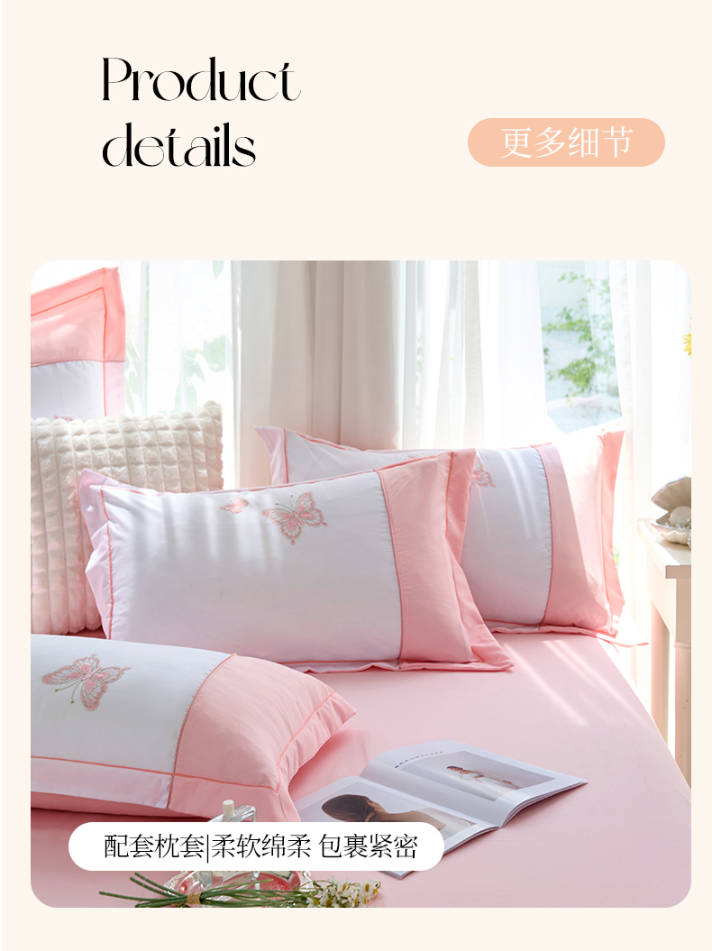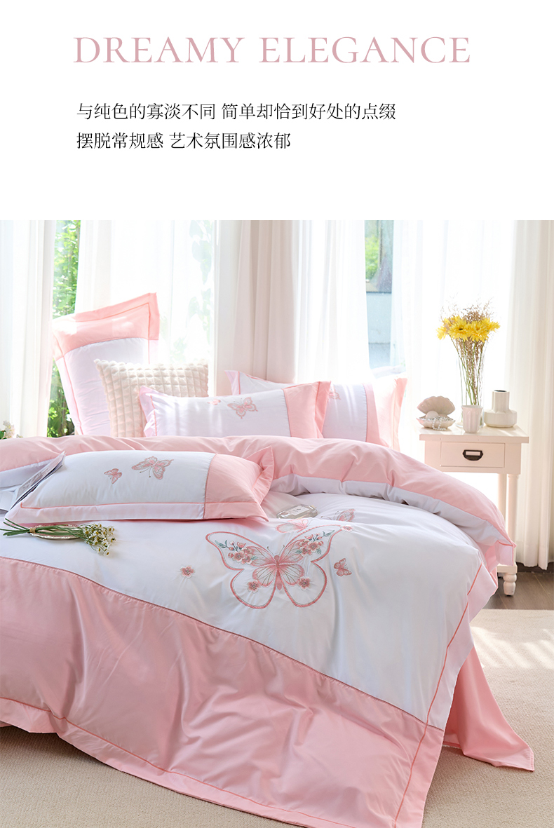 (总)包小包 2024春夏新款韩版蝶舞系列臻丝棉四件套,粉白双拼,晴空蓝,芝芝桃桃,甜杏粉,清新桔,梦幻紫
