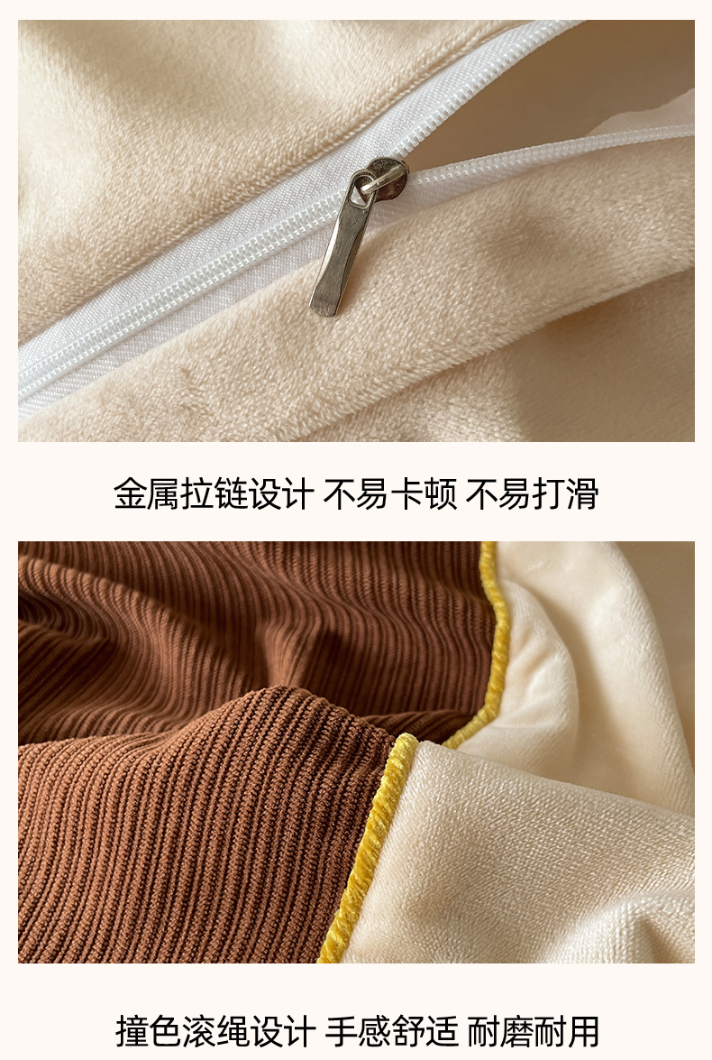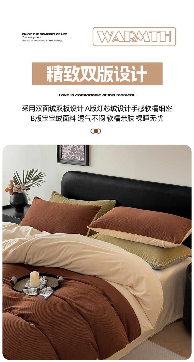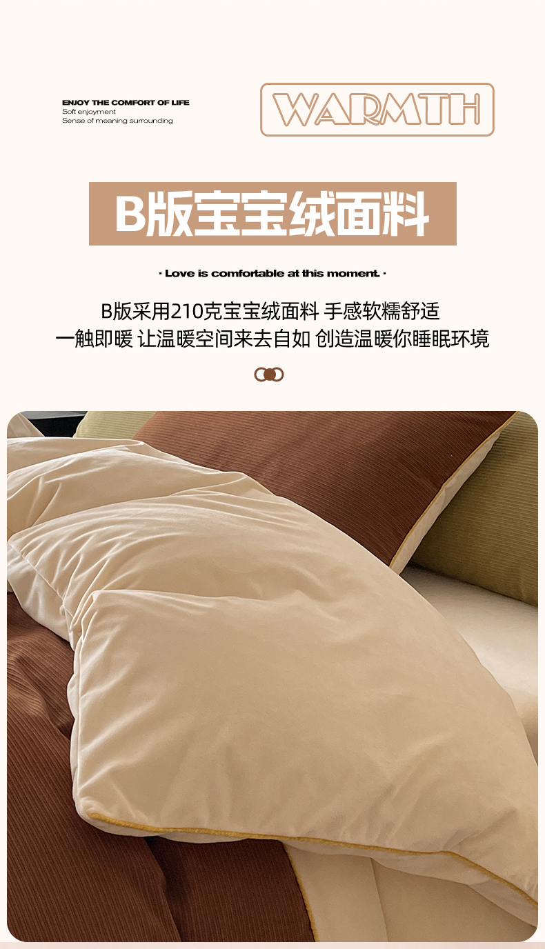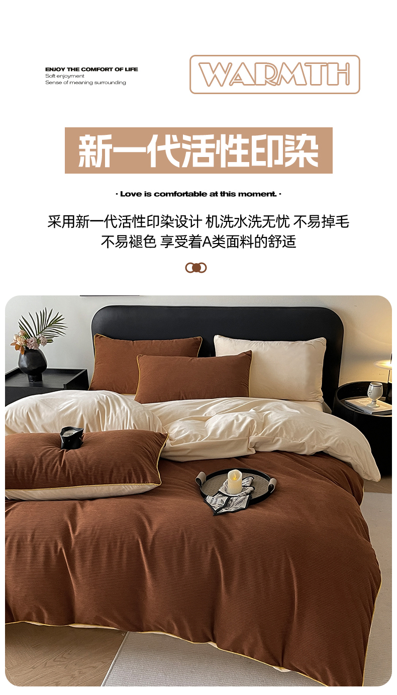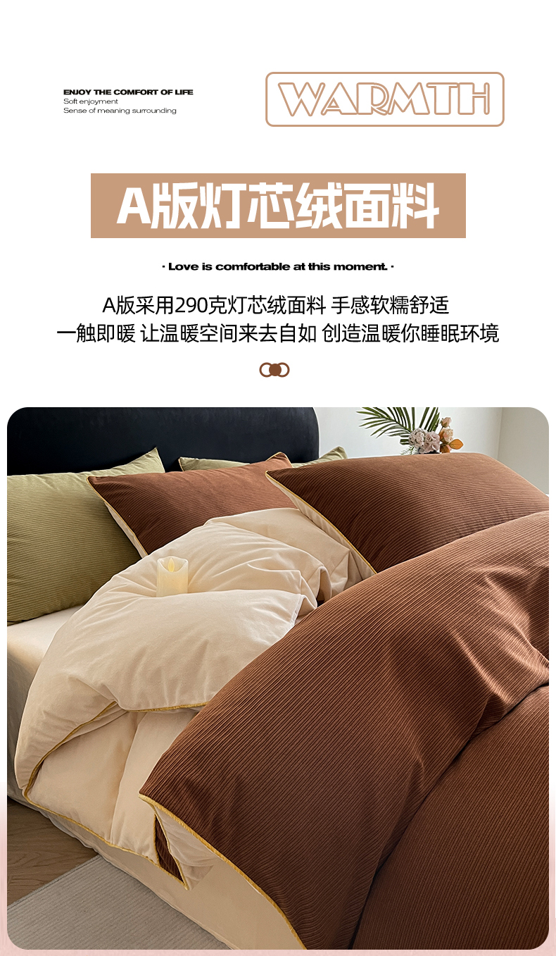 商品名称:羚羊语家纺 2025新款280克灯芯绒婴儿绒四件套高级嵌绳拼接款水晶绒宝宝绒牛奶绒床单床笠款三件套-奶芙绒系列 榛果奶茶