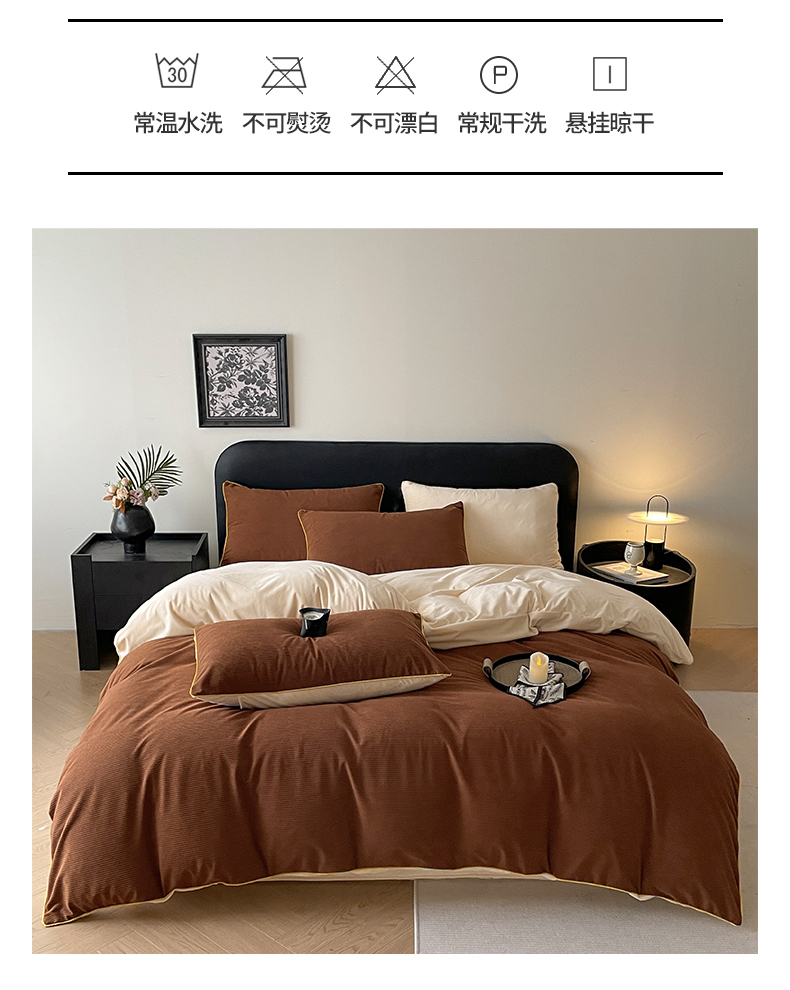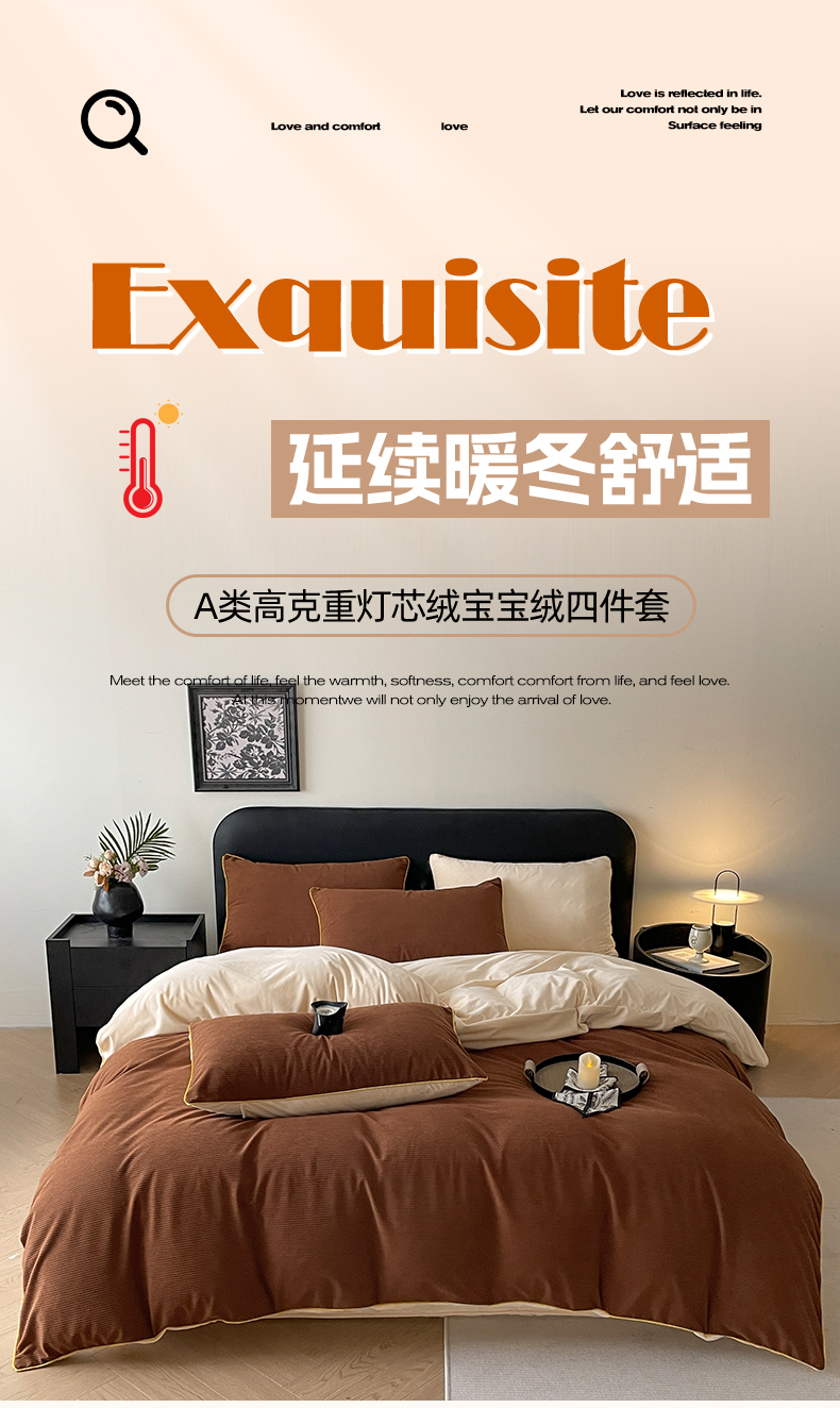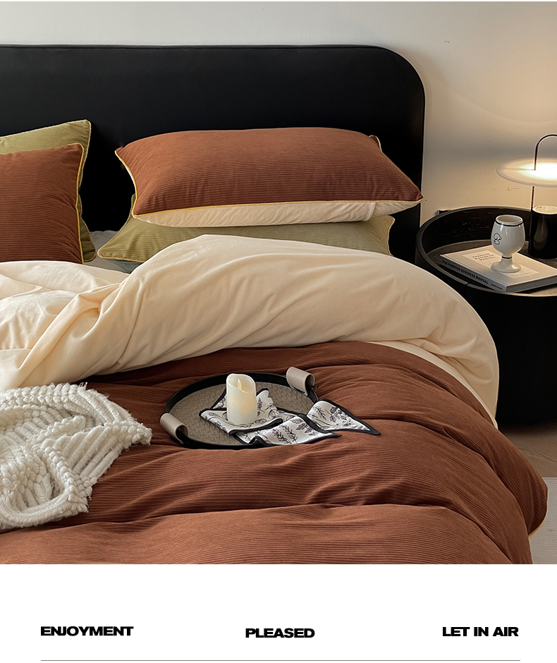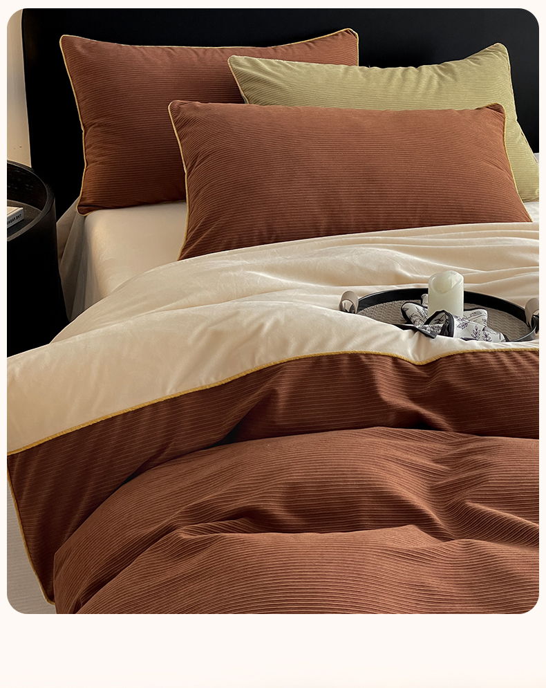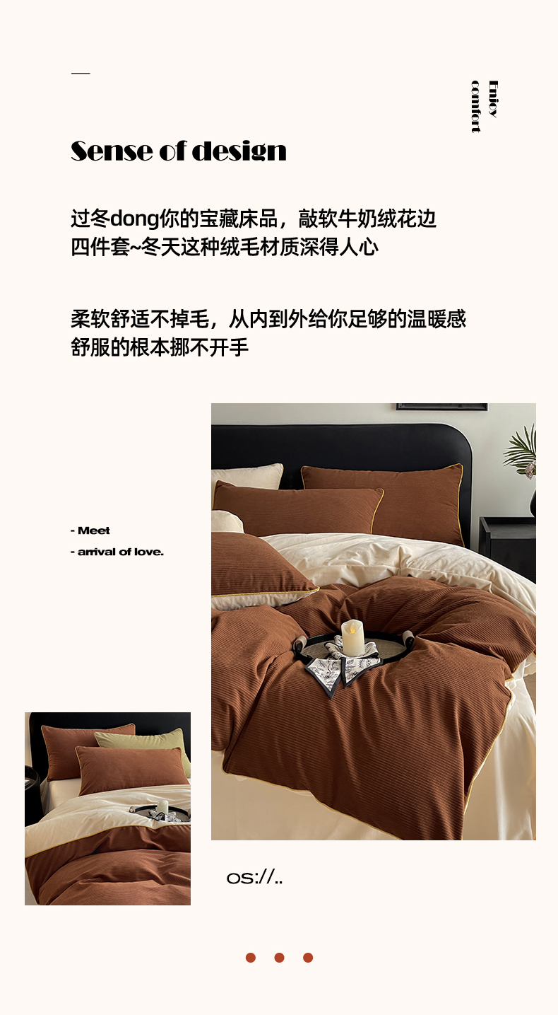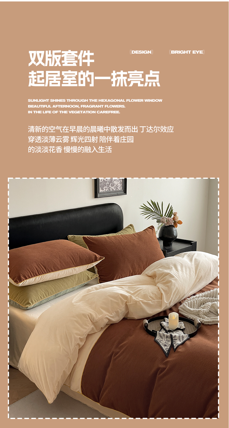 商品名称:羚羊语家纺 2025新款280克灯芯绒婴儿绒四件套高级嵌绳拼接款水晶绒宝宝绒牛奶绒床单床笠款三件套-奶芙绒系列 榛果奶茶