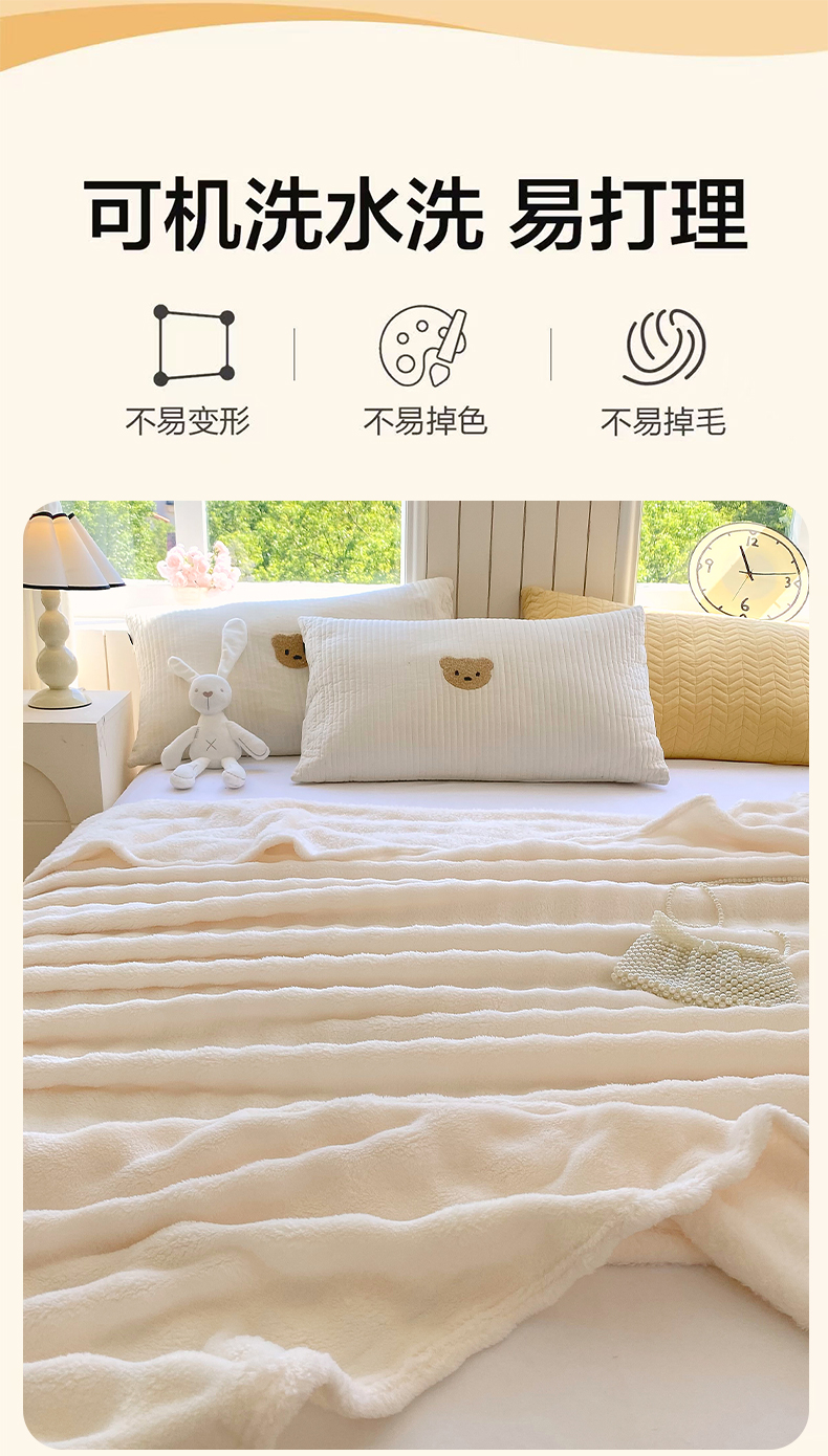 悦织湾家纺 2025新款双面加厚泡泡绒毛毯印花纯色仿兔毛绒牛奶绒毯子休闲小盖毯沙发办公室午睡毯 樱桃小熊