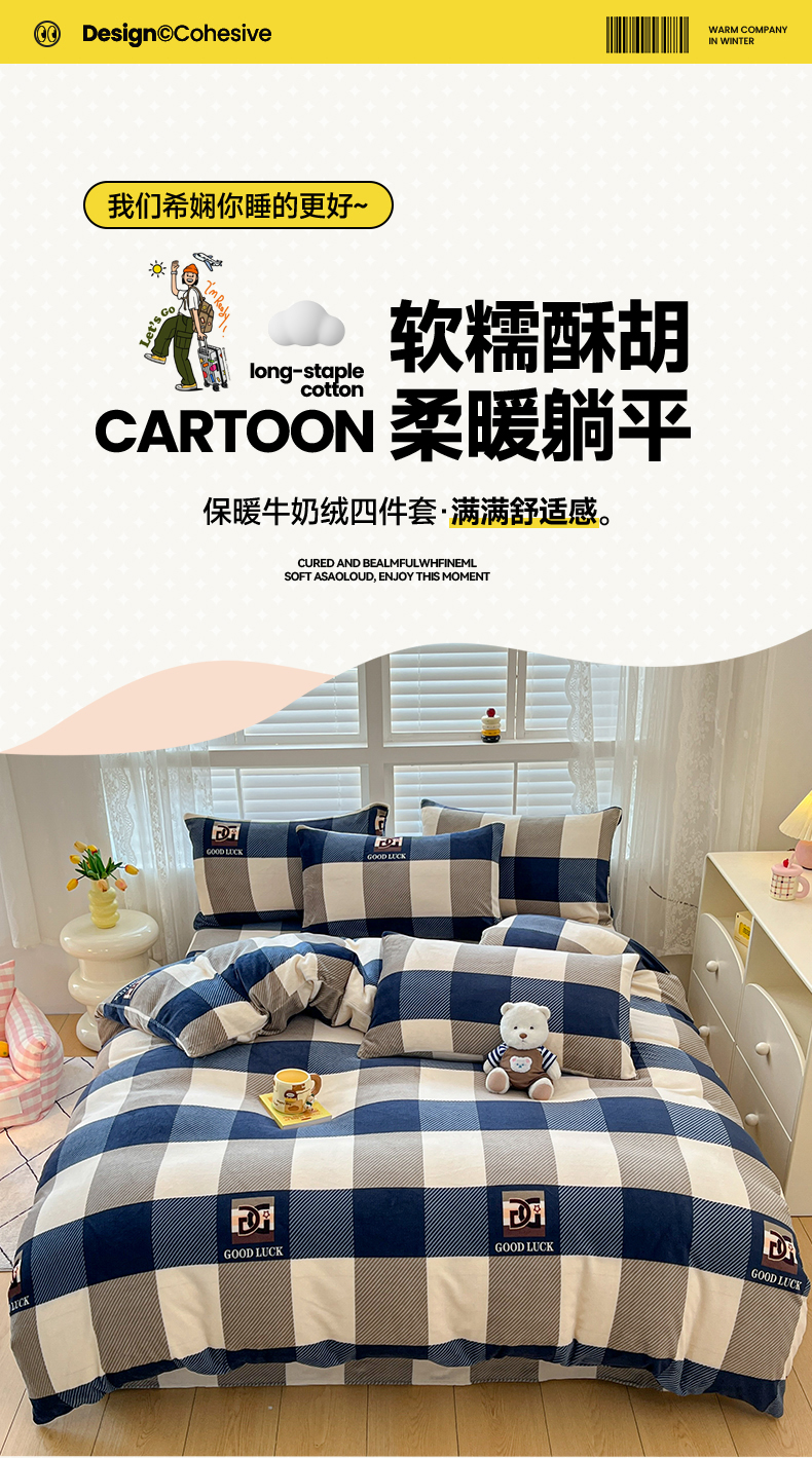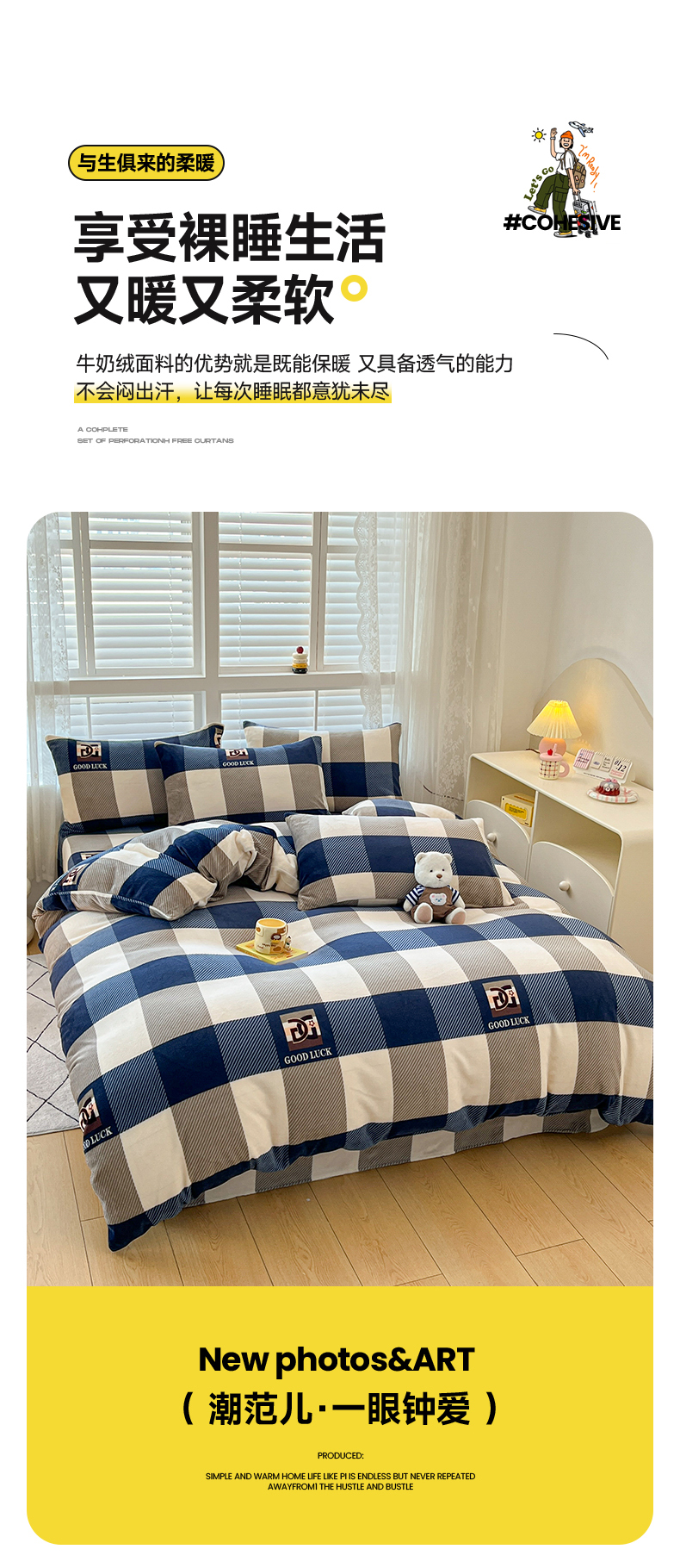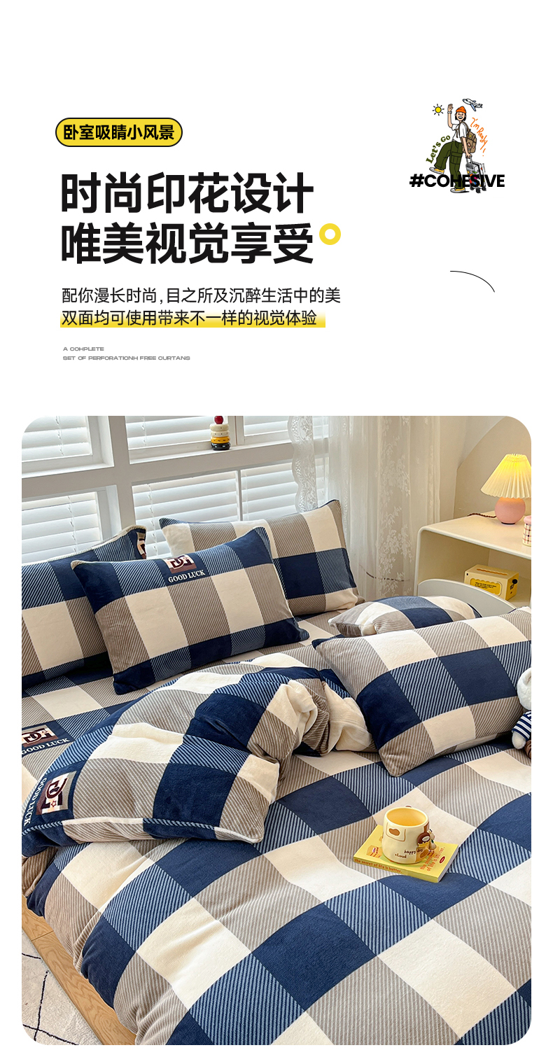 当前位置: 91家纺网 > 商品网购 > 床品套件 > 四件套 > 牛奶绒四件套 > 蓝梦 2025新款加厚保暖牛奶绒印花四件套 时尚新都