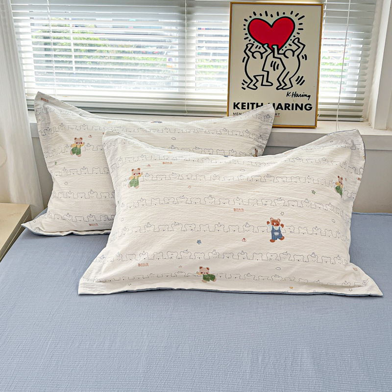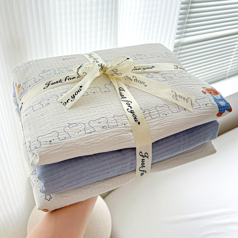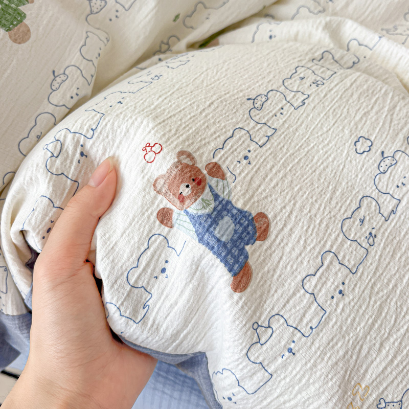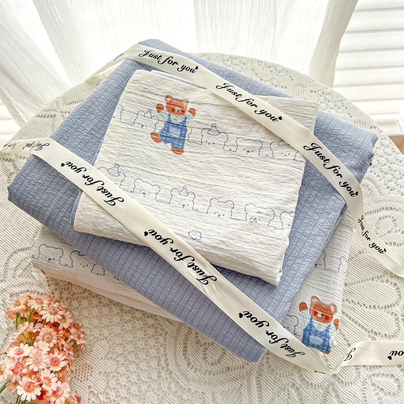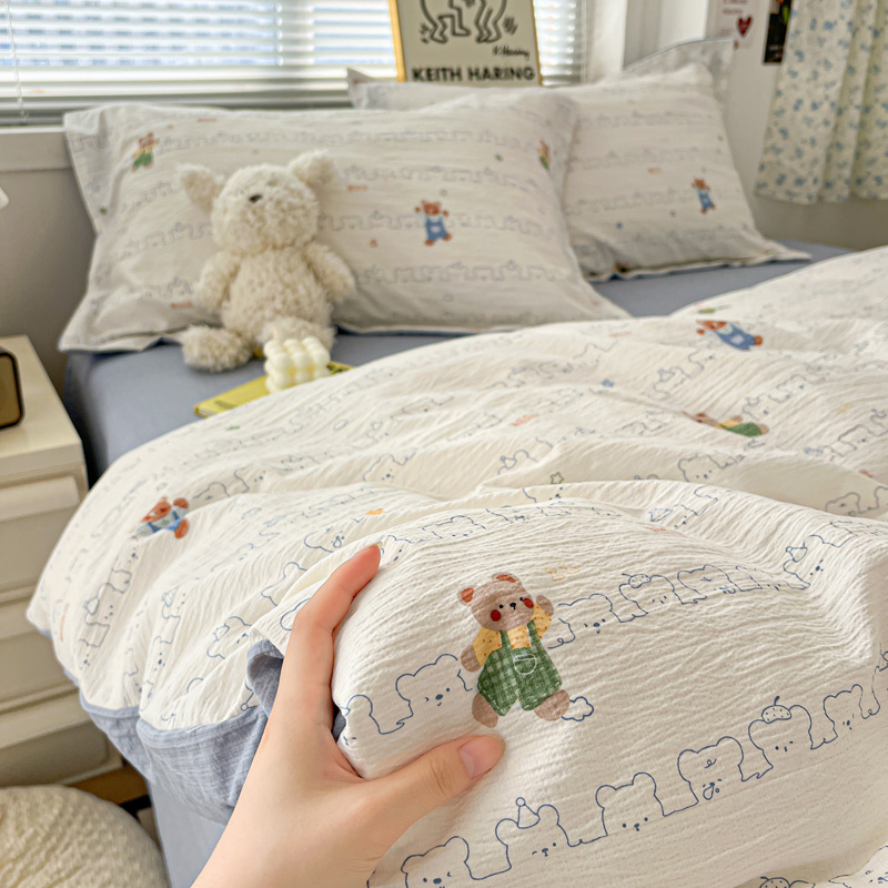 一比一 2025新款古法水洗棉小布袋高克重云柔棉四件套 假日小熊