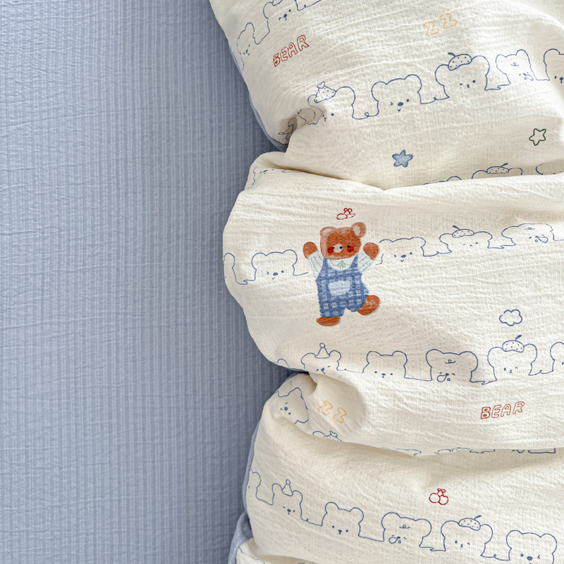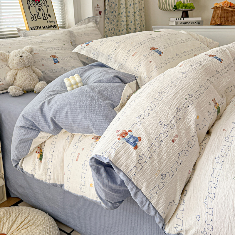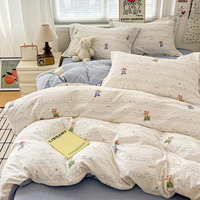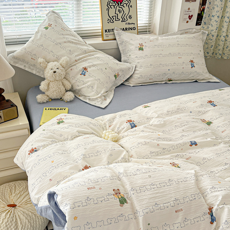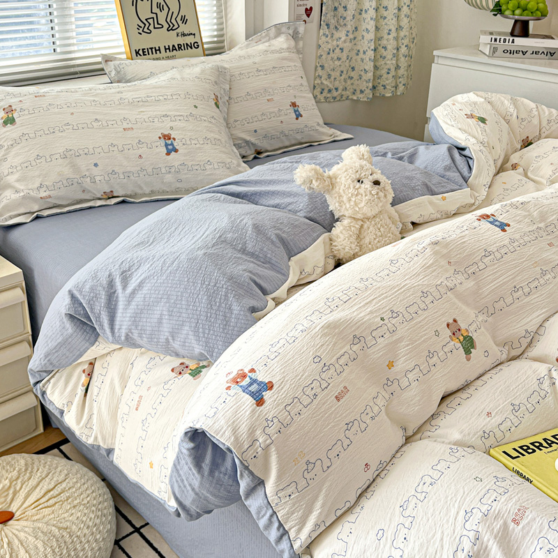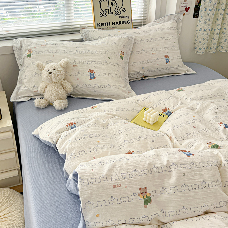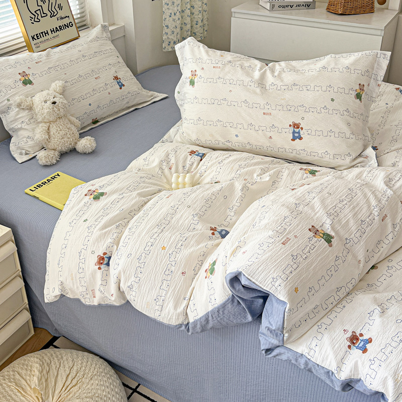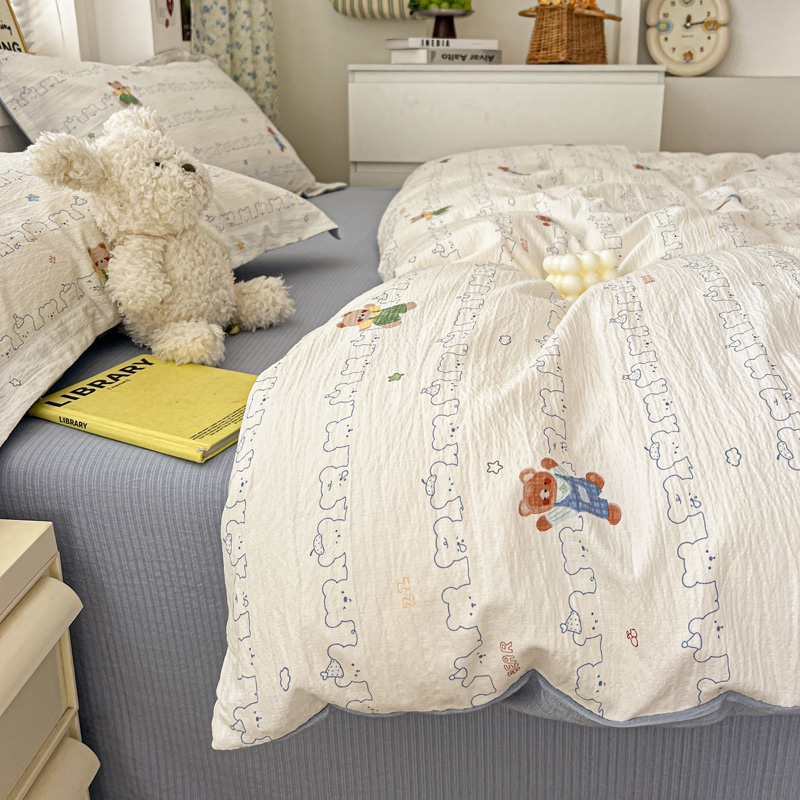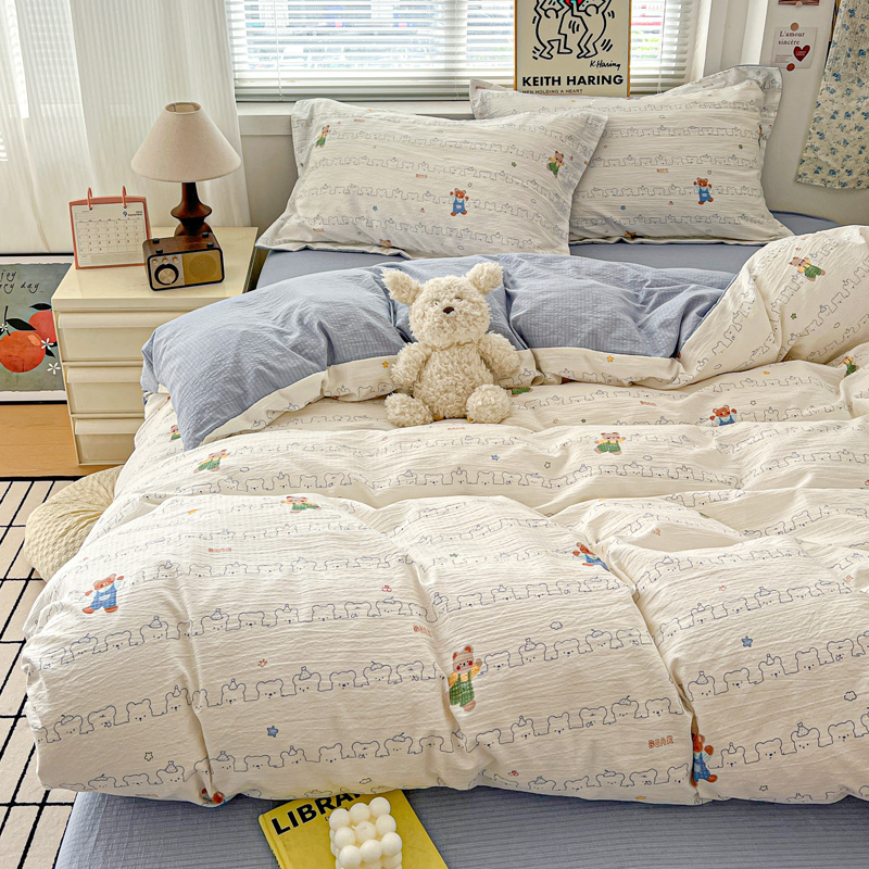 商品名称:一比一 2025新款古法水洗棉小布袋高克重云柔棉四件套 假日小熊