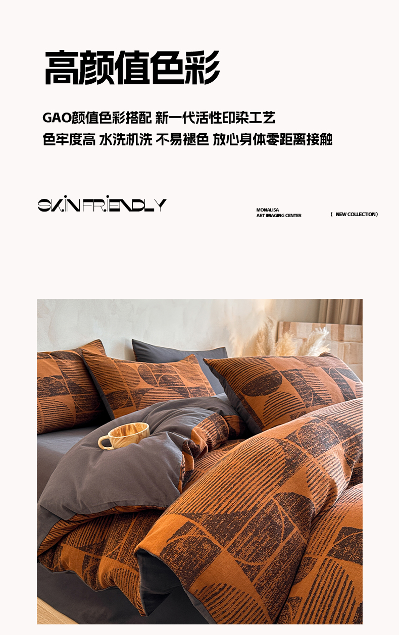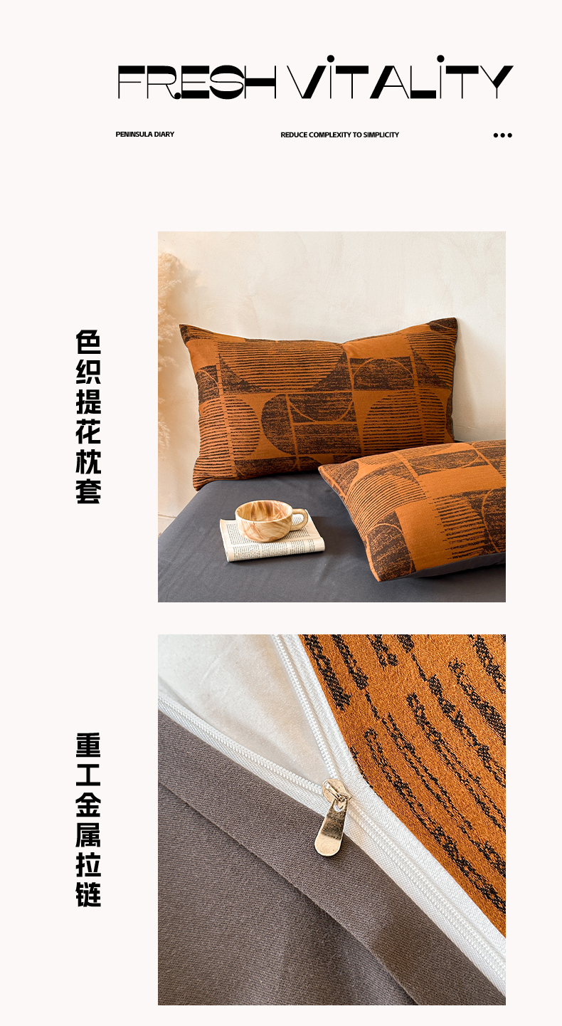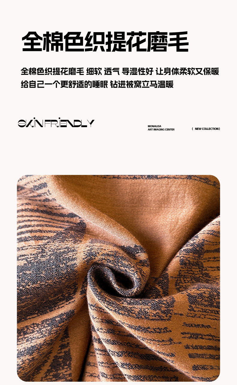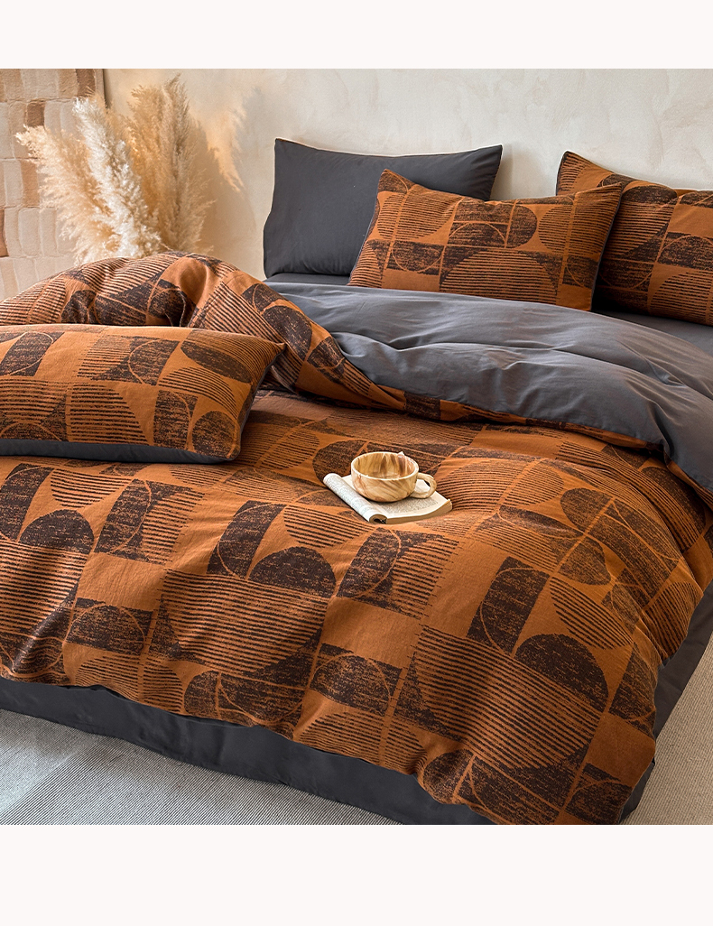 当前位置: 91家纺网 > 商品网购 > 床品套件 > 四件套 > 磨毛活性四件套 > 蓝邻家纺 2025年新款全棉色织提花磨毛四件套 梵沐-焦糖黑