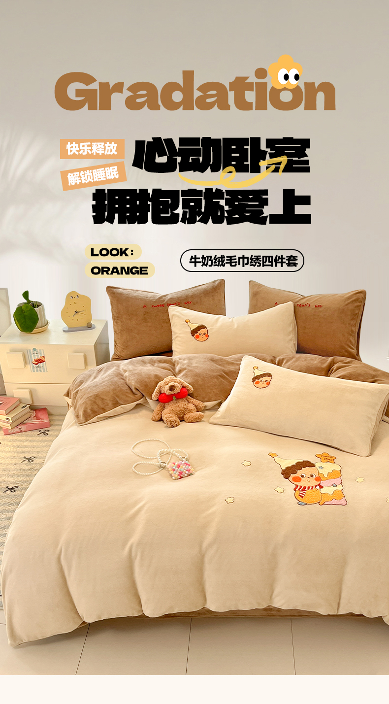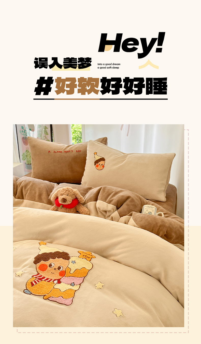 (总)如一 2025新款卡通毛巾绣系列牛奶绒四件套,卡皮柿子,爱心天使,豹纹黑皮,草莓灰猫,蛋糕小狗,粉格小猫,海绵宝宝,快乐企鹅,拉布饼干,蓝格黑猫,领结粉兔,苹果拉布,竖条西高,晚安小象,星星宝贝,星星木马,星星派对,星星苹果,星月猫咪,樱桃黑猫